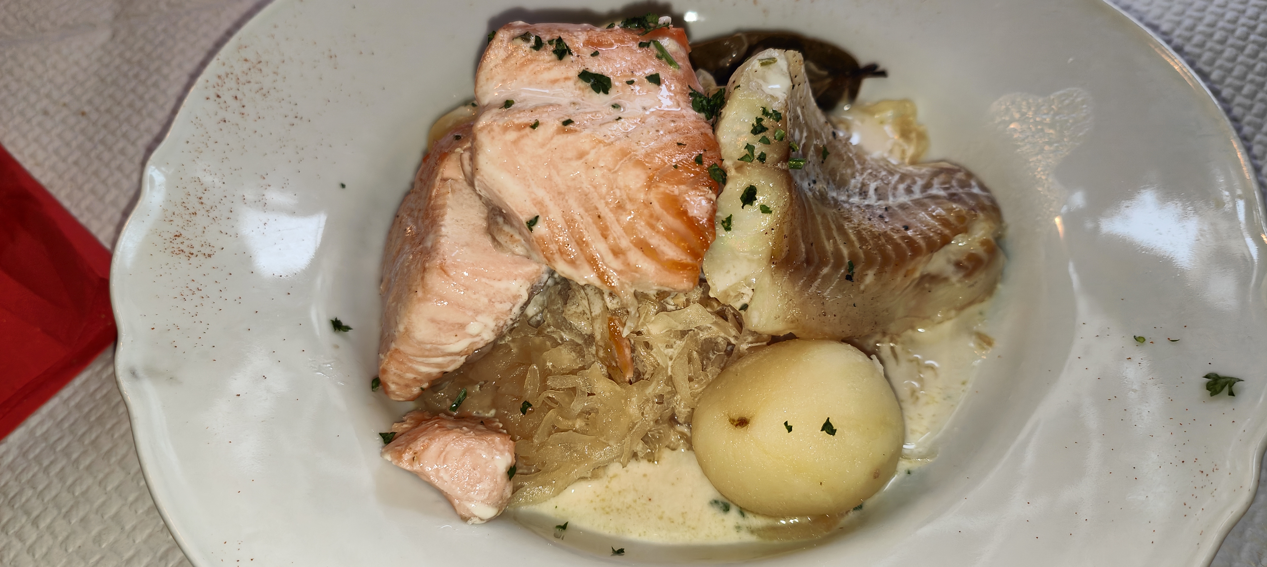 Ce restaurant est sous côté. Quand je vois 3,9 je ne parviens pas à comprendre. Le service est très agréable, accueil chaleureux : nous sommes venus à 5 sans réserver et ils nous ont trouvé une place avec le sourire. Table très qualitative : nous sommes revenus après 1 an et c’est toujours aussi bon. La choucroute aux 2 poissons étant mon plat favoris, si vous êtes un amateur comme moi vous devriez la trouver très bonne. Portions généreuses… Juste top. Les plats sont très bien réalisés, cuisine de goût et les prix sont très corrects pour la prestation proposée. Les toilettes sont également très propres, l’intérieur du restaurant était bien décoré. Ambiance chaleureuse. Franchement très bien. N’hésitez pas à vous y rendre. Vous ne serez pas déçus. Je recommande vivement.
