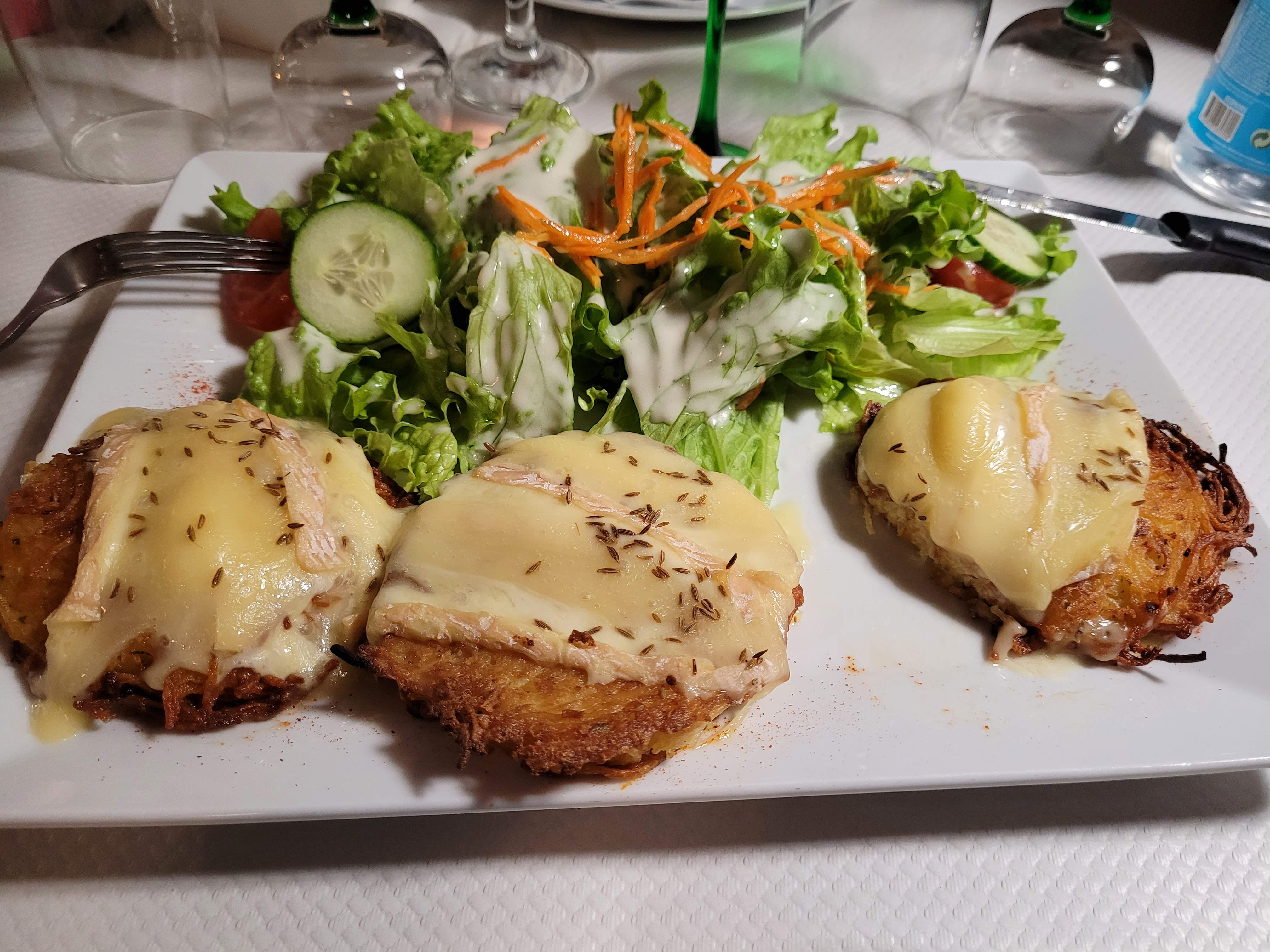 Restaurant sympathique avec un personnel souriant... Cuisine local....bonne et bien servi. Bon les galettes de pommes de terre c etait plutot des beignets lol...et le fromage blanc avec beaucoup d ail mais sinon bonne cuisine la viande de mon conjoint etait excellente.. Endroit cosy...
