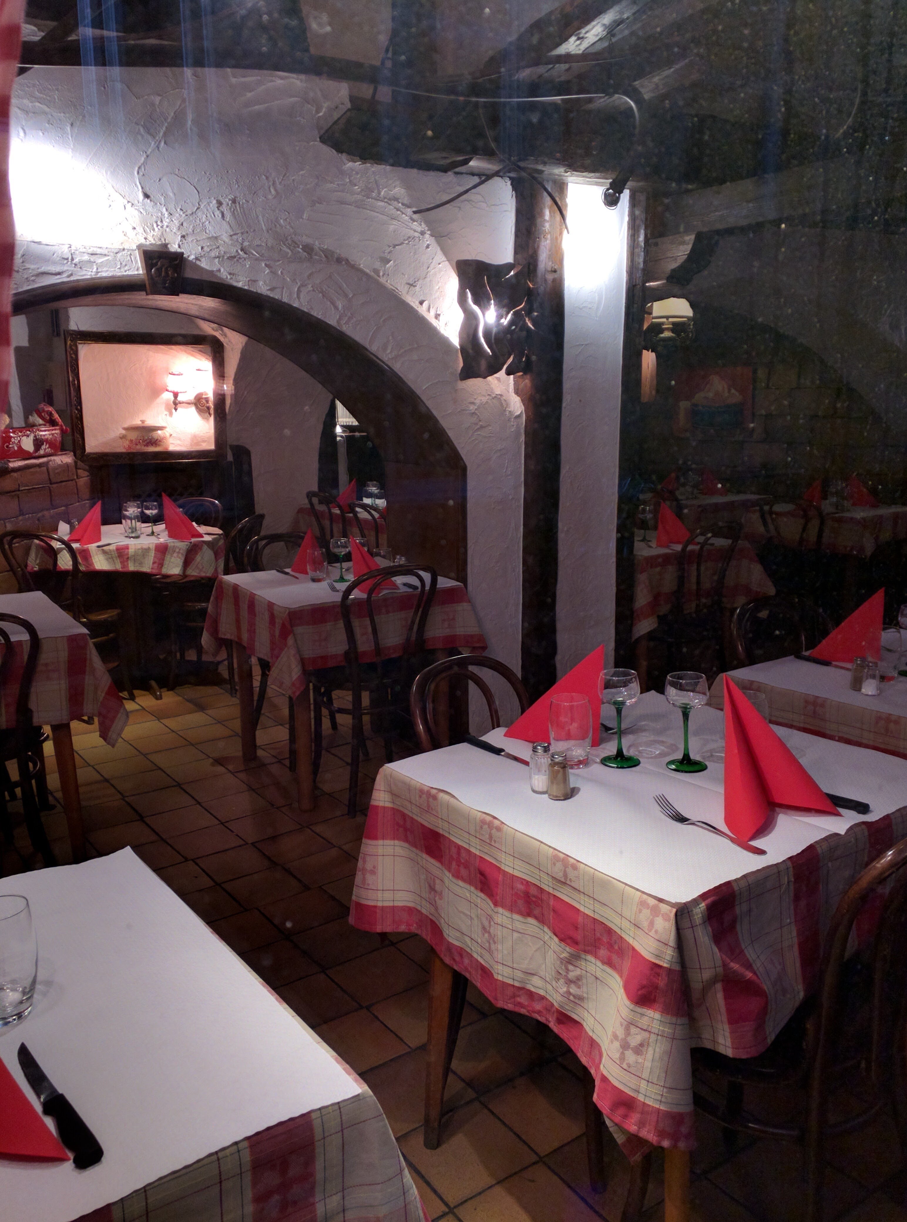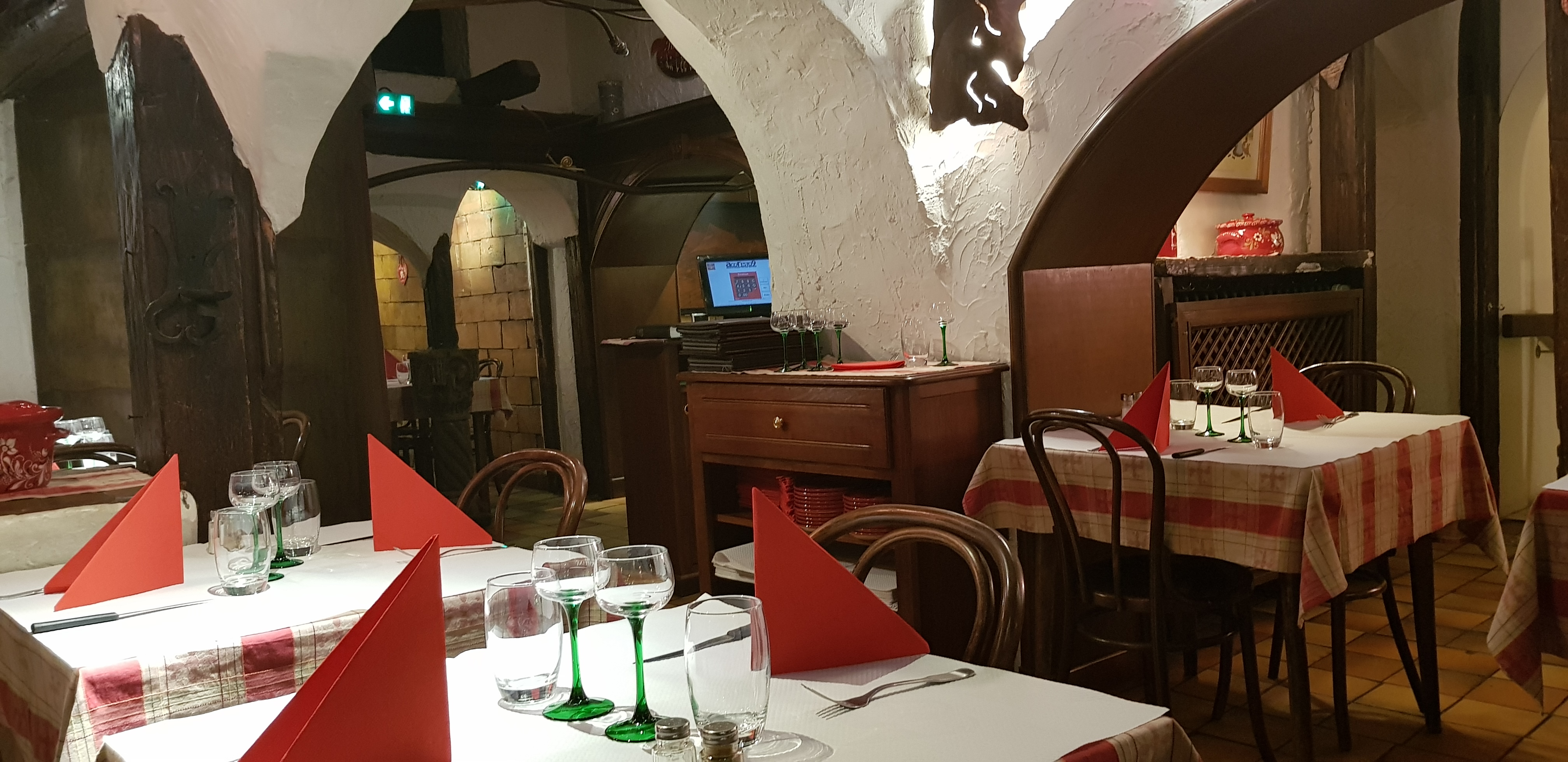 1 étoile, dommage qu’on ne puisse pas mettre moins. Accrochez-vous l’histoire est longue … Commençons par les plats : flambée correcte mais sans plus, quant au tartare de bœuf au couteau .. vous n’aurez jamais vu un tartare aussi vert ! De la viande mais couverte de câpres et de persil.. Café gourmand composé uniquement de produits peu goûteux (surgelés?) et même le café n’est pas bon. Le moelleux est cependant assez bon. Service absolument déplorable ! Serveuse peu aimable, qui nous installe et ne nous propose pas de boisson mais soit ça peut encore arriver ! Elle vient ensuite nous prendre la commande, nous lui posons alors une question, sans nous laisser finir de parler elle s’en va nous coupant net la parole et part servir d’autres tables et prendre d’autres commandes. Dix minutes plus tard nous sommes sur le point de changer de restaurant quand elle daigne à nouveau s’adresser à nous et prendre notre commande. Elle revient alors en nous posant le plateau sur la table pour nous servir les plats. Puis vient le dessert, que nous avons d’ailleurs mangé en compagnie de nos frites qui n’ont jamais été débarrassées. Et alors elle ne daigne même pas me poser l’assiette qu’elle me tend en me disant « Alors le café gourmand et le dessert machin »… Elle nous ignore alors que nous sommes debout devant le comptoir pour l’addition, sans un sourire ni un mot elle nous passe devant. Elle finit par débarrasser une autre table et par nous rejoindre en soufflant pour nous encaisser. Et nous lui gratifions d’un merci au revoir qu’elle ne nous rendra même pas. Vraiment dommage car le cadre est agréable et typique. Je crois que tout est dit …