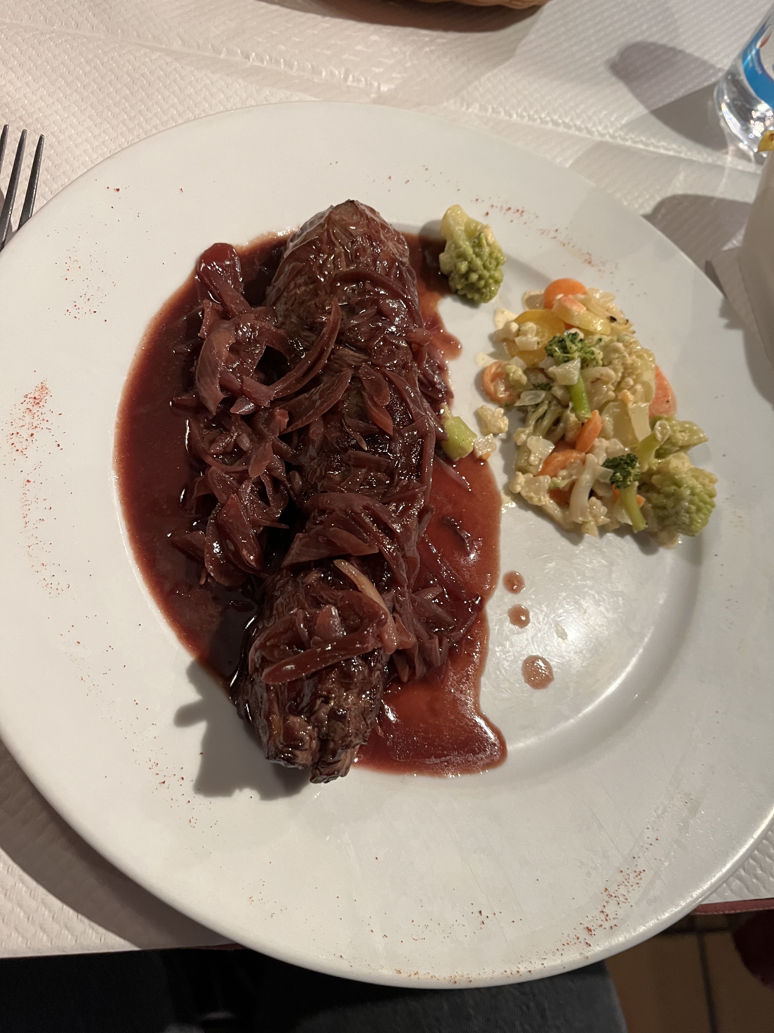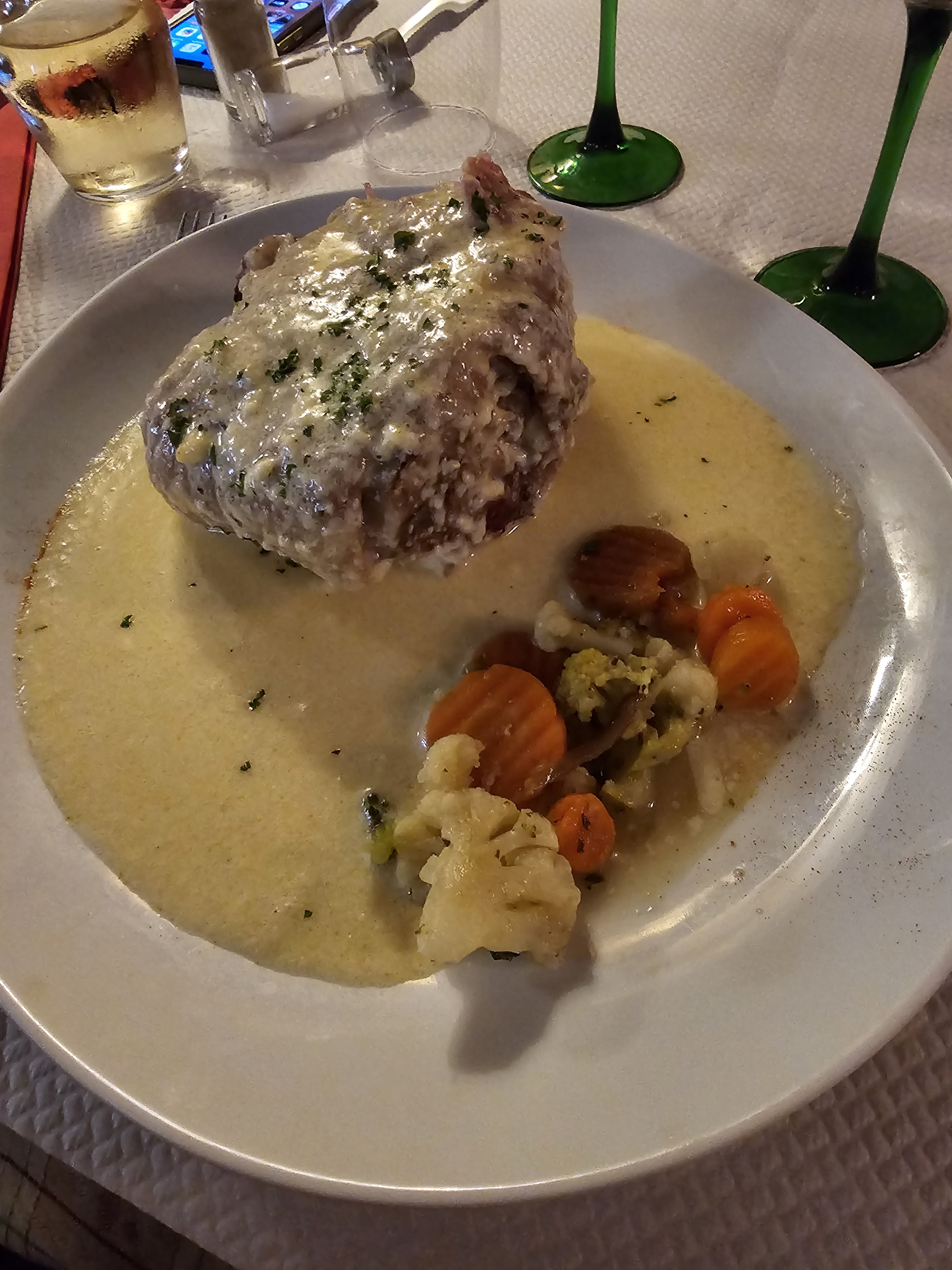 Les plats sympa.... Mais grande salle typique mais seulement 8 tables en service mais les uns sur les autres... Les serveuses font la deco se la St Valentin pendant le service... Une aurait du se mettre en arrêt au lieu de cracher ses poumons... pendant le service 🤔 C'est pas une étape obligatoire... Y a mieux...