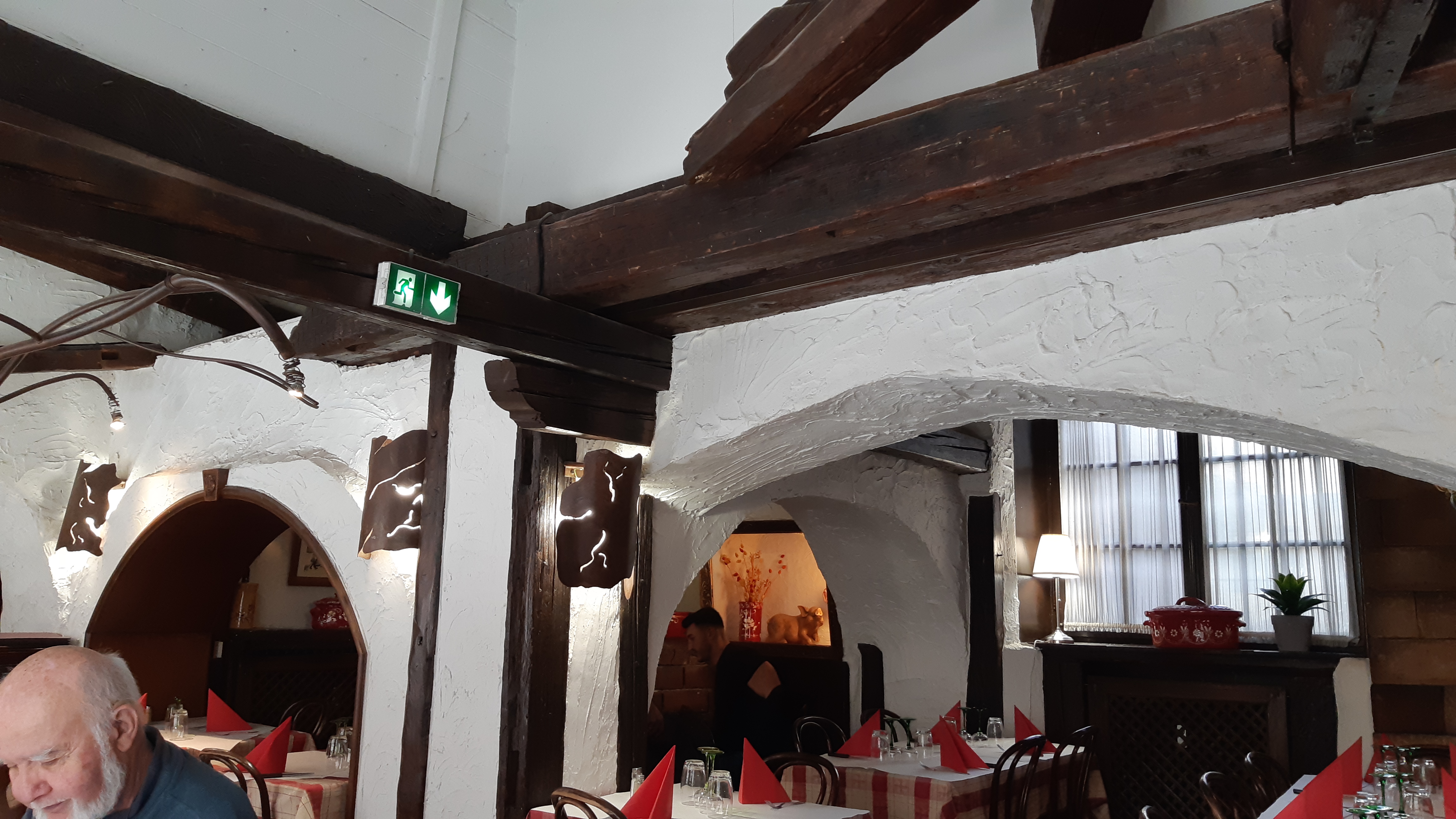 On arrive, on lui dit bonjour et tout, et elle se casse sans rien dire.. Elle nous met ensuite a une table pour 4 alors qu'il y avait de place ailleurs, après ça aurait pu être réservé mais j'ai jamais vu d'autre client aller sur certaines tables.. Le service était horrible, la serveuse est gênante, elle ne sourit jamais, elle jette les couverts et j'en passe.. Niveau nourriture, j'ai été très déçu, c'était immangeable, viande trop cuite et beaucoup trop de légumes alors que le plat c'est baeckhoeffe aux 4 VIANDES.. Après la déco est très sympa (d'ou le 1 étoile) par contre il y a des toiles d'araignée et des tapettes a souris et les toilettes sont propre. Bref n'y allez pas !