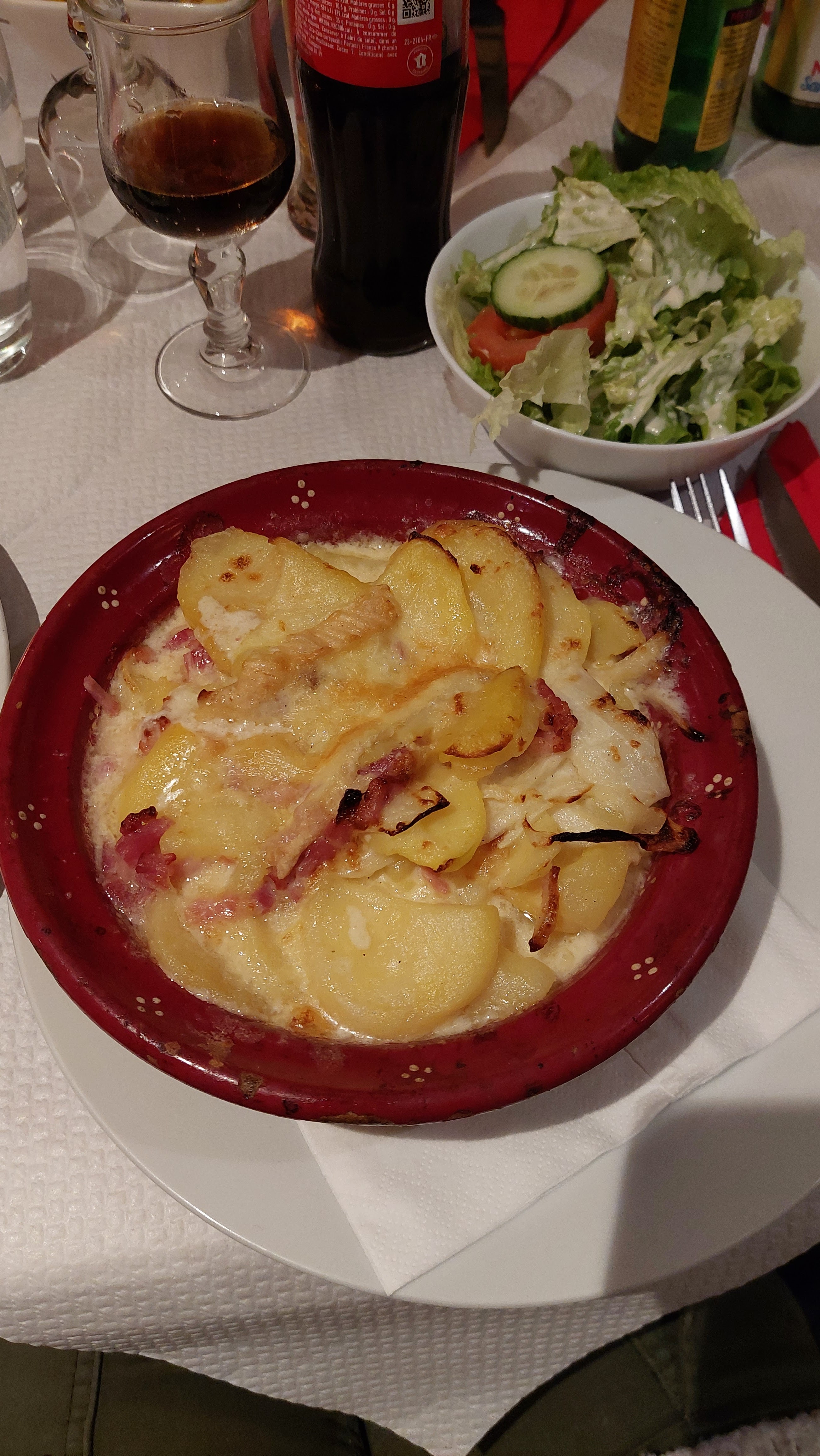 C'était très bon. Je ne comprends pas les mauvais avis. Nous avions pris une tarte flambée au munster et une tartiflette au munster. Les parts sont très copieuses, les prix sont raisonnable et le personnel serviable. Il est vrai que la serveuse n'était pas très chaleureuse, mais cela semblait plus être son caractère, une personne qui va droit au but. Elle a été tout à fait polie, cordiale et douée dans son travail. Je recommande chaleureusement ce restaurant typique.