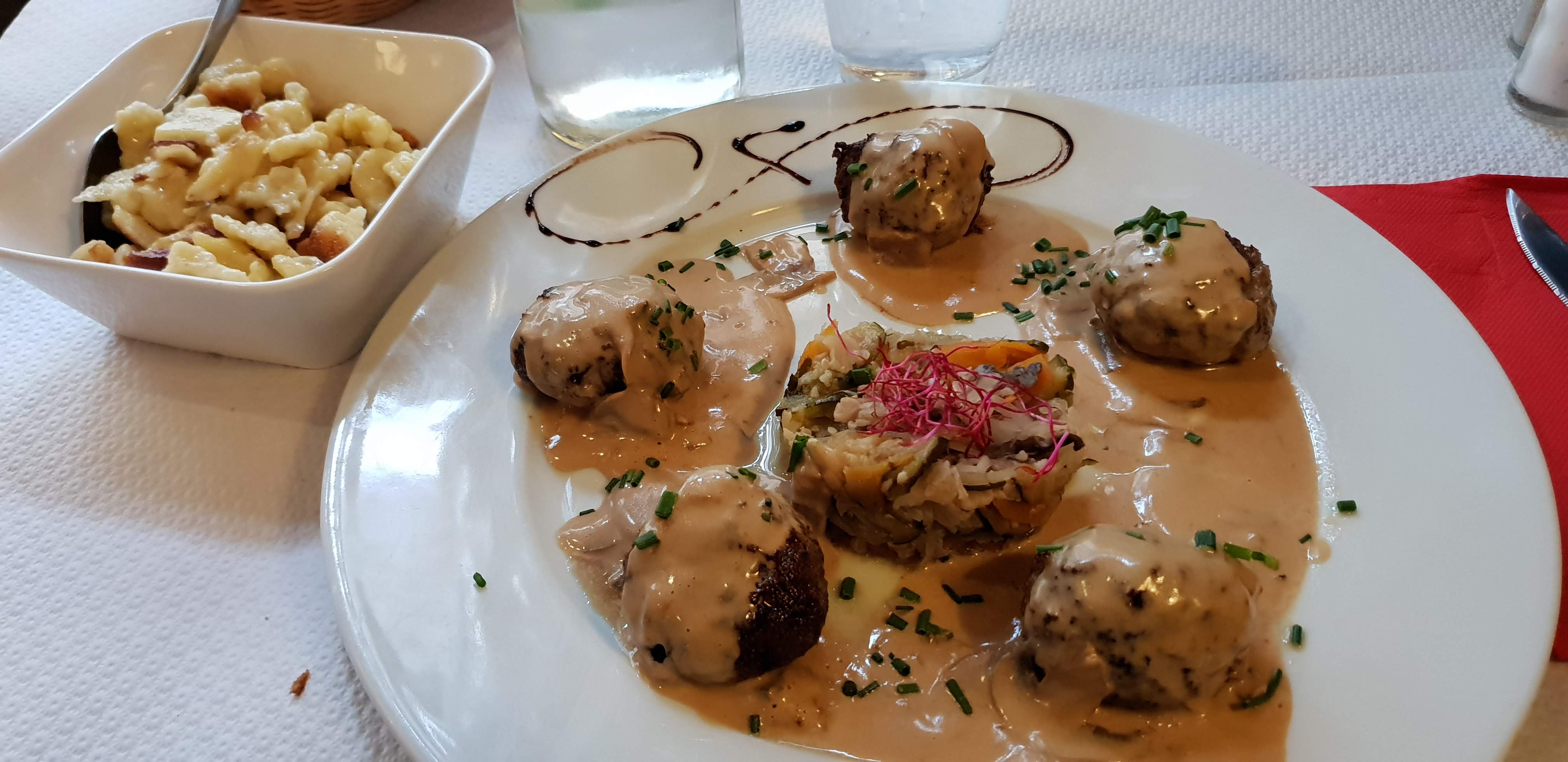 Gratin de Spaetzel excellent, grosse portion bien crémeuse Le Strudel aux pommes était légèrement trop cuit mais la glace qui l'accompagne est succulente! Restaurant dit accessible PMR mais compliqué malgré tout : grosse marche dû au trottoir devant le restaurant, porte d'entrée assez fine et pas vraiment de place pour circuler en fauteuil (le restaurant à malgré tout fait son possible pour qu'on soit bien installé, ce qui est une bonne chose)