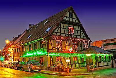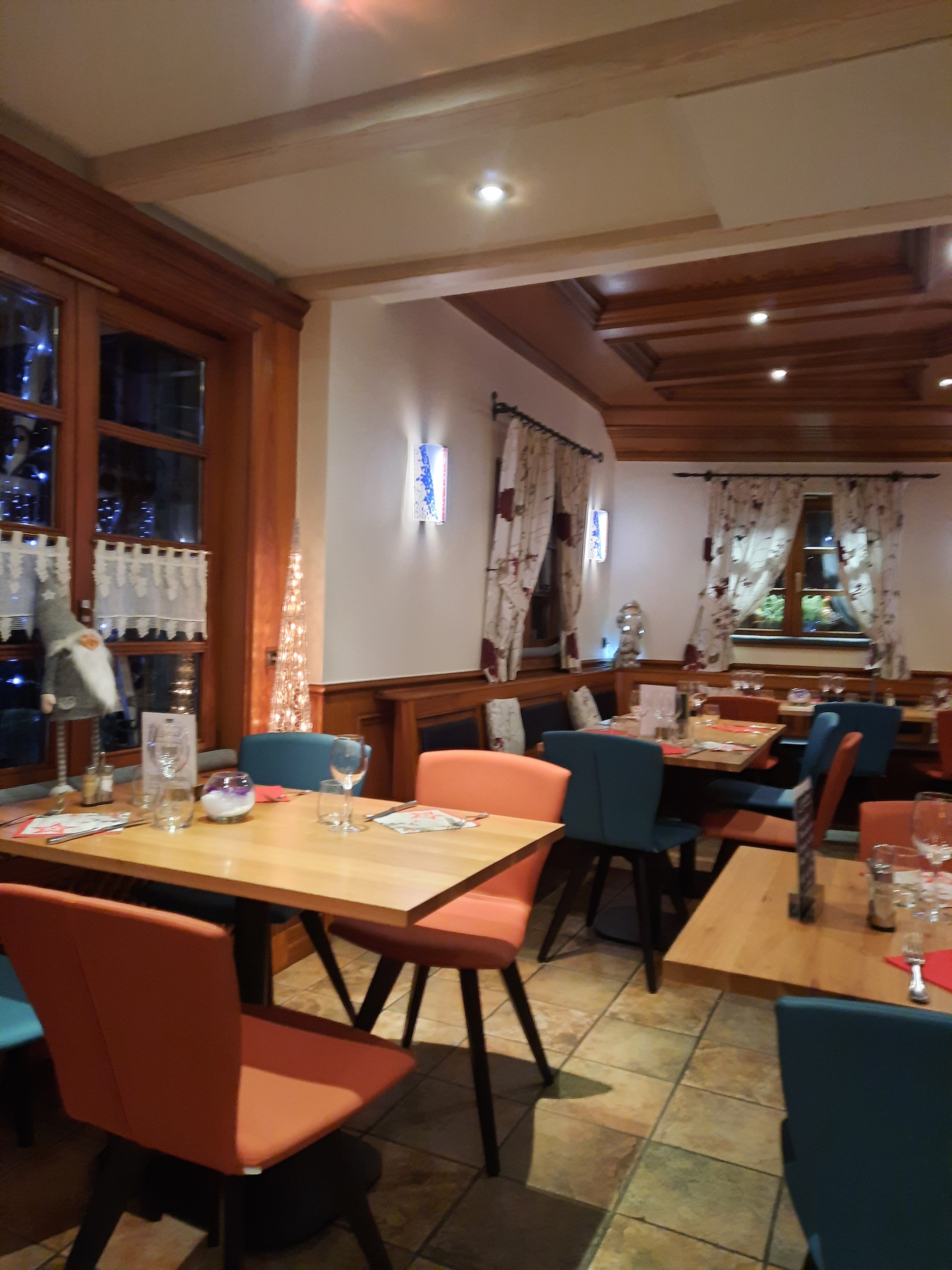 Restaurant alsacien avec de bons plats et une magnifique décoration de Noël
