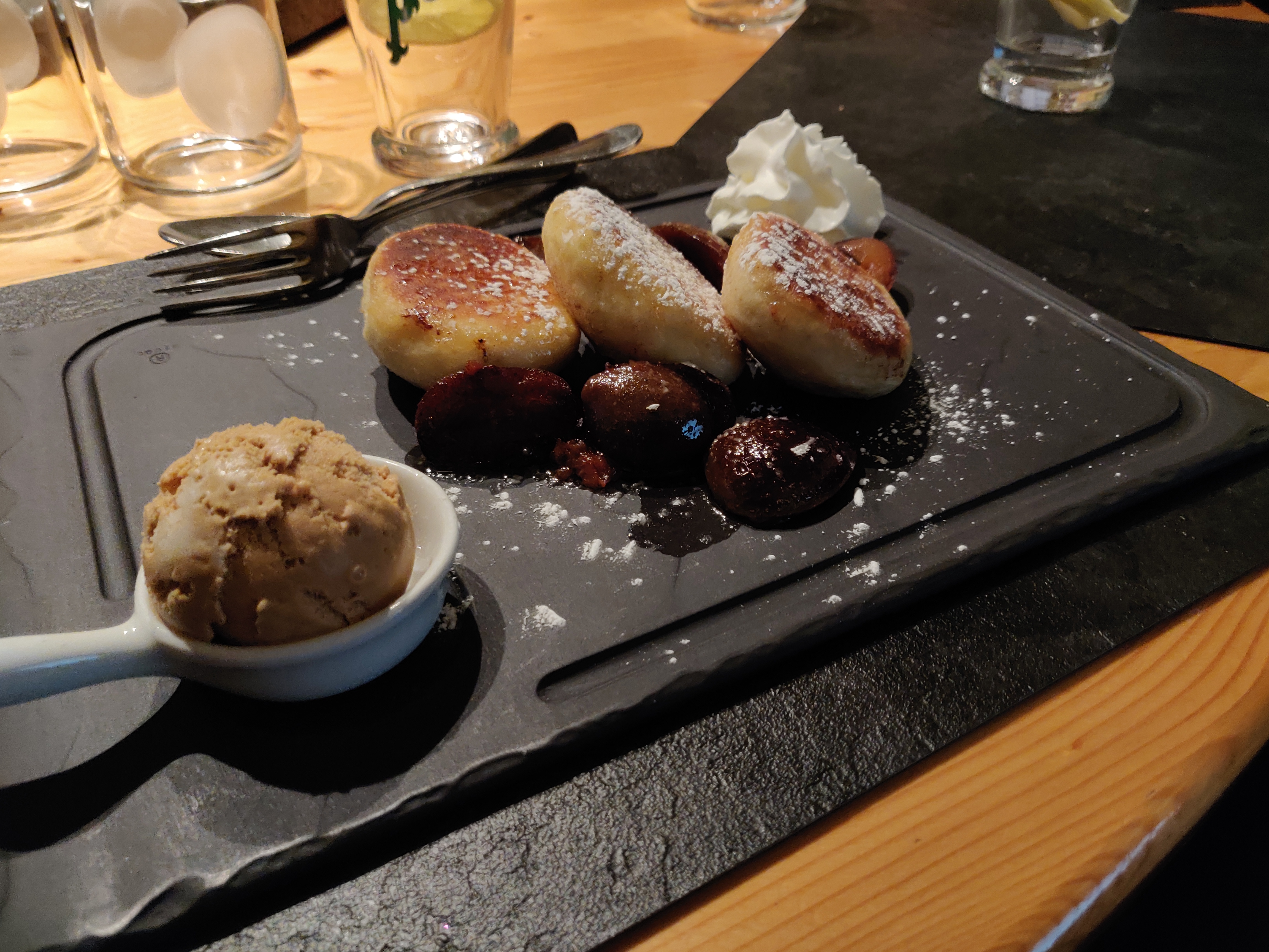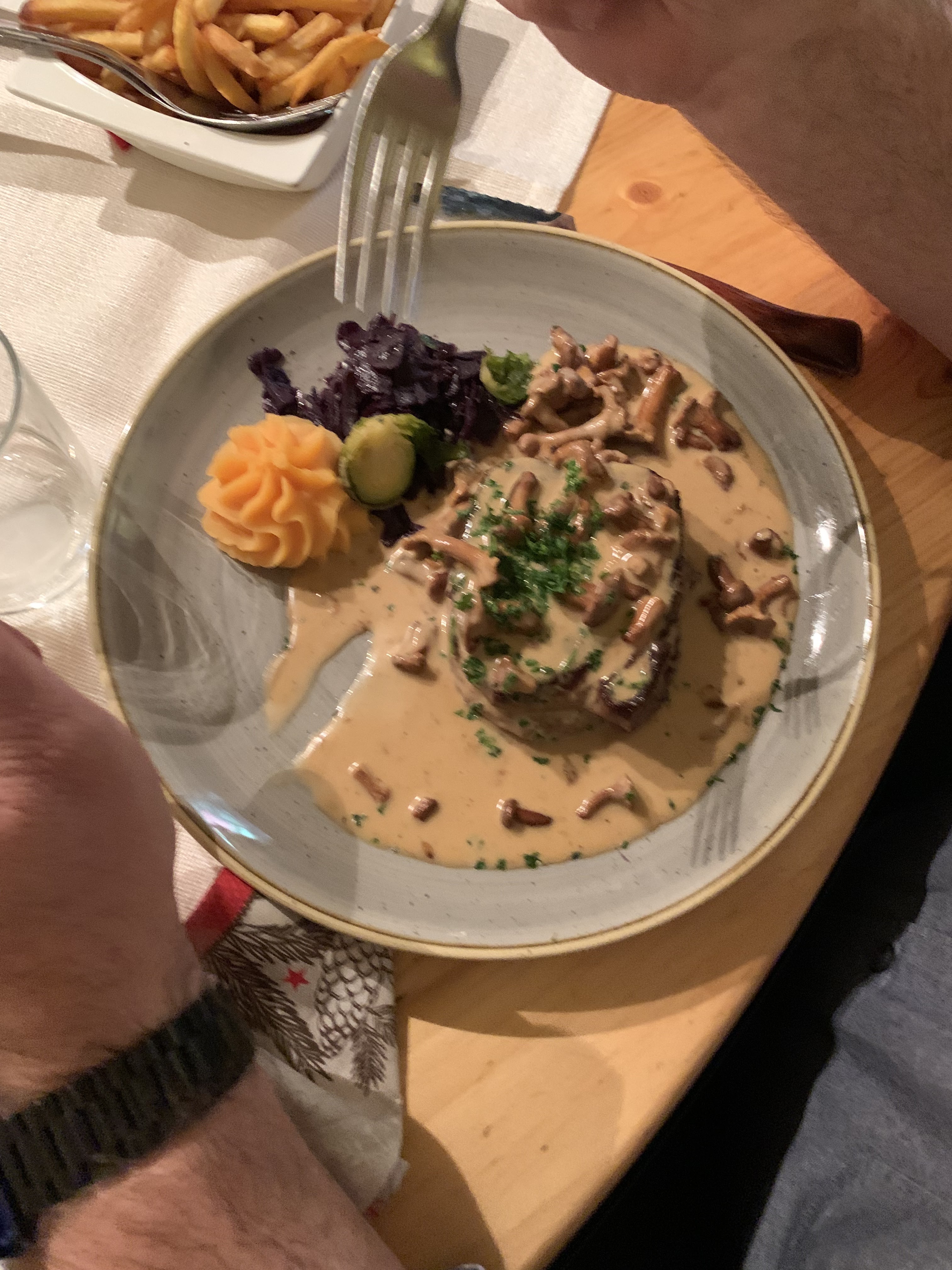 Très belle expérience dans la cabane en bois ! Service tout à fait correct. La fondue bourguignonne était un régal !