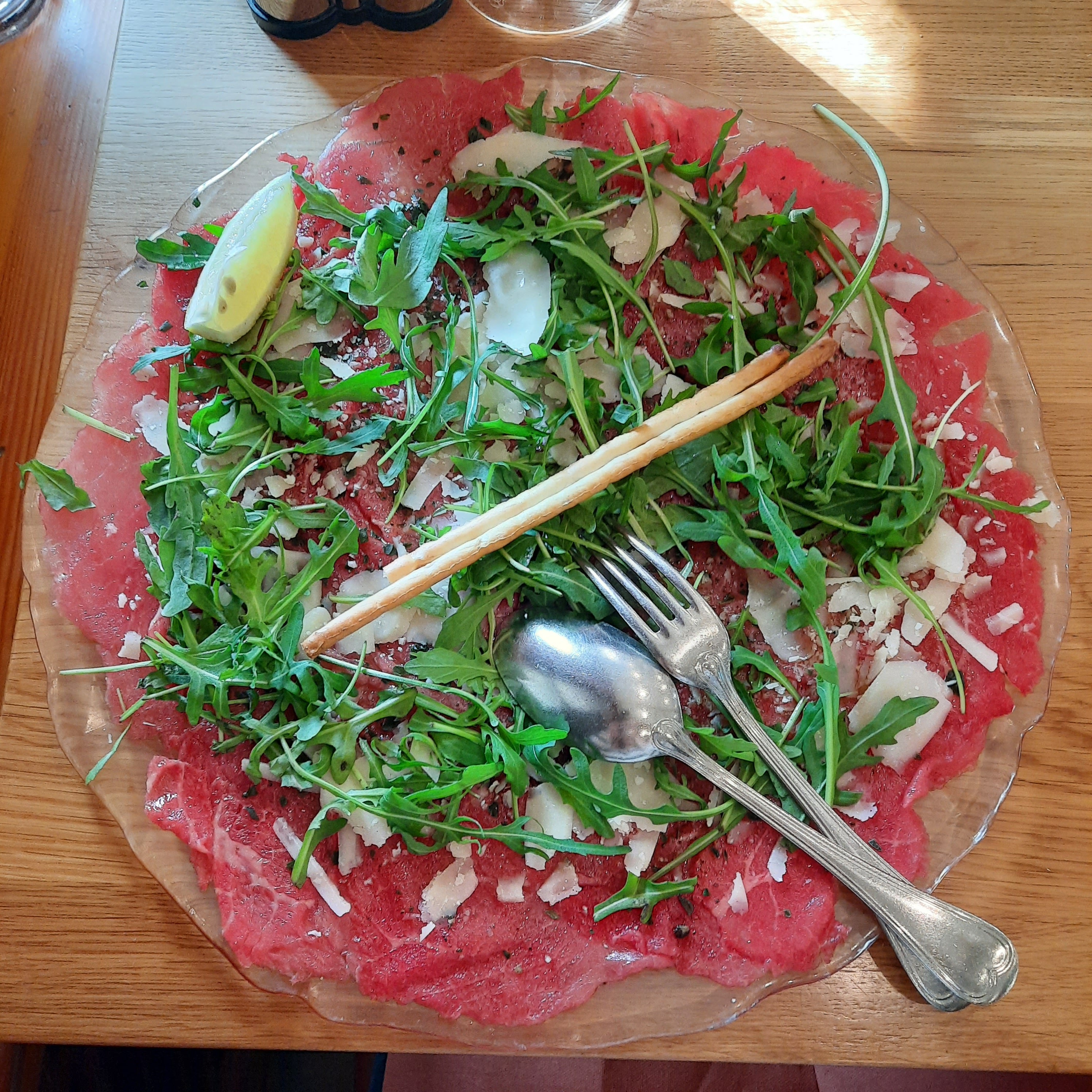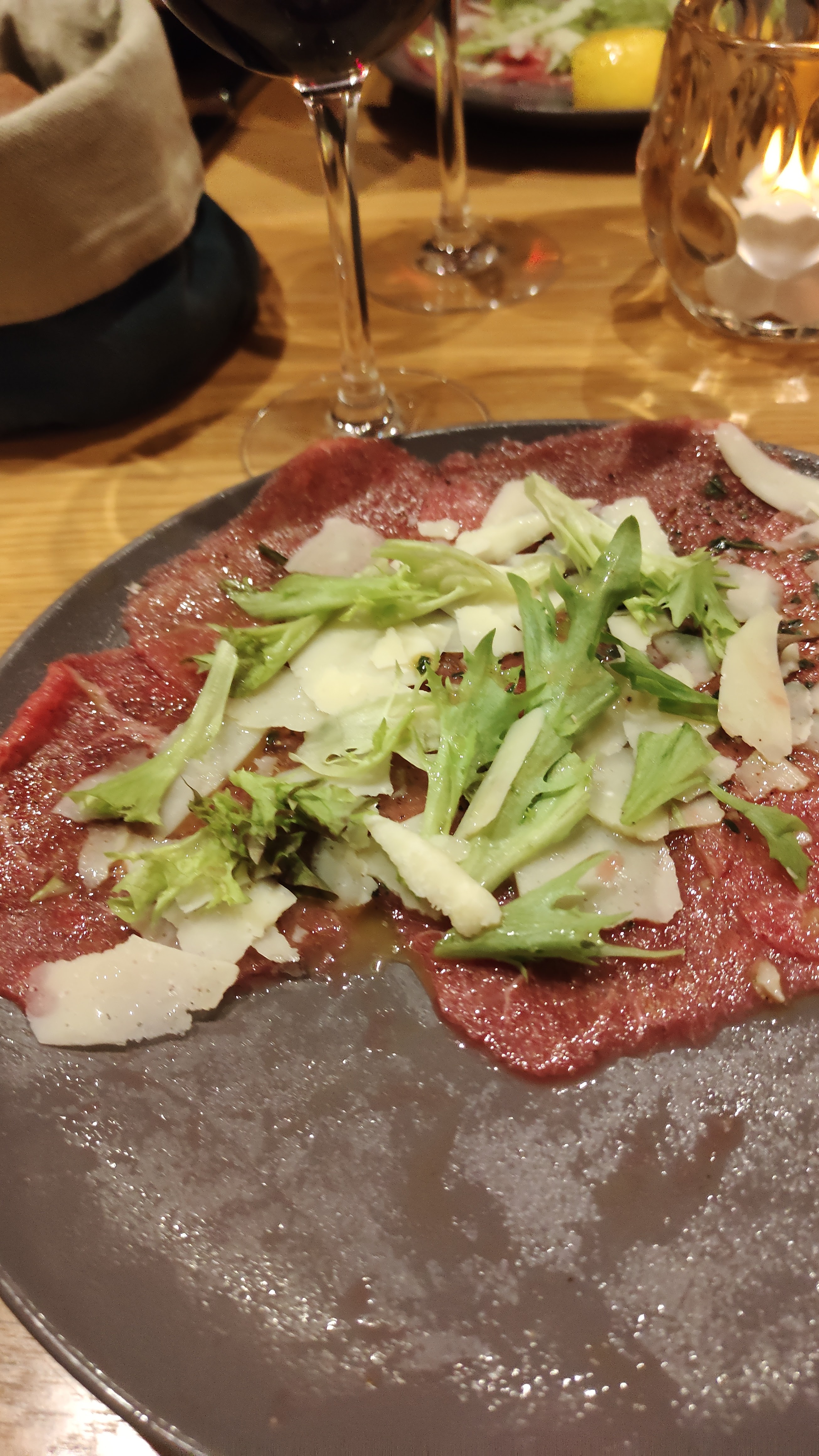 Restaurant chic avec une atmosphère agréable. J'ai pris en entrée du saumon bien assaisonné et ma compagne un plateau de carpaccio. C'était un régal. Ensuite, j'ai commandé une escalope de veau accompagnée de spaghettis à la bolognaise, et madame, du faux filet. Nous n'avions pu prendre de dessert tellement nous avions bien mangé. Le personnel était efficace. C'était excellent ! Je recommande