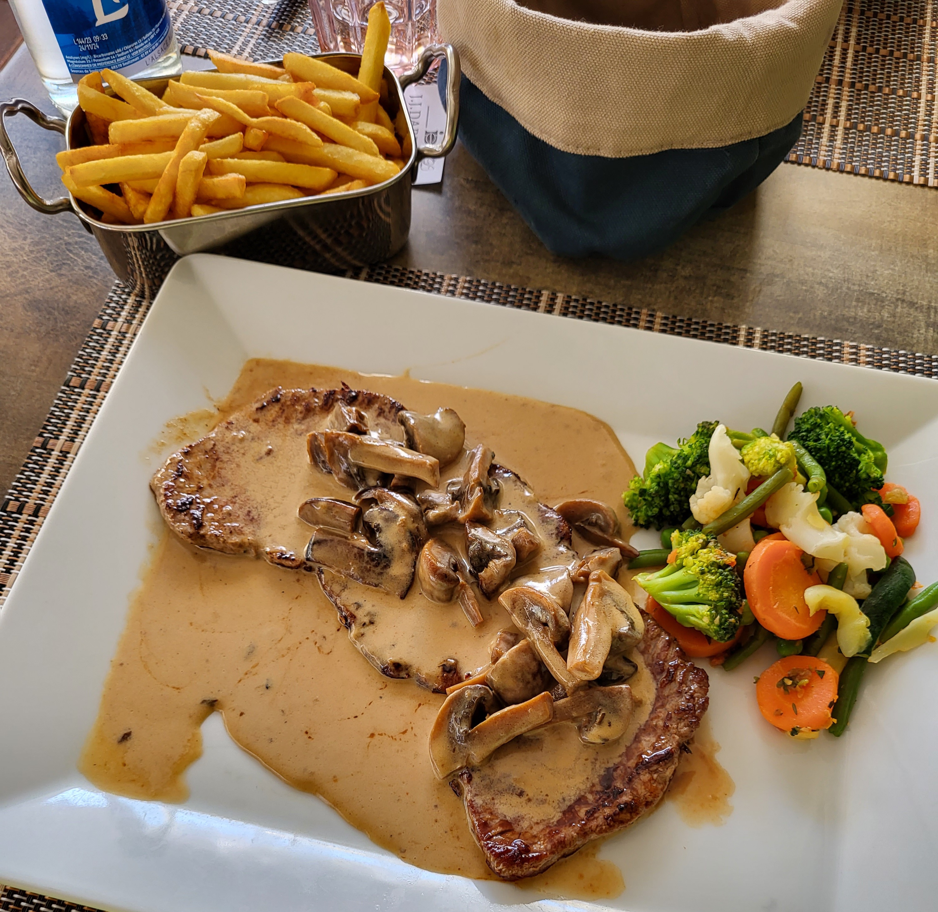 Ca ne vaut pas le prix. Malgré un service rapide et sympa et une belle salle, dans l'assiette ce n'était pas ça. La viande (mignon de veau) était tendre mais le plat sans saveur, servi avec des frites décongelés et des morilles peut-être décongelés aussi. Le tout était fade. Mais dessert très bon.