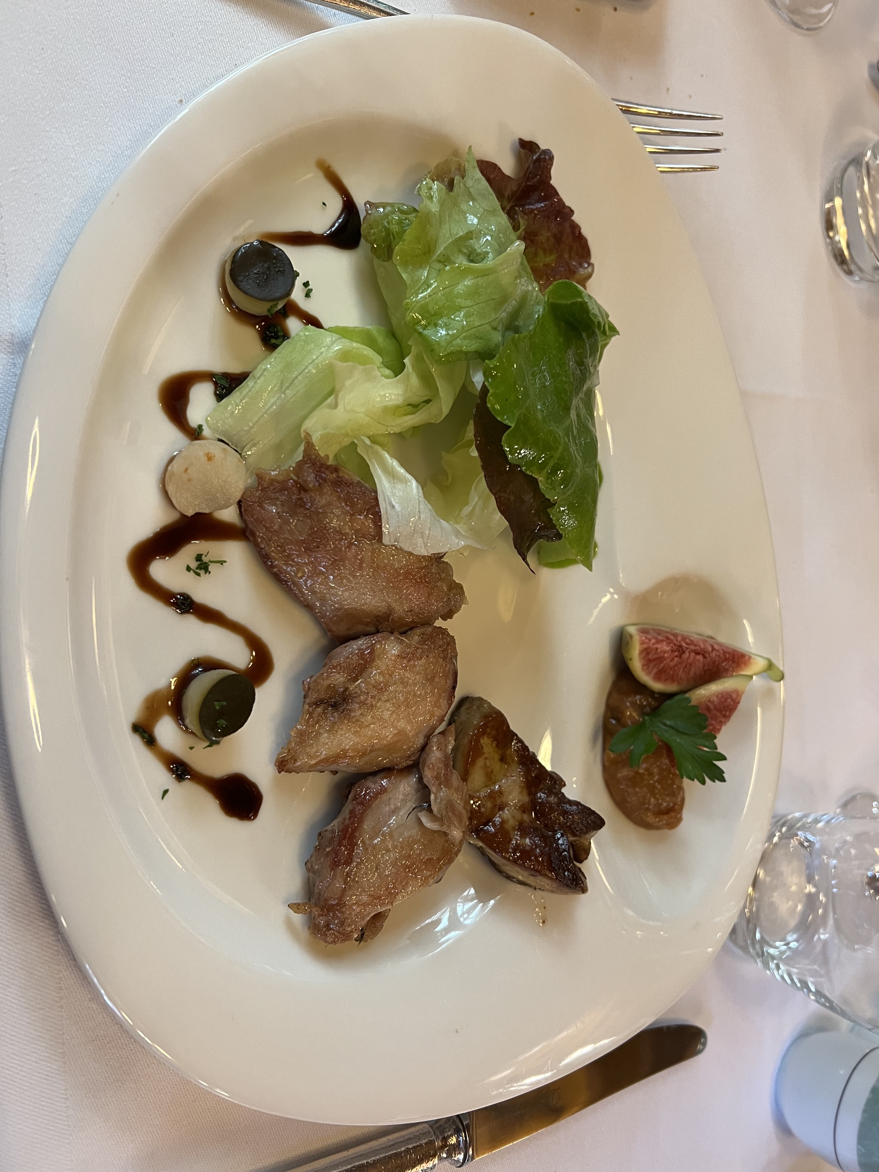Une excellente soupe de poisson et une escalope de foie de canard accompagnée de tranches de pomme. Tellement délicieux! ainsi que les très bons conseils en matière de vin et le service après-vente compétent. Nous nous sentions bien.