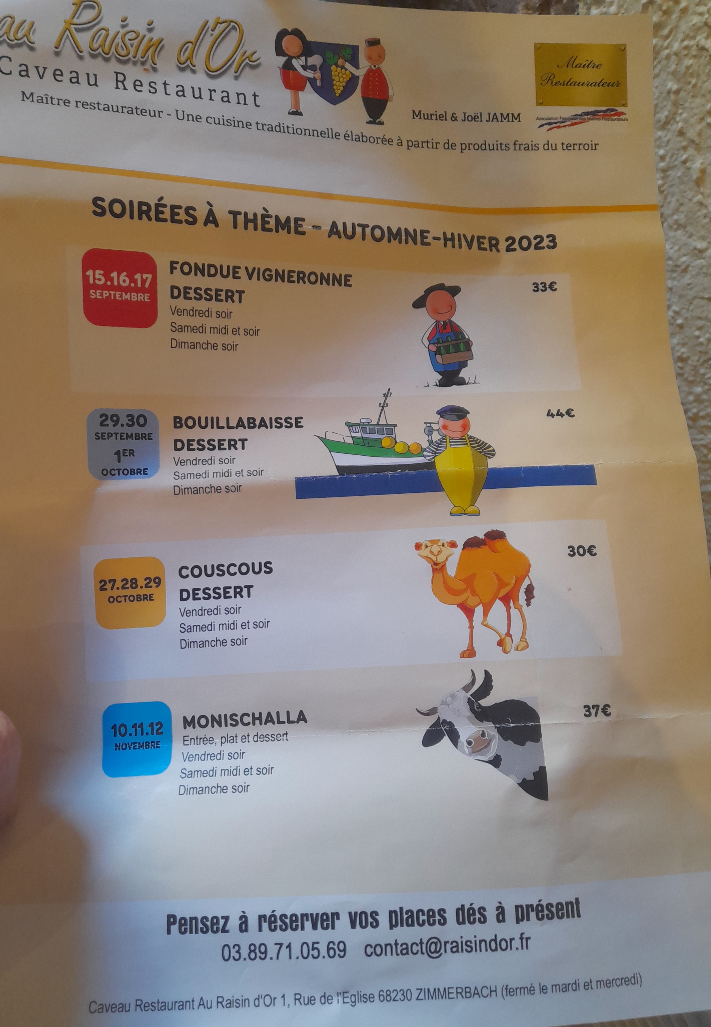 Délicieux, ce raisin made in famille Jamm. Au fil des années, le restaurant villageois évolue vers la perfection. Il élargit sa clientèle, mais reste fidèle à ses racines, sa vocation. Plats du jour, menus à thème, qualité et quantité, souci de l'accueil, du service. Bravo et merci. La juste récompense? Le client a envie de revenr.i