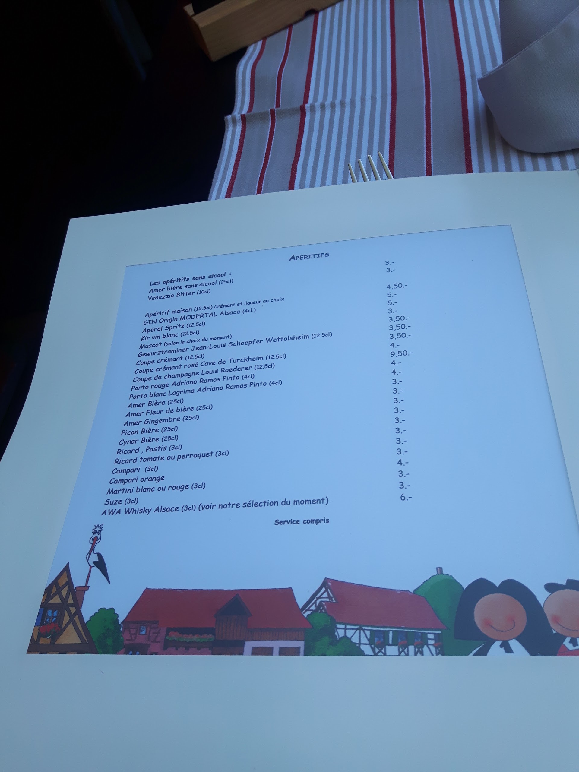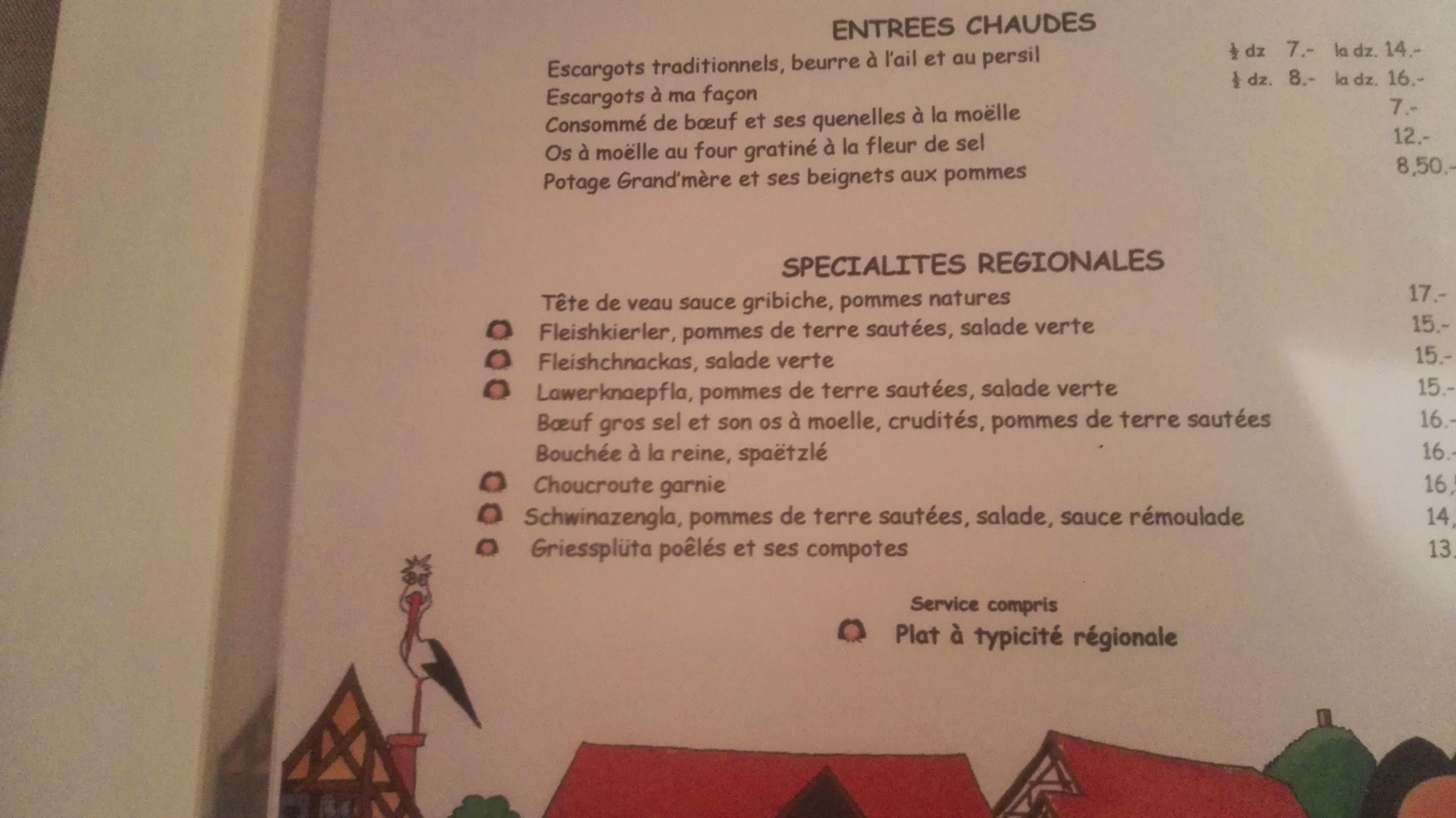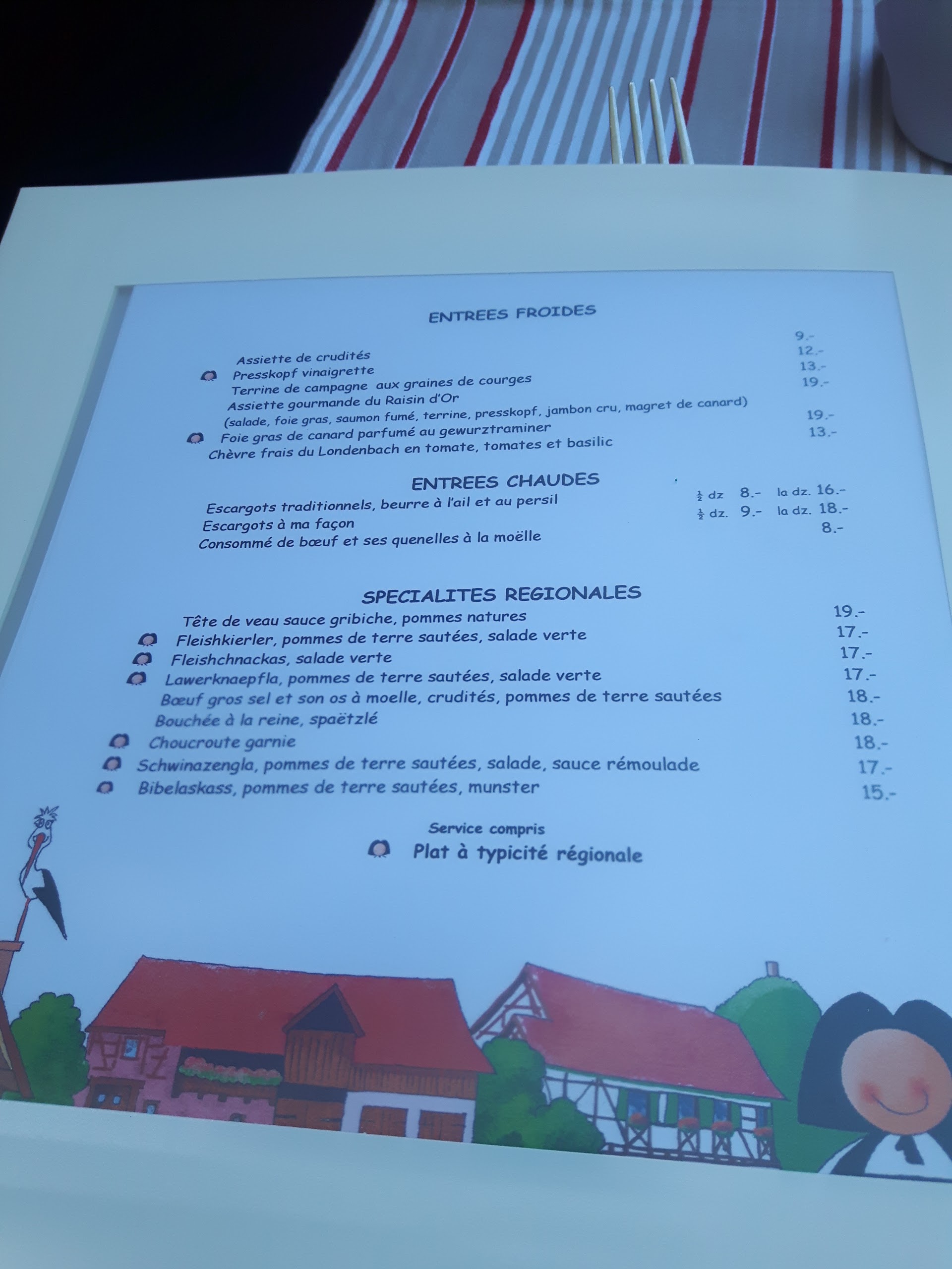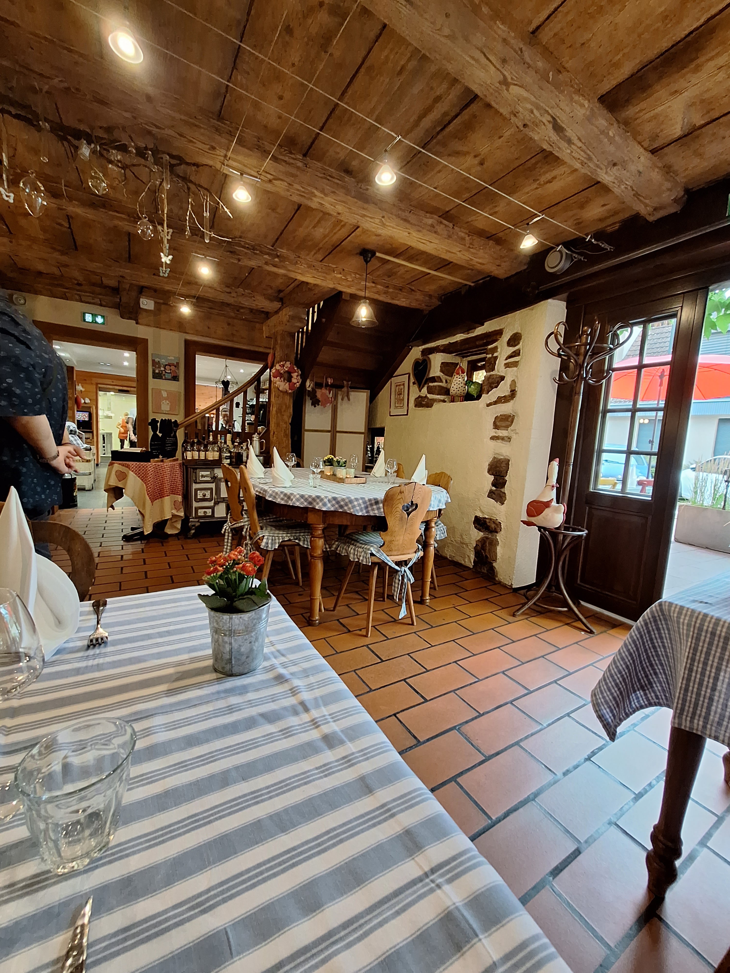 Restaurant typiquement alsacien, la deco, les nappes. La cuisine est delicieuse, les serveurs très sympas. Rien à redire. A decouvrir