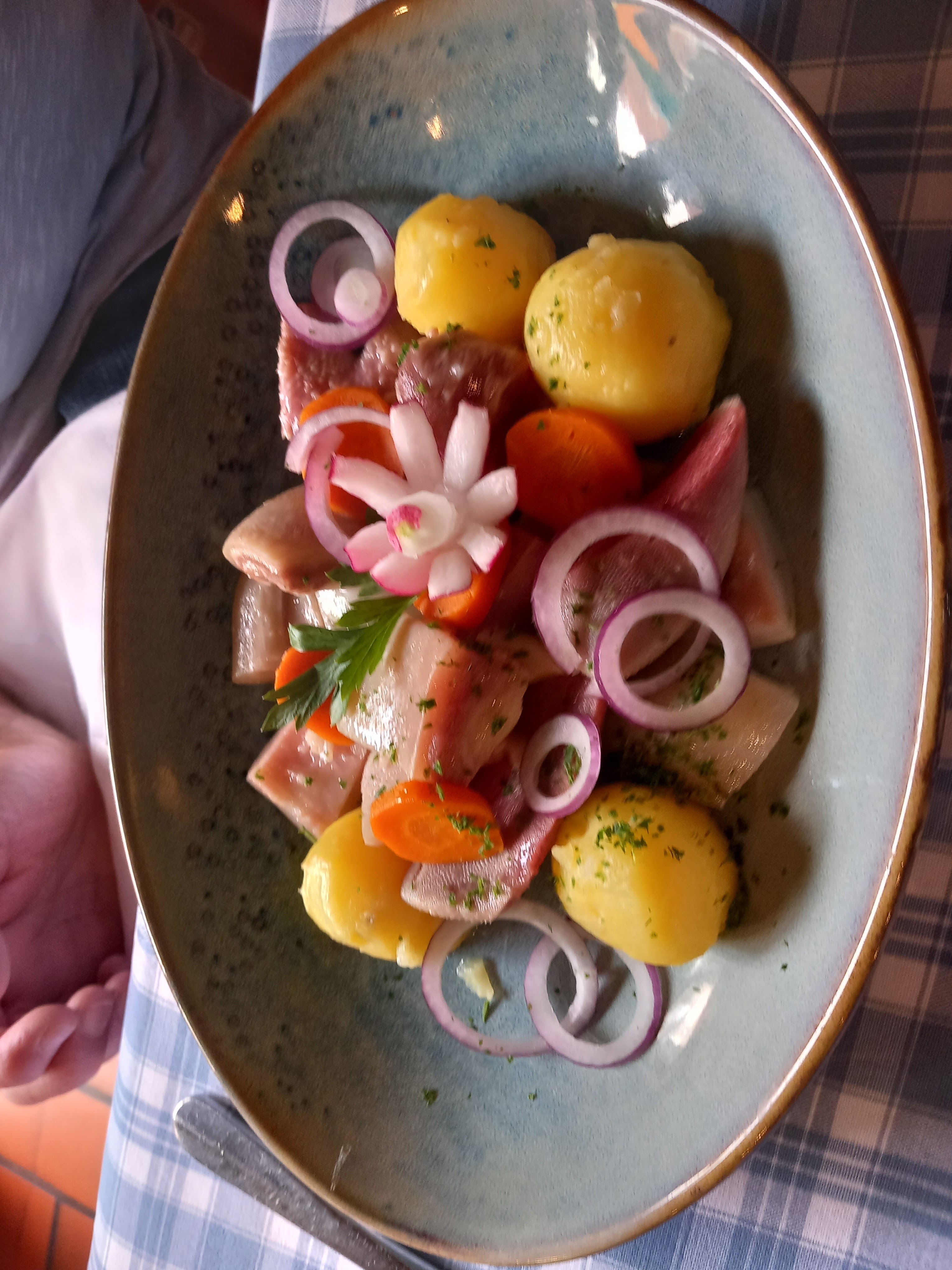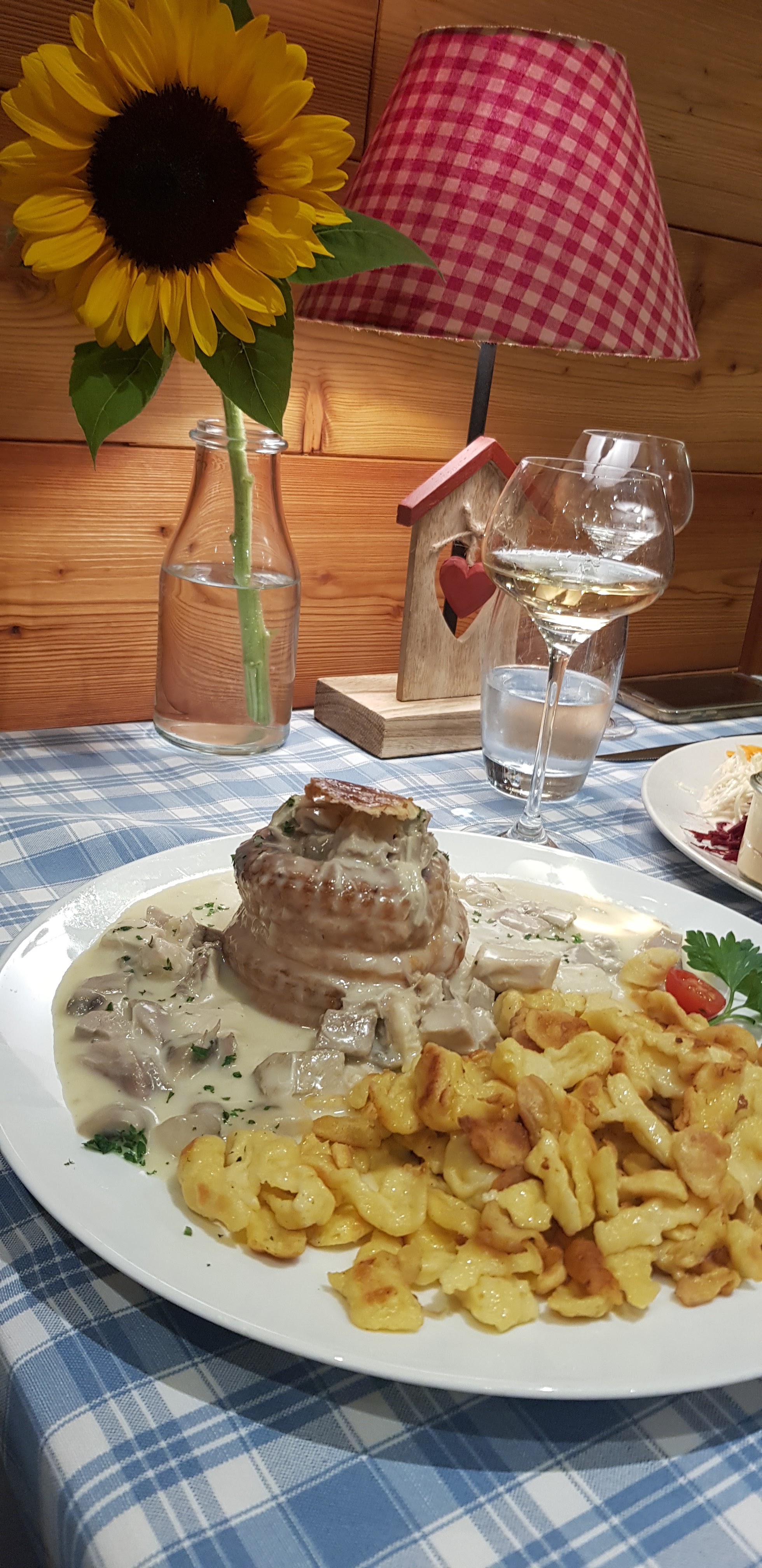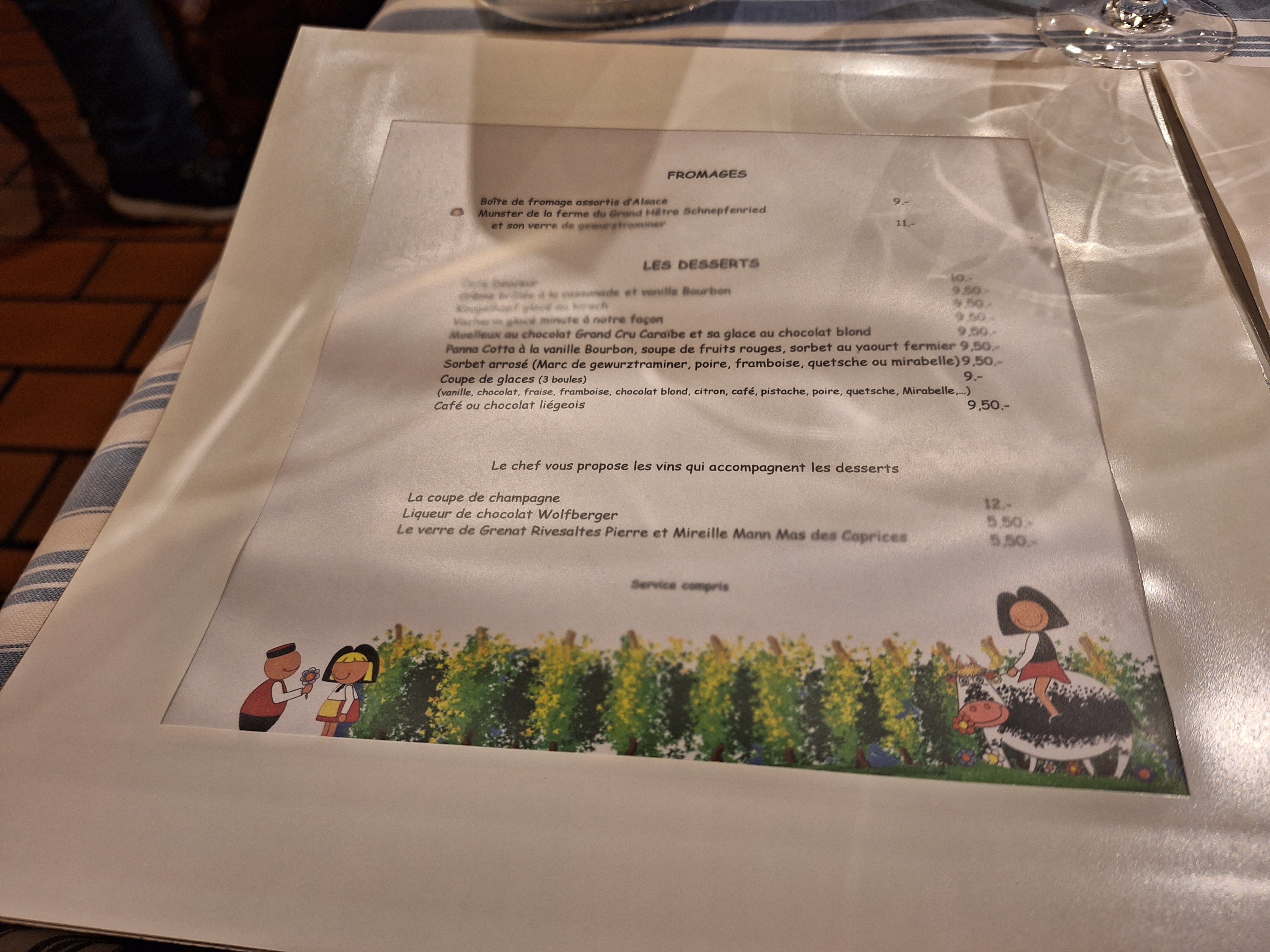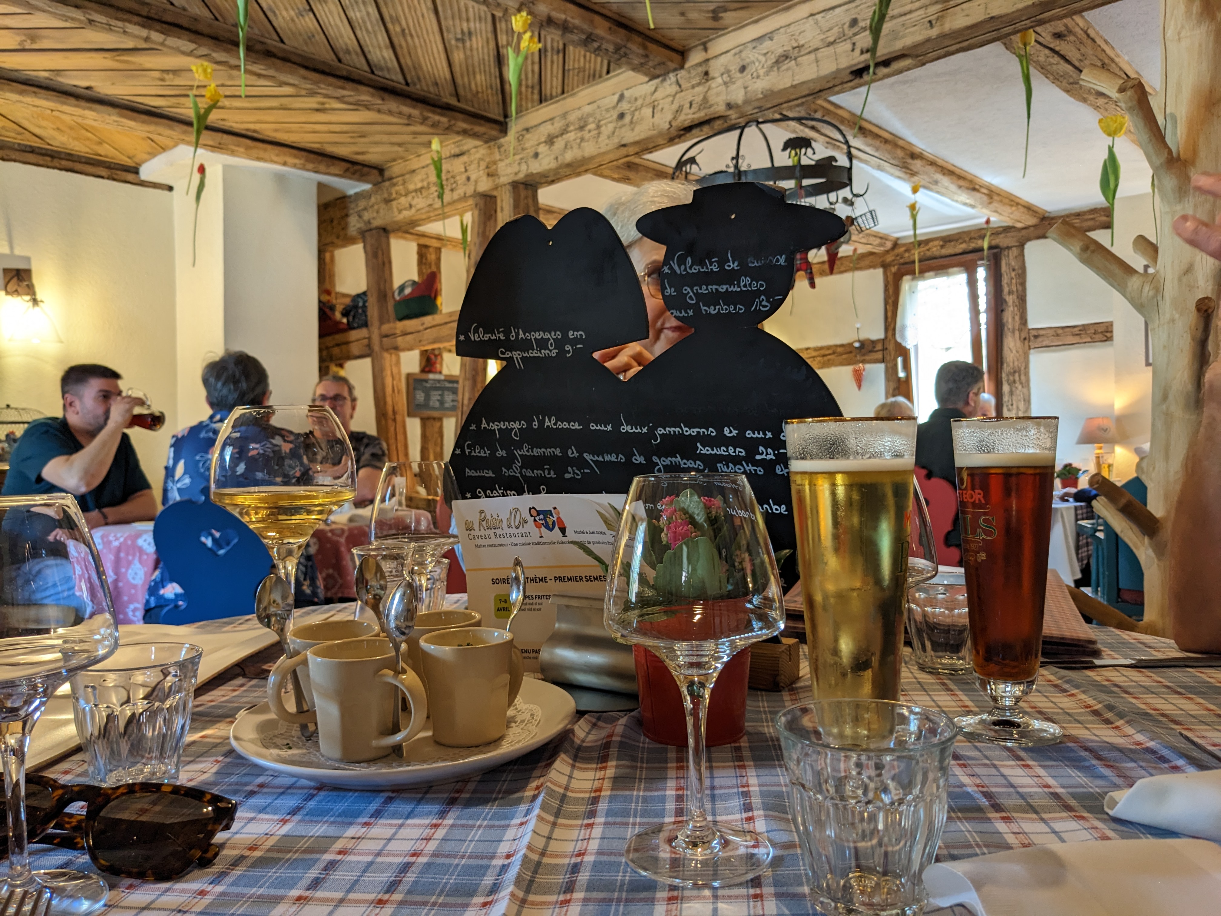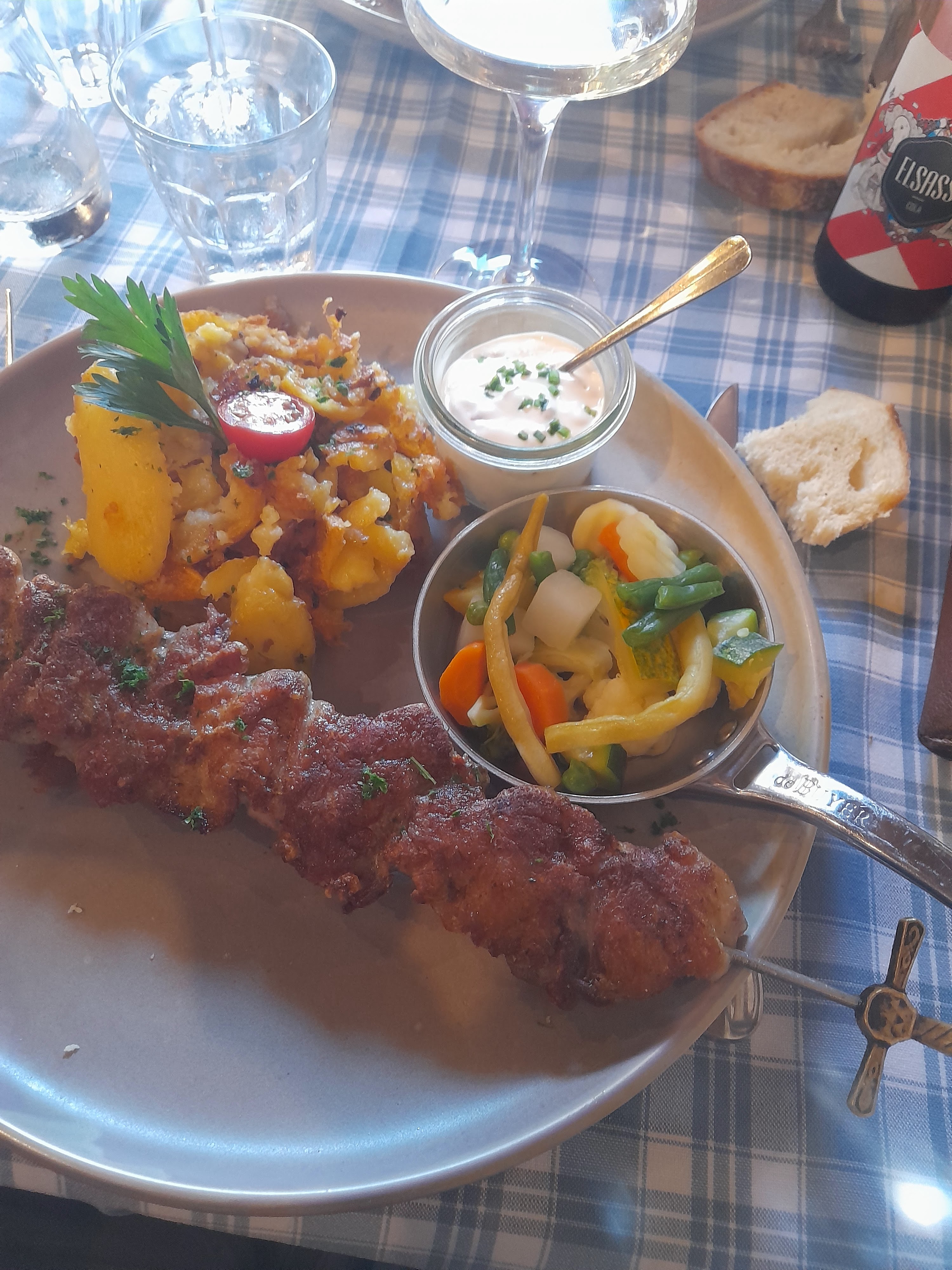 Restaurant typiquement alsacien, la deco, les nappes. La cuisine est delicieuse, les serveurs très sympas. Rien à redire. A decouvrir