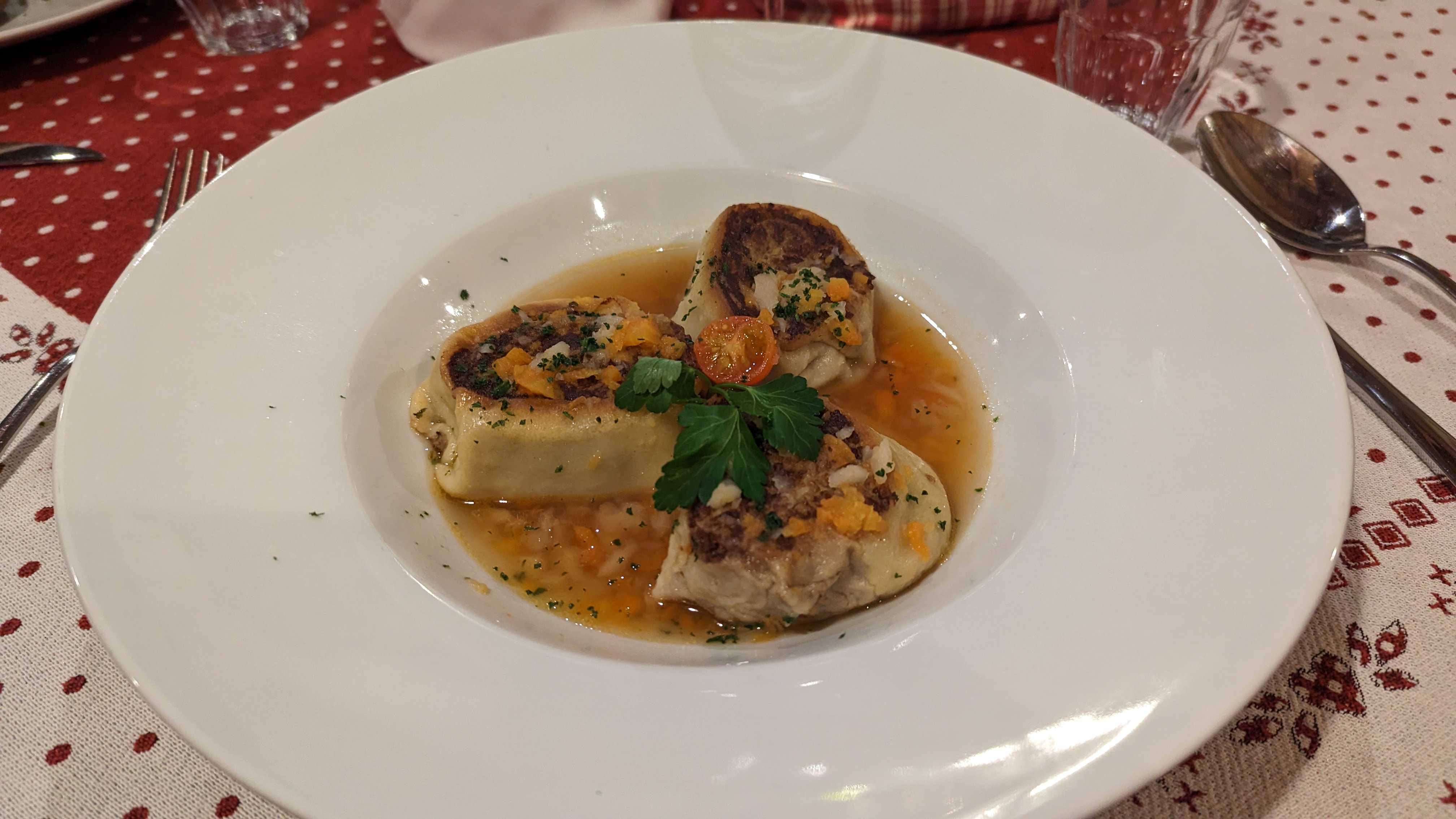 Un délice local qui mérite le détour ! Plats locaux hors du commun et exécutés à la perfection ! En photo la langue de porc et les quenelles de foie, un délice ! En dessert le gratin de clémentines dans son sabayon avec boule de glace au pain d’épice, du jamais vu vous dis-je ! 😍
