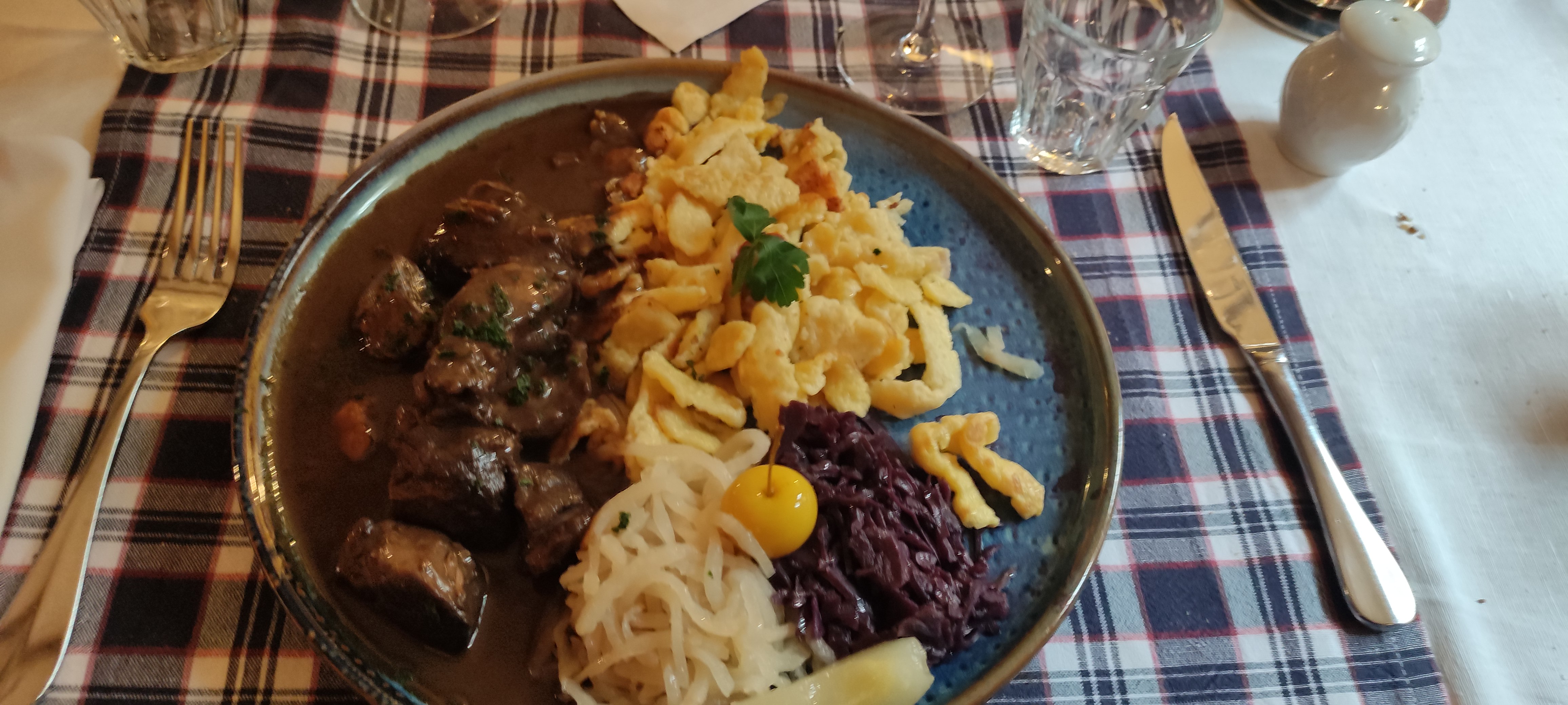Tout, du repas à l’accueil, était parfait. La décoration est magnifique, typique winstub alsacienne, les plats sont très bien assaisonnés, dans des quantités généreuses. On s’est vraiment régalés !