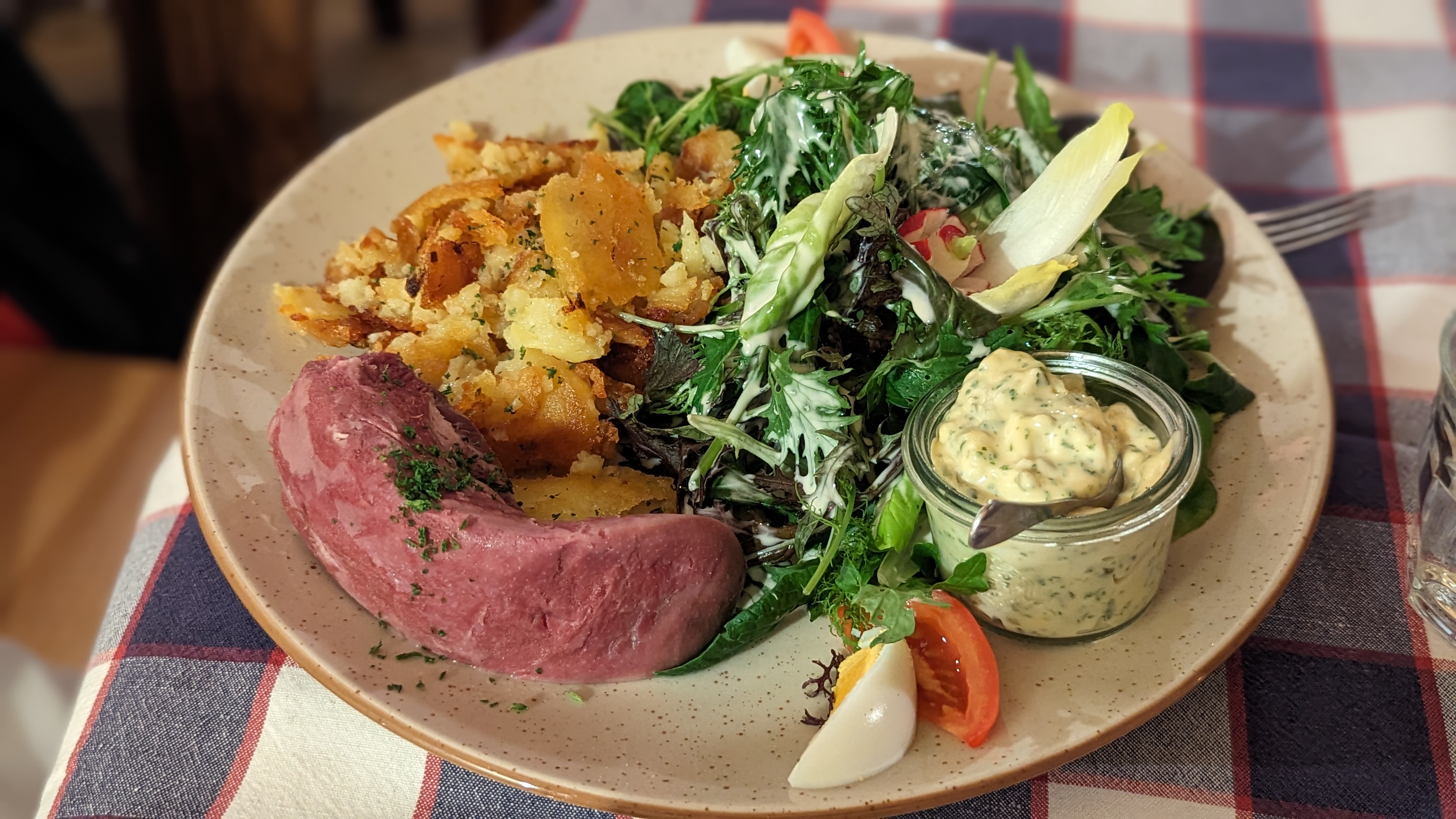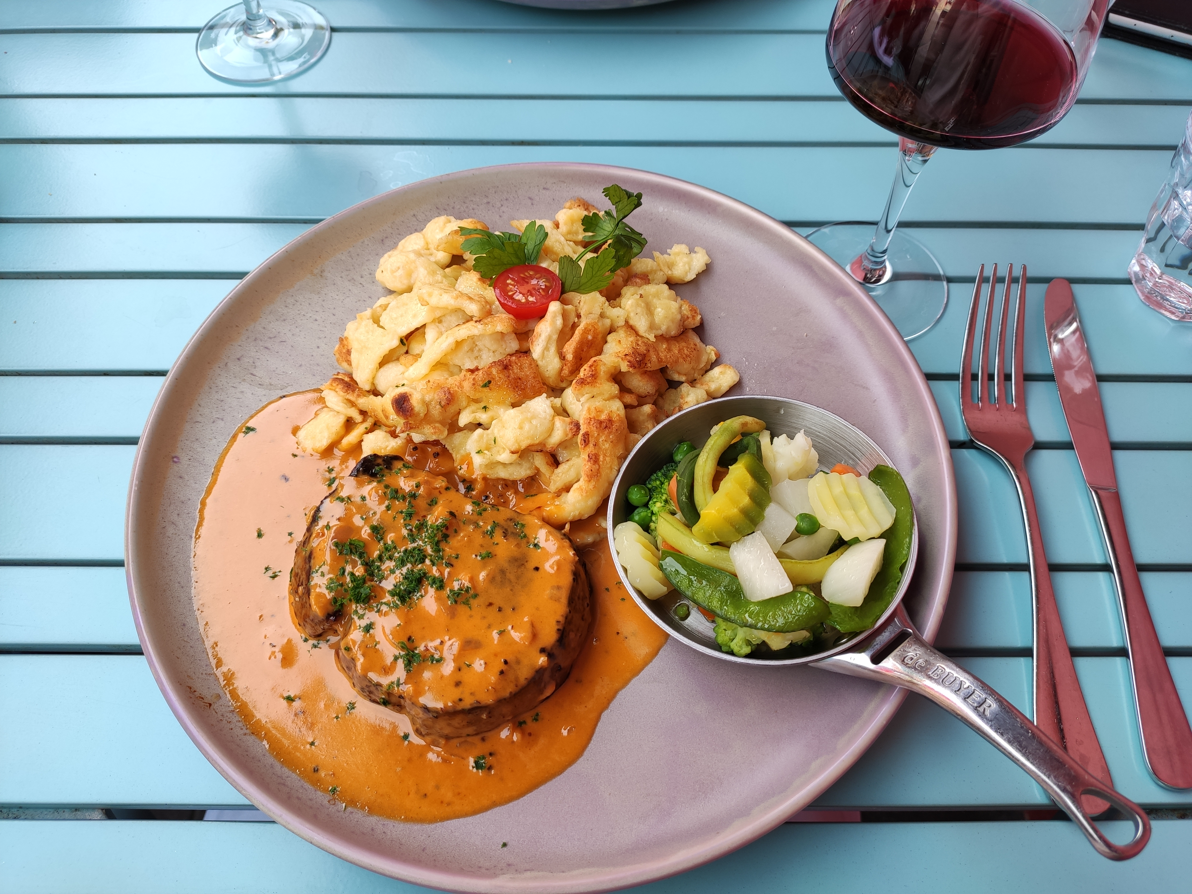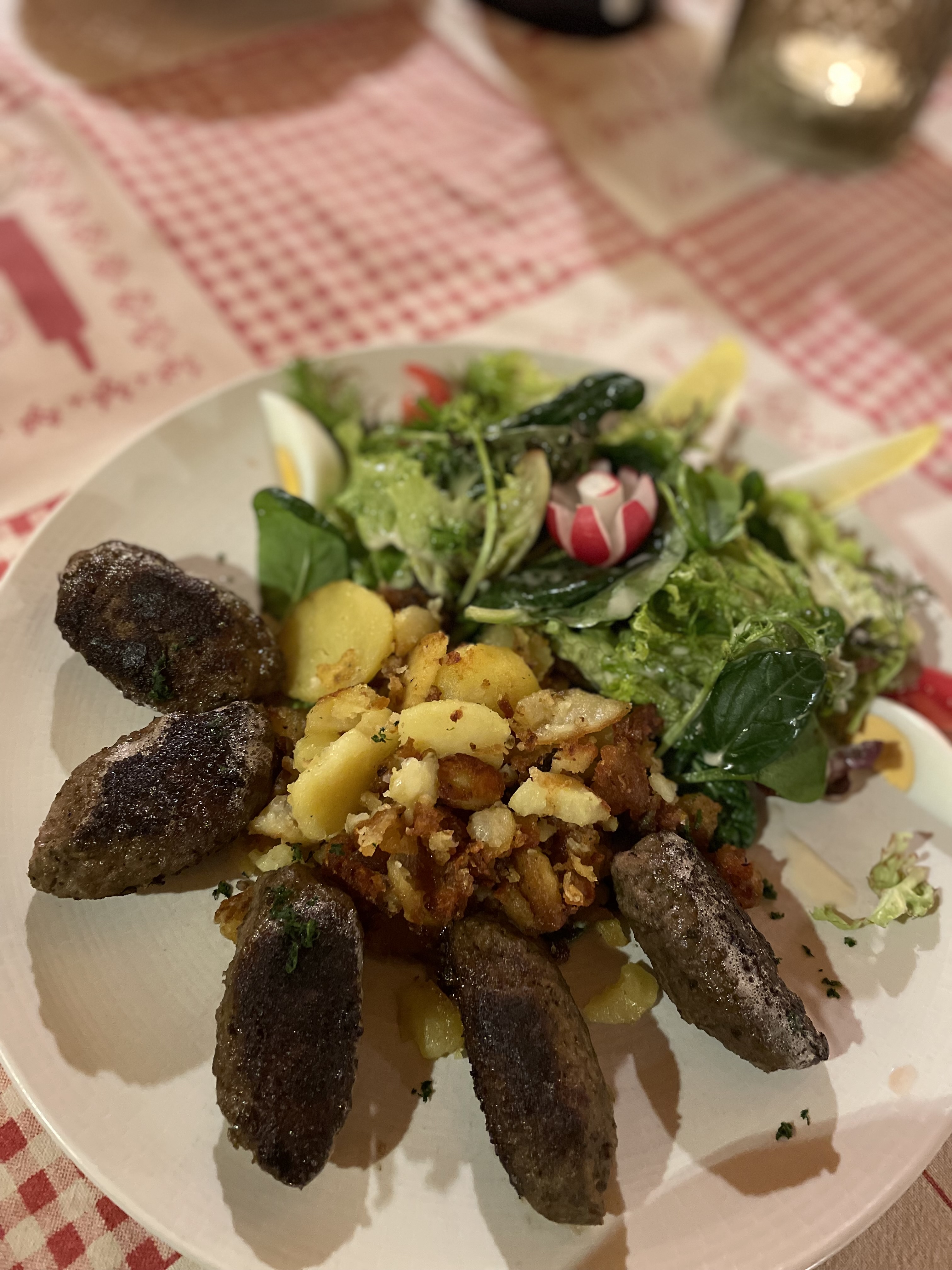 Excellente découverte! Ambiance soignée et agréable. Service aux petits soins. Repas incroyable de début à la fin! Bibelesskase excellent quand à moi j’ai pris une incroyable bouchée à la reine!