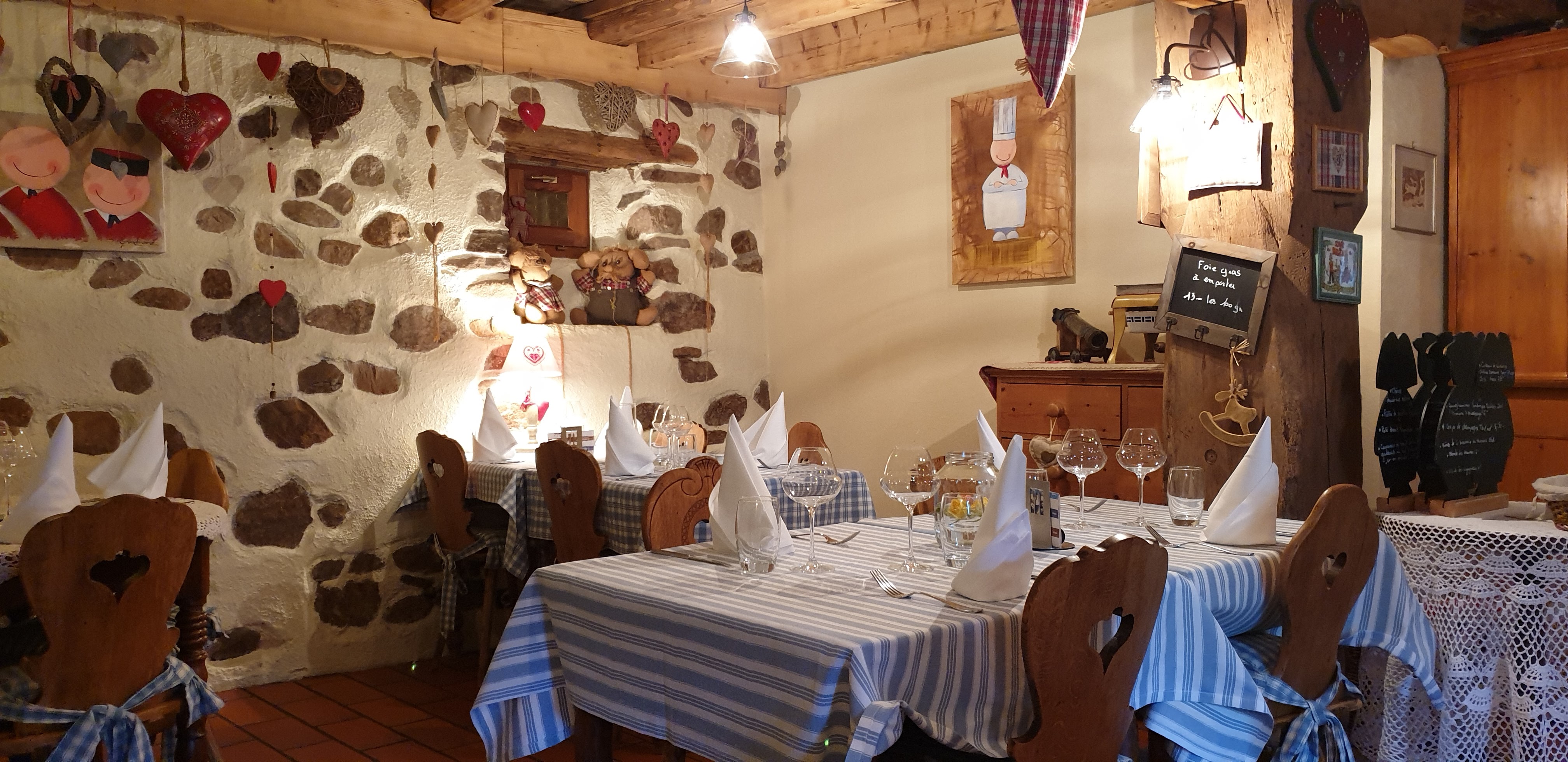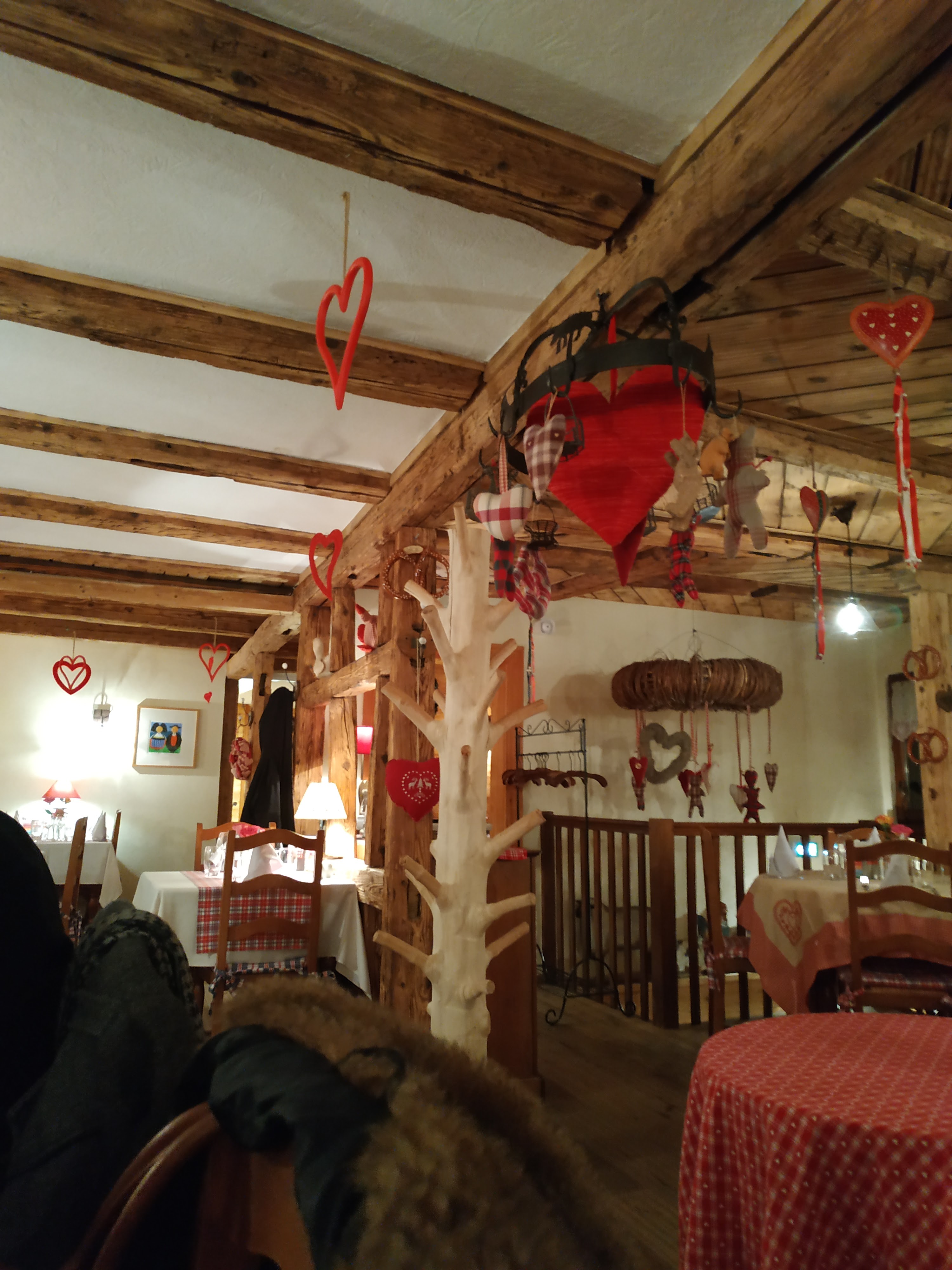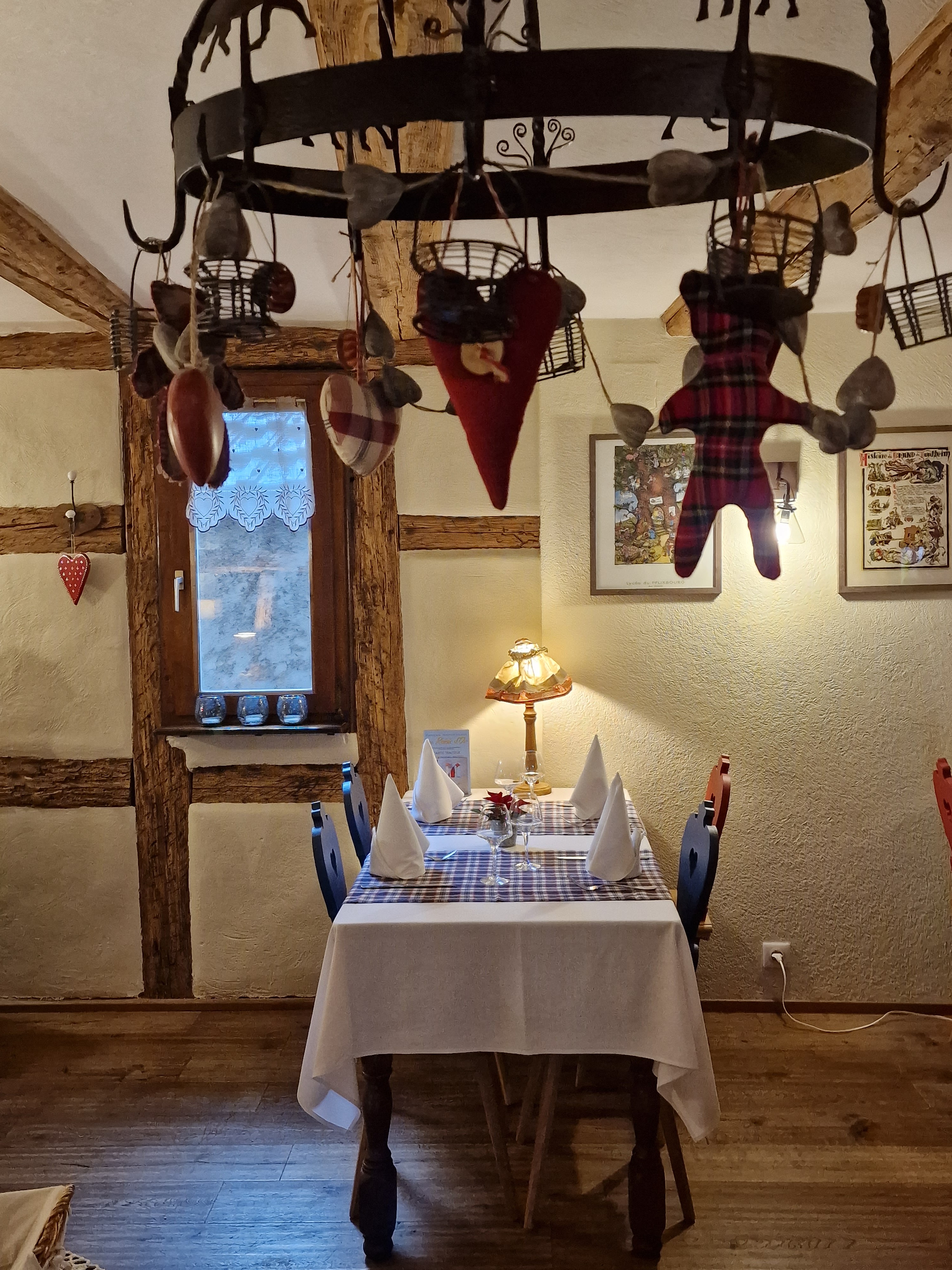 Une déco très alsacienne, poutres, pierres et des coeurs, encore des p'tits coeurs, des grands aussi... Grand comme le coeur du chef, qui oeuvre en cuisine pour régaler ses hôtes. Une cuisine juste, enlevée et goûteuse, où les spécialités made in Alsace, sont les best-sellers. Mais que les adeptes d'une cuisine plus aérienne se rassurent, les poissons, gambas et créations végétariennes à base de champignons sont de belle facture. Le service est attentionné, souriant et sans chichi. Une bonne adresse qui donnera satisfaction aux amateurs des deux écoles de la cuisine régionale.