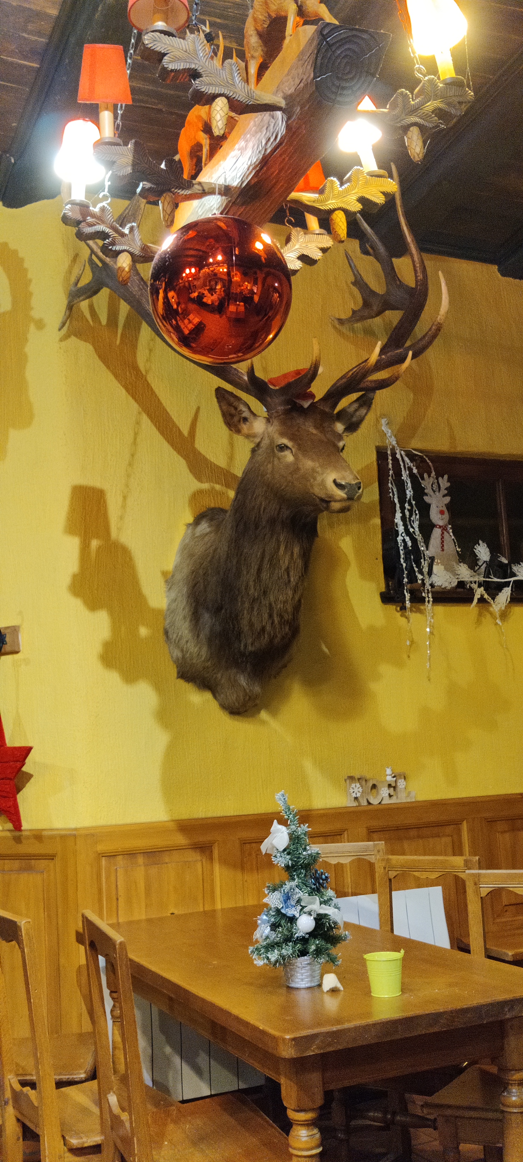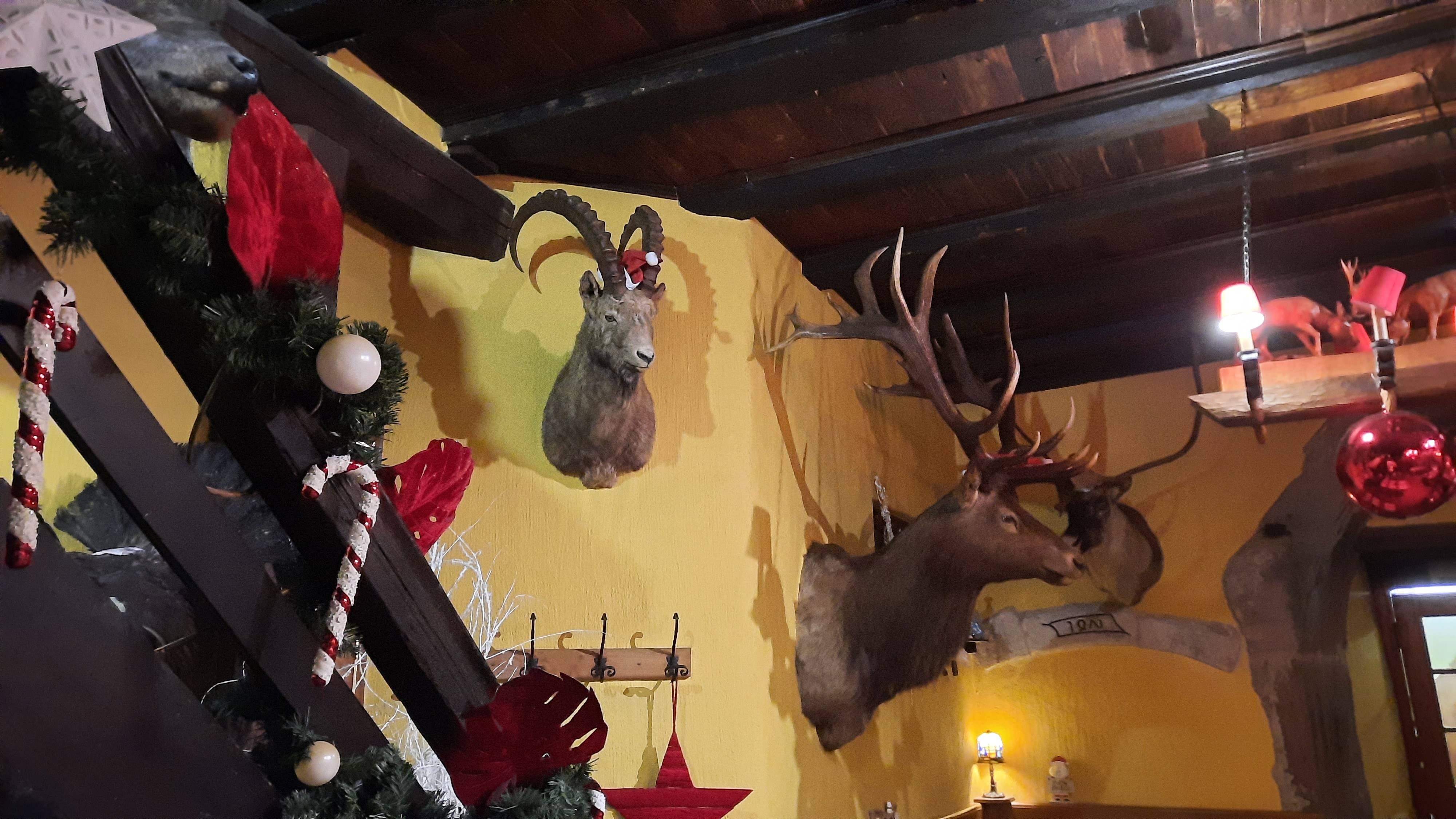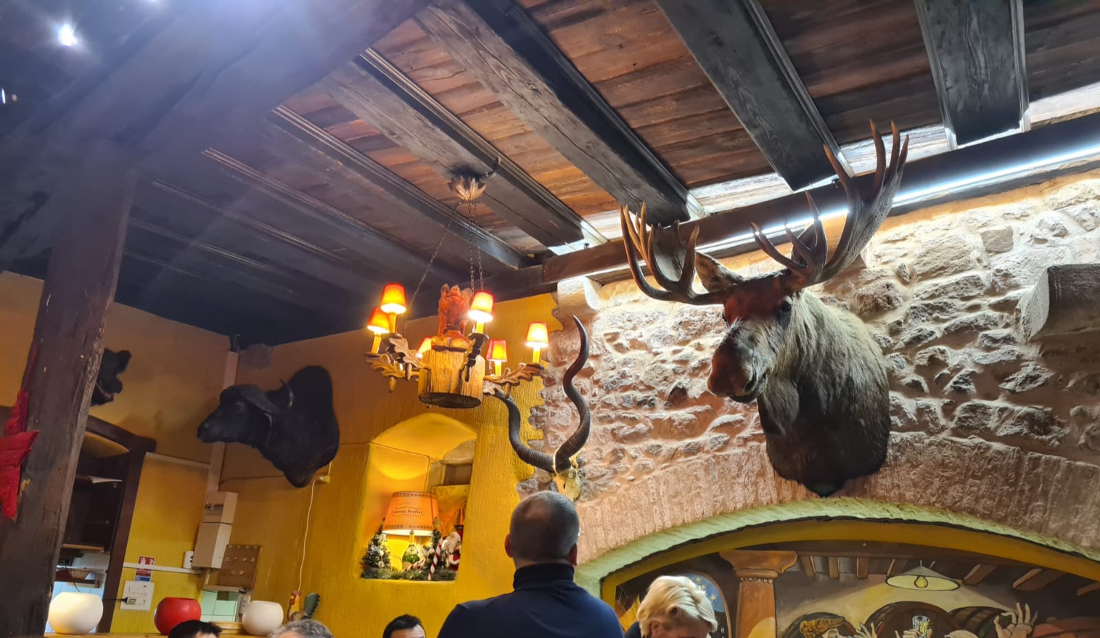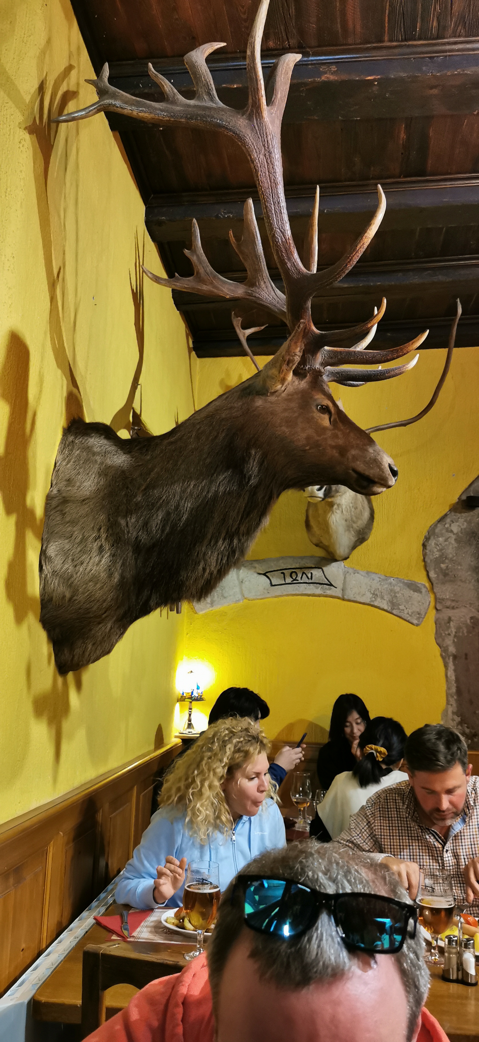 Expérience très spéciale : vous mangez au milieu d'animaux empaillés. Notre repas : choucroute. Pommes de terres peu cuites (nous étions plusieurs). Les serveurs sont malgré tout sympathiques