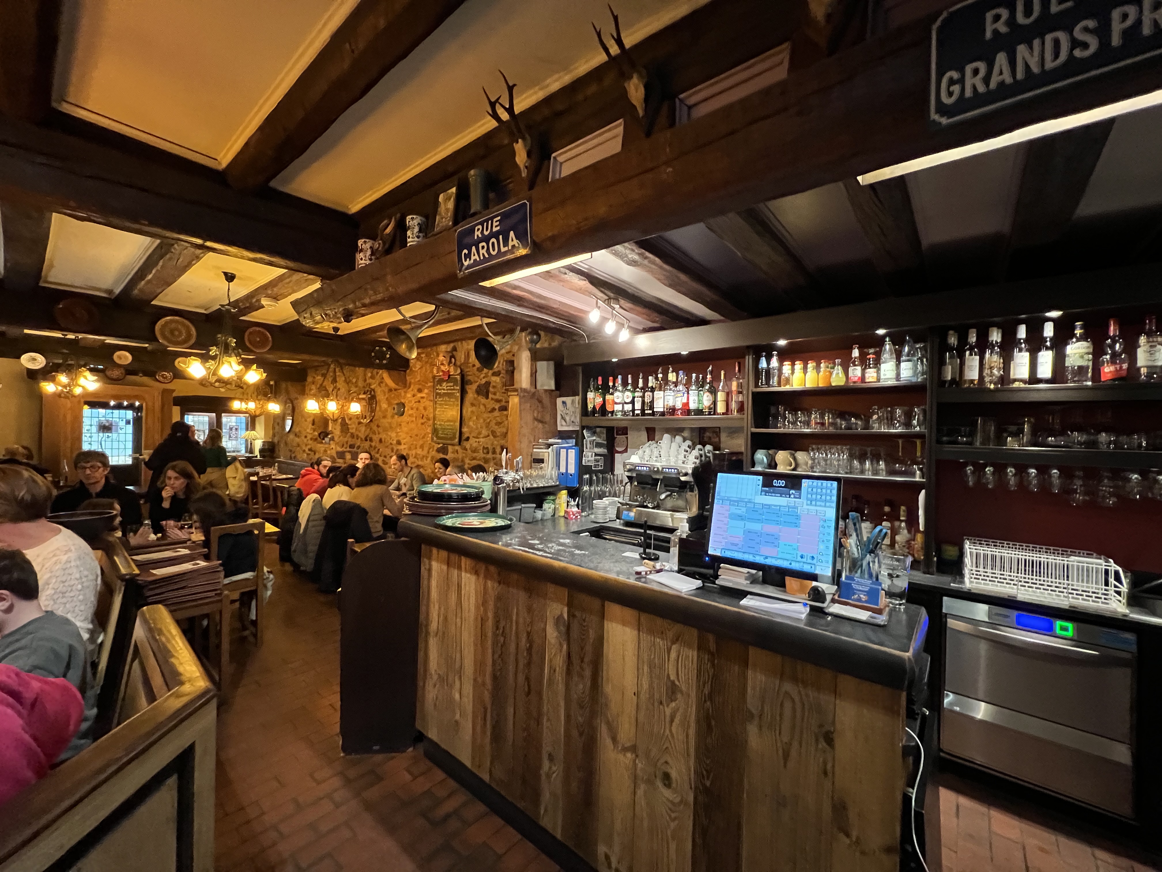 Beaucoup de touristes dans le village en ce dimanche de fin novembre, restaurant vaste, une file d'attente à l'intérieur : le pire était à prévoir . Nous avons été agréablement surpris par la qualité des plats ( rognons ou civet de biche), l'excellent accueil des serveurs malgré leur rapidité et la note tout à fait correcte. Les plats étaient copieux et nous sommes ressortis du restaurant bien rechargés en calories, prêts pour un après midi de balade dans le froid.