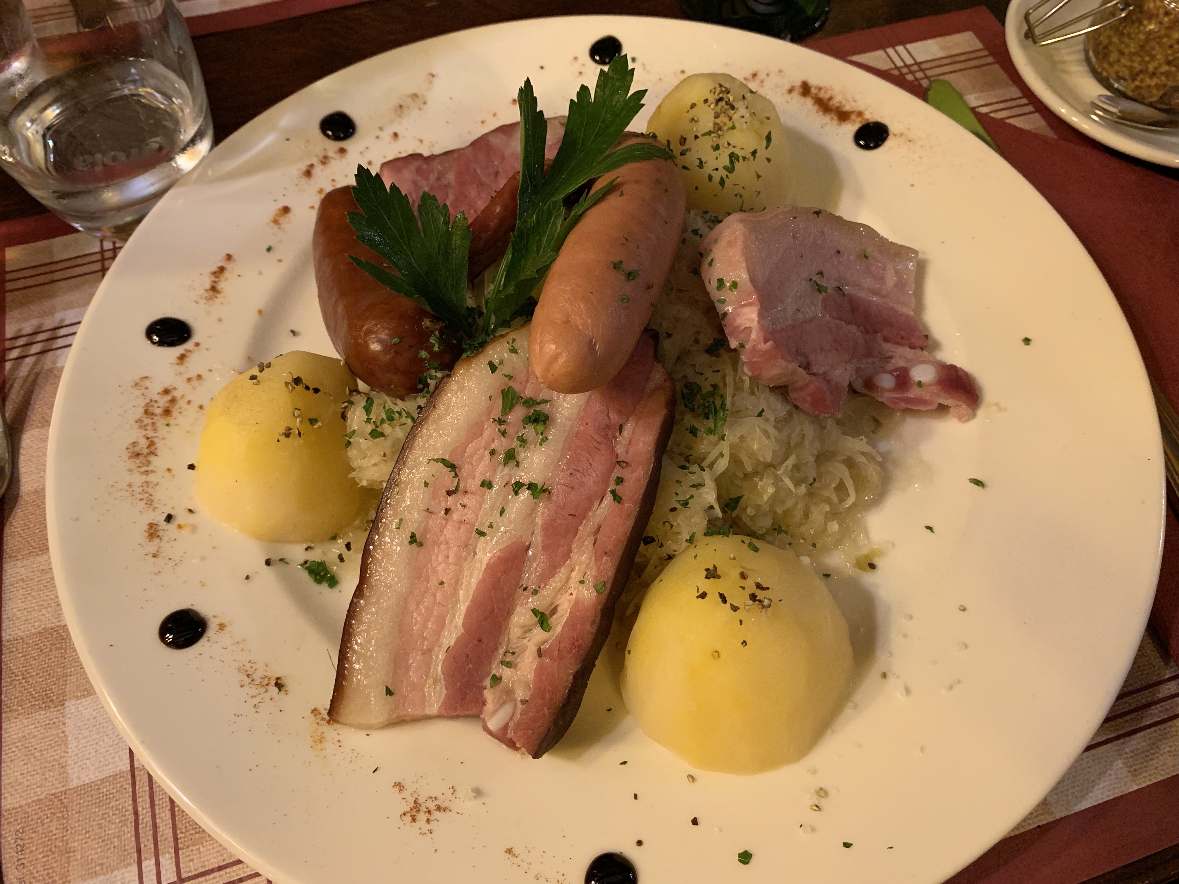 Repas typique dans un restaurant tout aussi typique de l’Alsace. Service efficace et avec le sourire, plats bien présentés et bien fournis.
