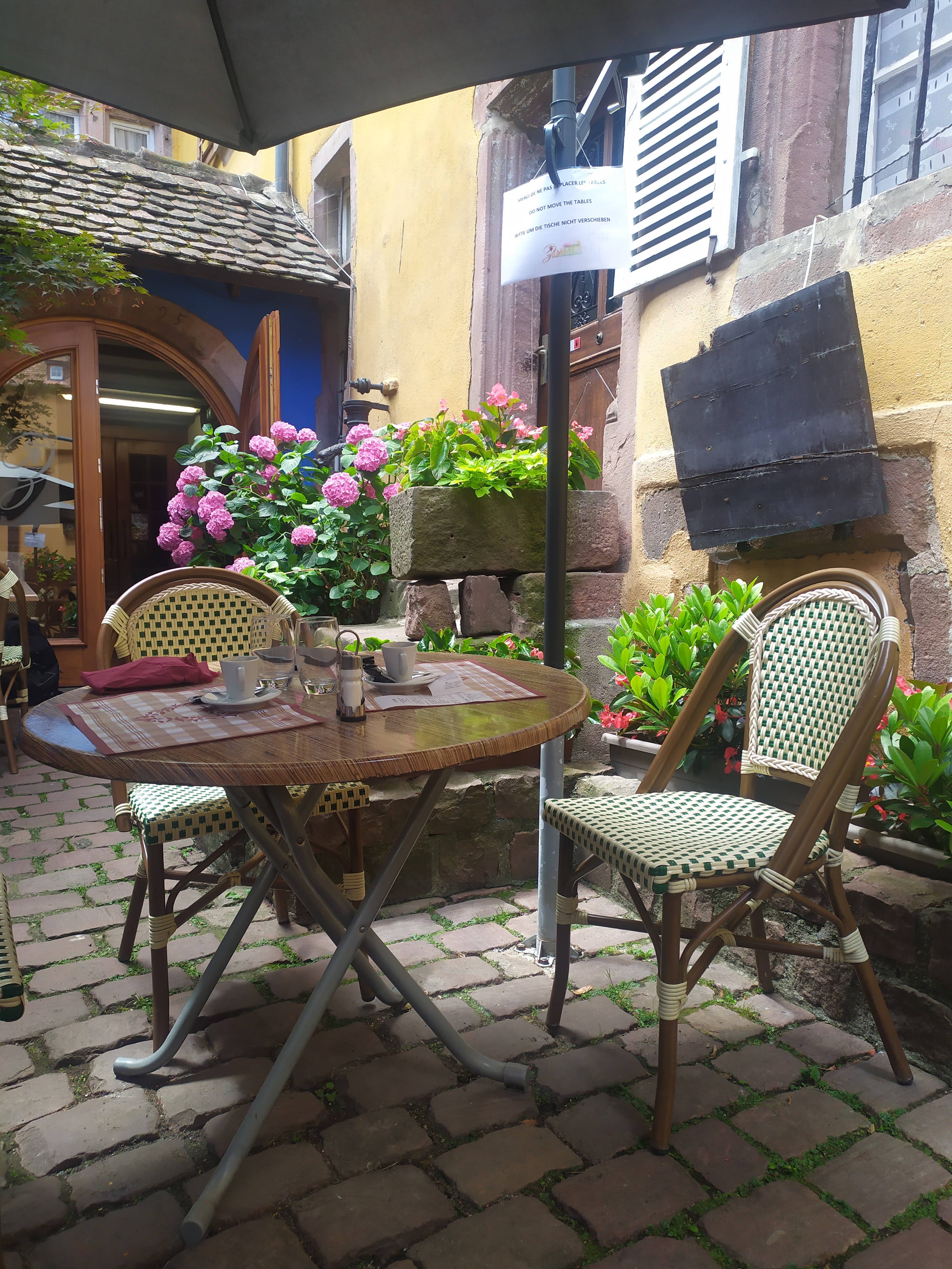 J ai adoré ce lieu. Service impécable, rapide, belle terrasse et suis revenue le soir dans le winstub. Les plats sont copieux et cuisine de très bonne qualité!.mention spéciale pour l émincé de porc et le café plus que gourmand! Super!