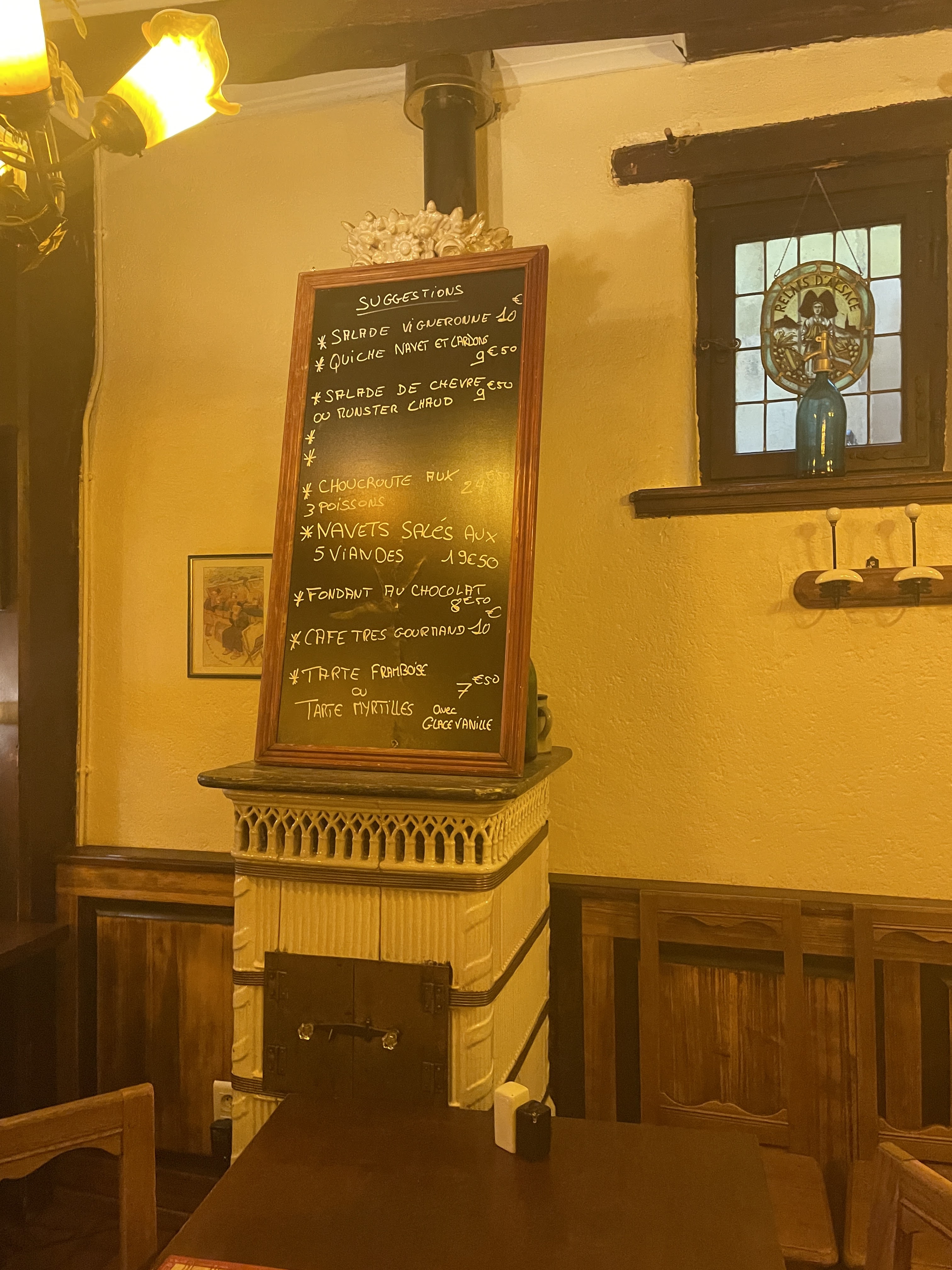 Joli petit restaurant situé dans la rue principale. La salle n'est pas très grande et la proximité est de mise si vous tombez sur des clients sympas vous passerez un super moment. Le service a été impeccable malgré une nombreuse clientèle marché de Noël oblige. La tarte flambée au munster était très bonne et le dessert maison tarte aux myrtilles idem. Prix raisonnable. Je conseille mais vaut mieux réserver.