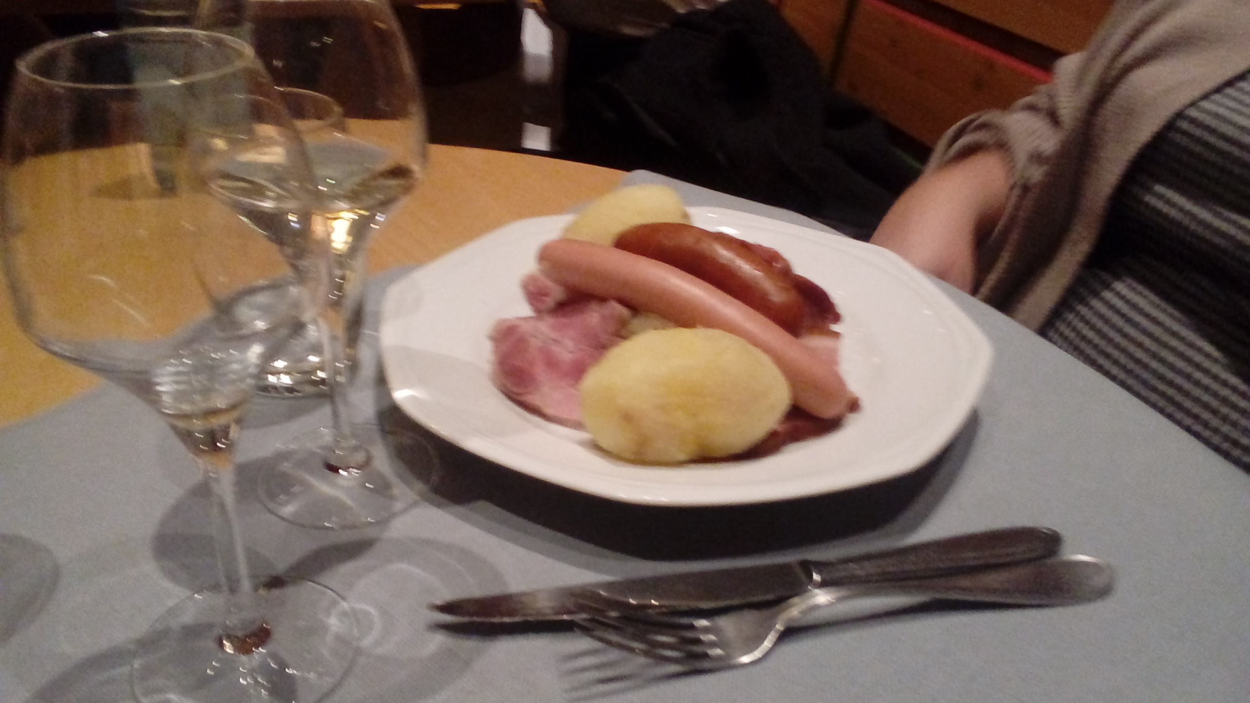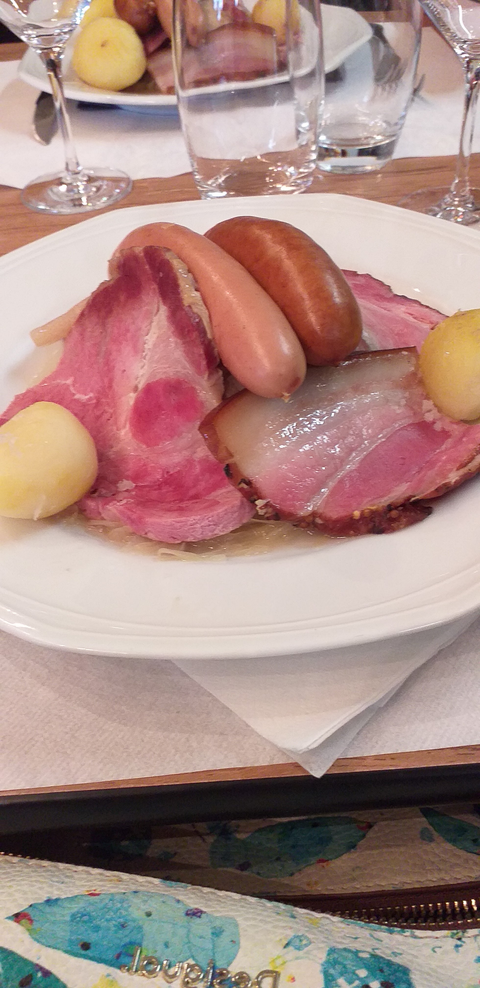 Tout d'abord nous avons attendu plus d’une demi heure pour être servi. J’ai commandé un Baeckeoffe il n’y avait que 2 malheureux petits bouts de viande, en plus elle était dure. Les pommes de terre n’étaient pas assez cuites !! La petite salade baignait dans la vinaigrette… je n’ai rien mangé… De plus, on nous a servi des frites au lieu des spaetzles, le poisson était trop cuit… enfin bref c’était une catastrophe. Bien entendu je ne recommande pas du tout