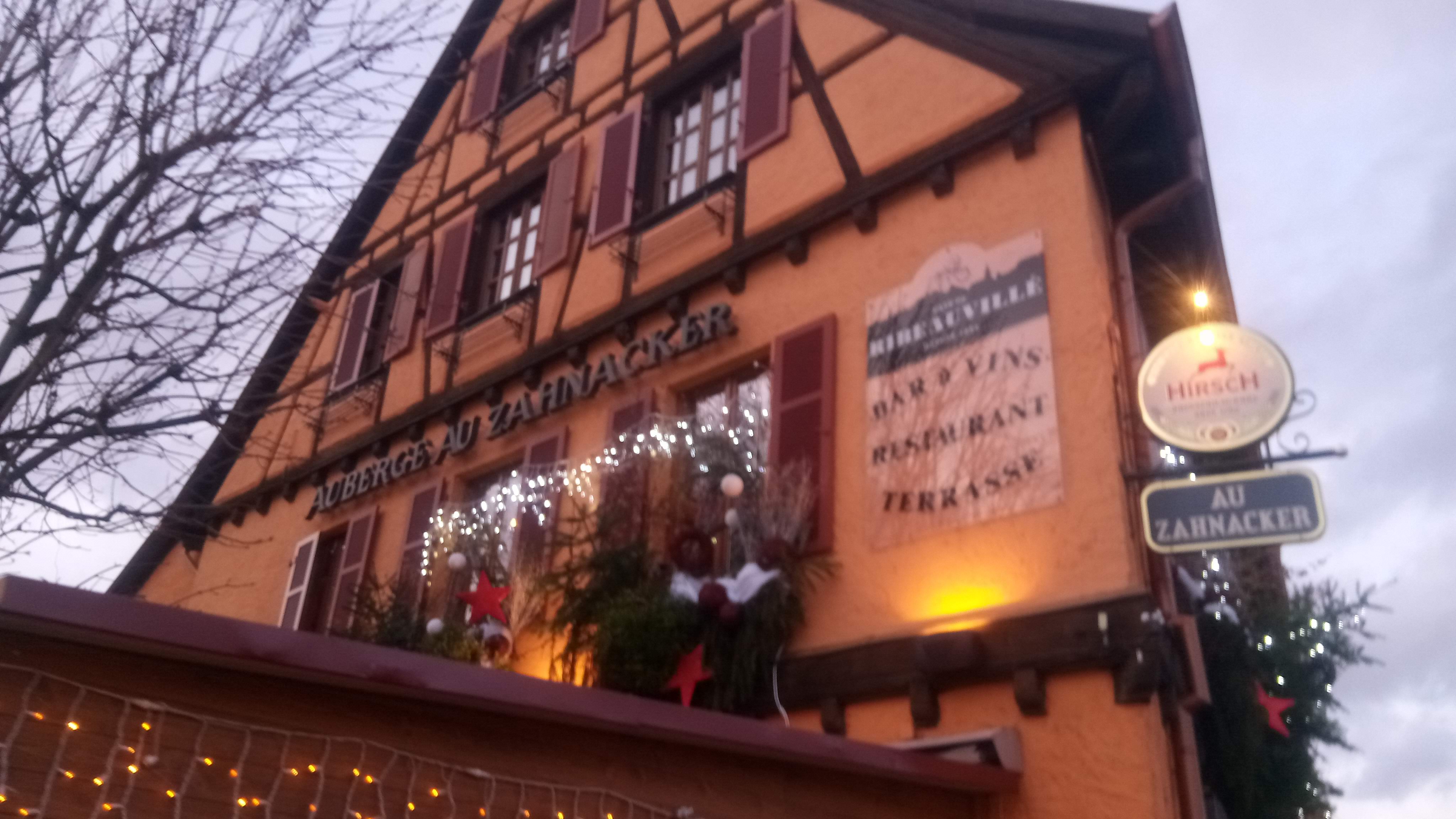 Nous avons dîner le 24 décembre à l'auberge Zahnacker : QUEL DOMMAGE que l'on ne puisse pas donner 2 notes une pour la cuisine et une autre pour le service et l'accueil ... Nous donnerons 5 ETOILES pour le repas c'était vraiment délicieux ( mis à part la mise en bouche) et encore MERCI à la cuisine Concernant le service et l'accueil c'est une autre histoire une vrai CATASTROPHE !!! Nous avons attendu plus de 45 minutes pour obtenir les menus qui nous ont été fourni par une jeune femme très désagréable voir même incorrecte, un sommelier inefficace et peu souriant. Une autre serveuse très sympathique mais qui se permet de nettoyer le rebord de mon assiette avec son doigt (sans commentaires). Se fut très compliqué d'obtenir nos verres de vin en même temps que nos différents plats . La tension entre les membres du personnel était palpable ainsi que parmi tous les convives . Malgré cela comme la cuisine était excellente Nous avons gardé le sourire et passé une bonne soirée. Merci à la personne qui m'a pris la réservation au téléphone qui elle était fort sympathique