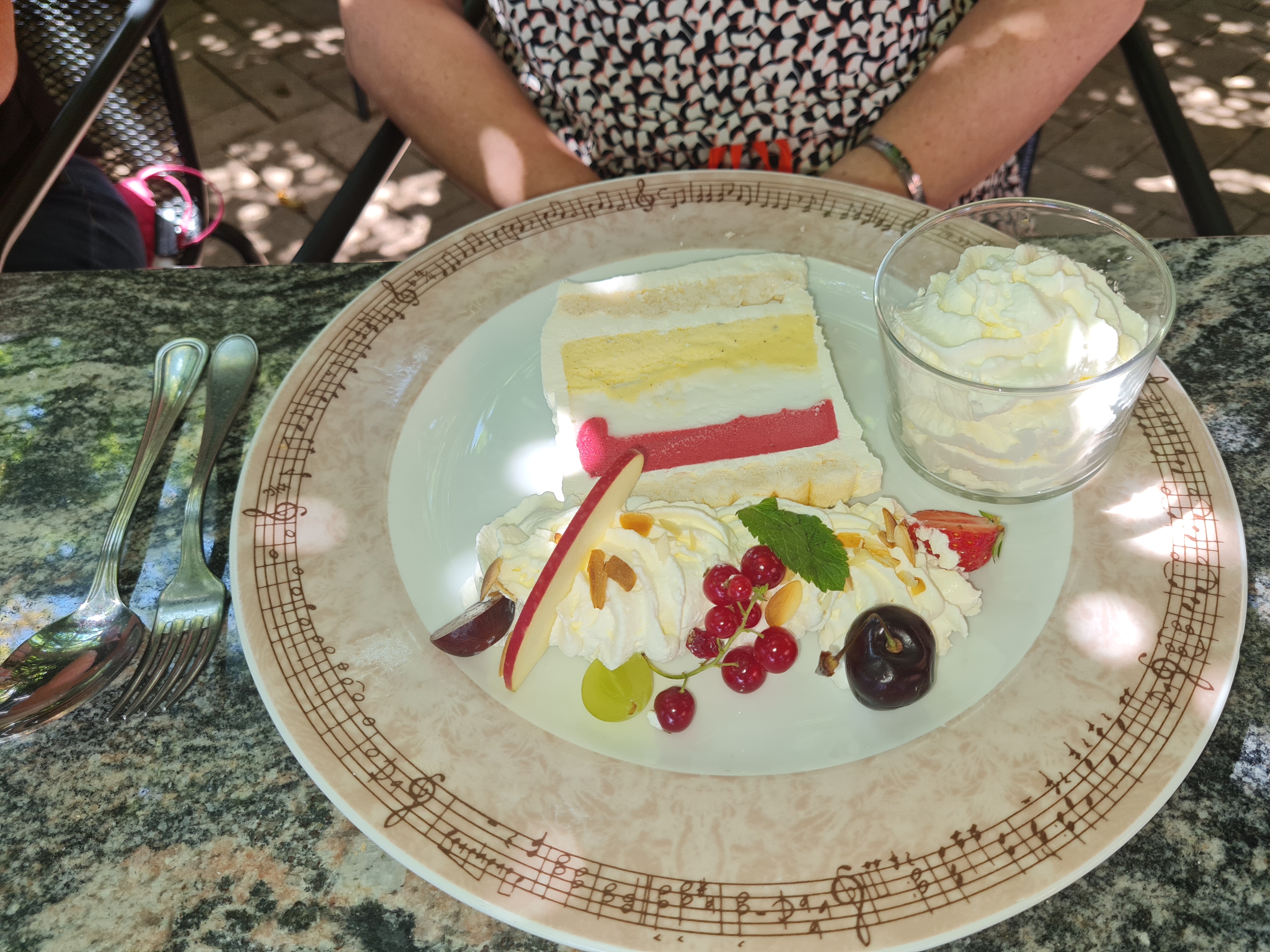 Belle terrasse ombragée, la cuisine est bonne. Nous avons goûter le baeckoffe dommage qu'il y ait qu'une viande car normalement il y en a 3.Les prix sont abordables.