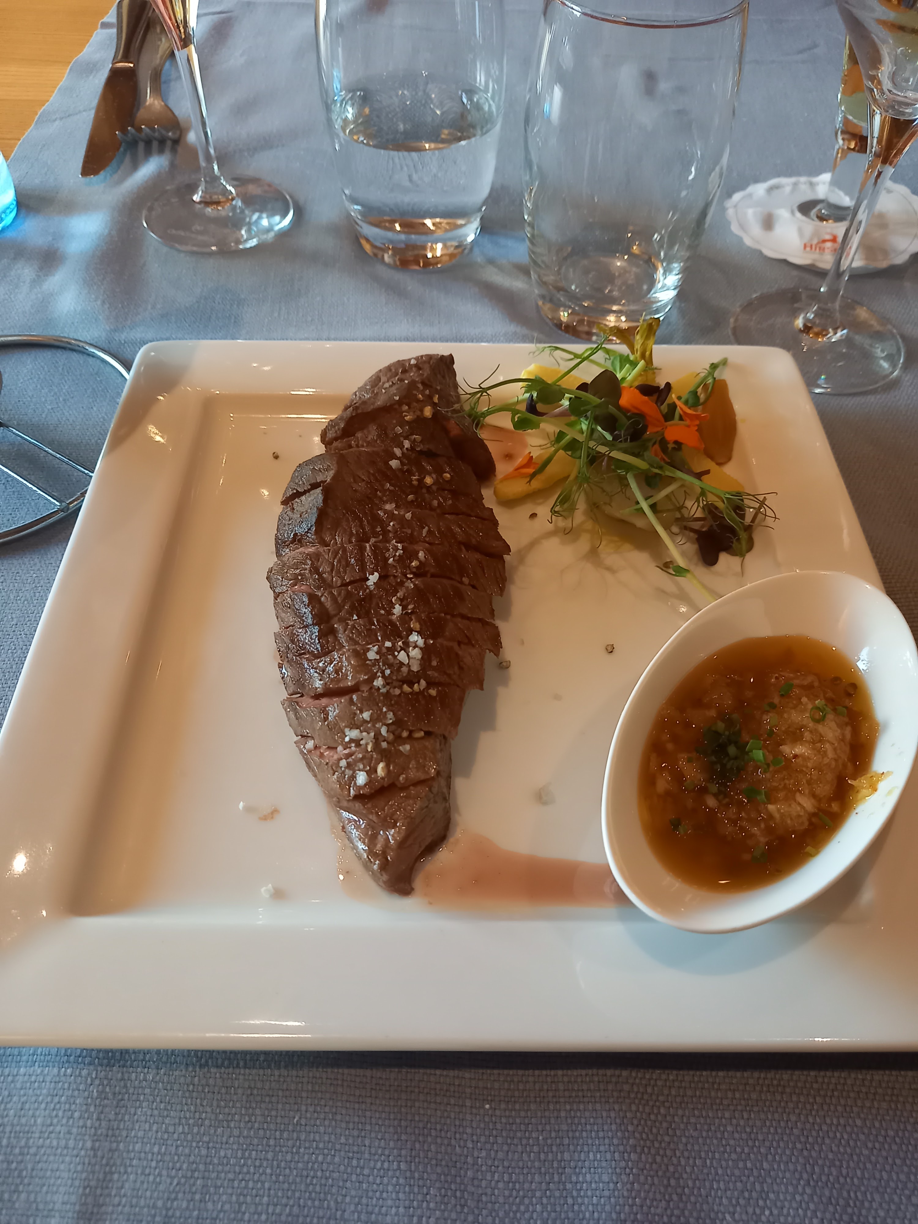 Un peu déçue. Des légumes pas cuits et froids et une sauce pour la lotte pas terrible. Le civet de sanglier était excellent .Le vin également. Bon accueil