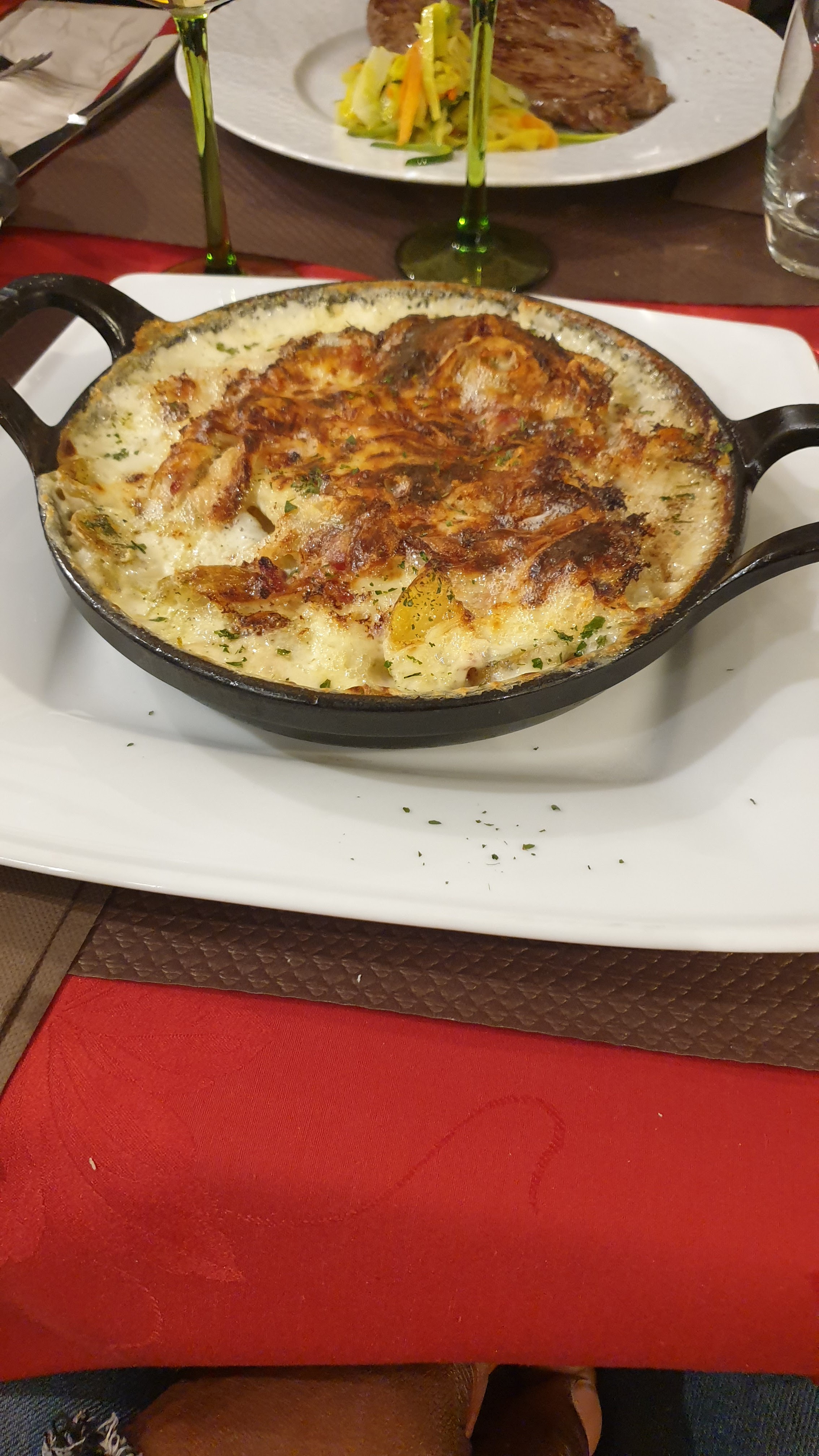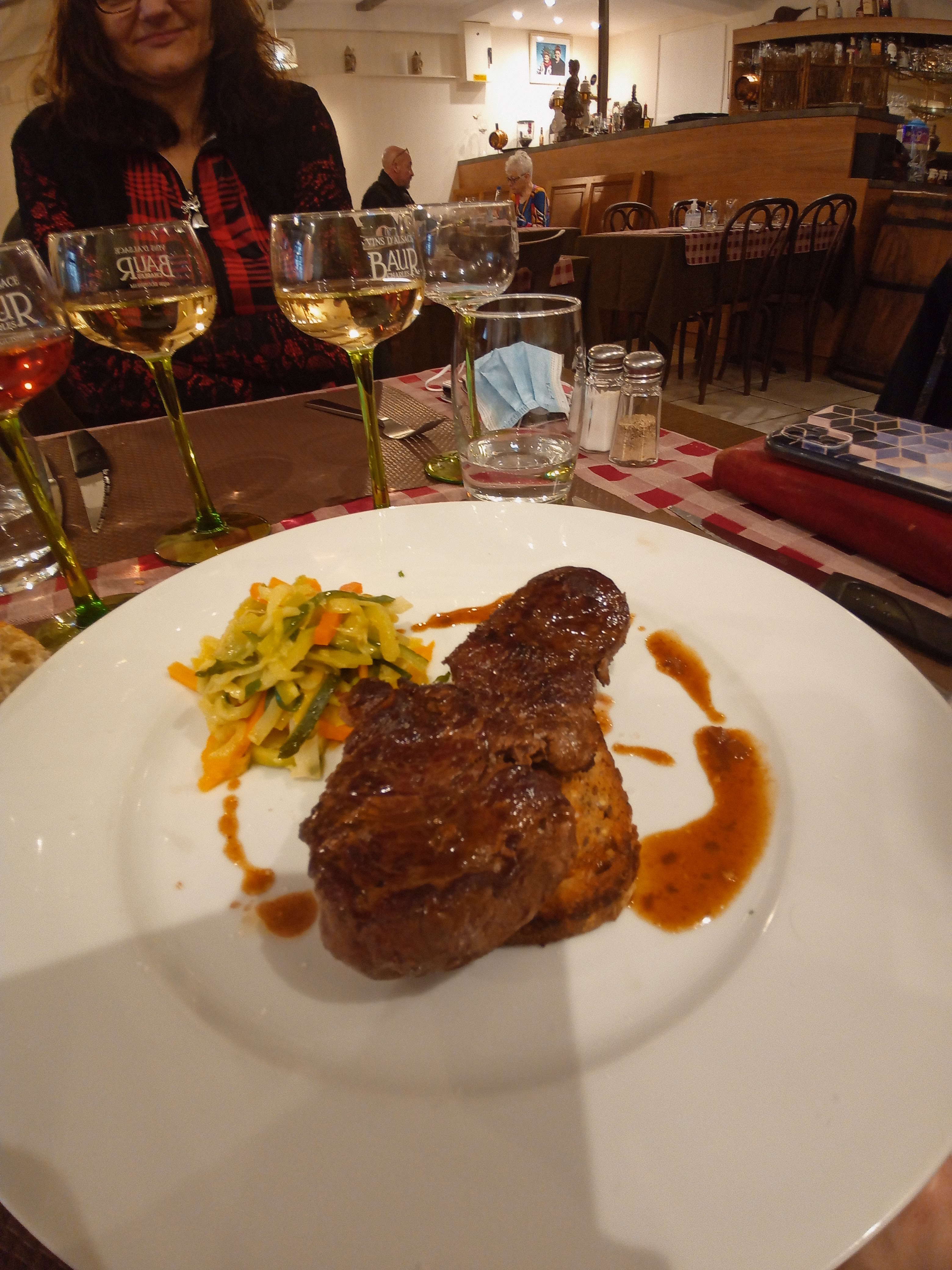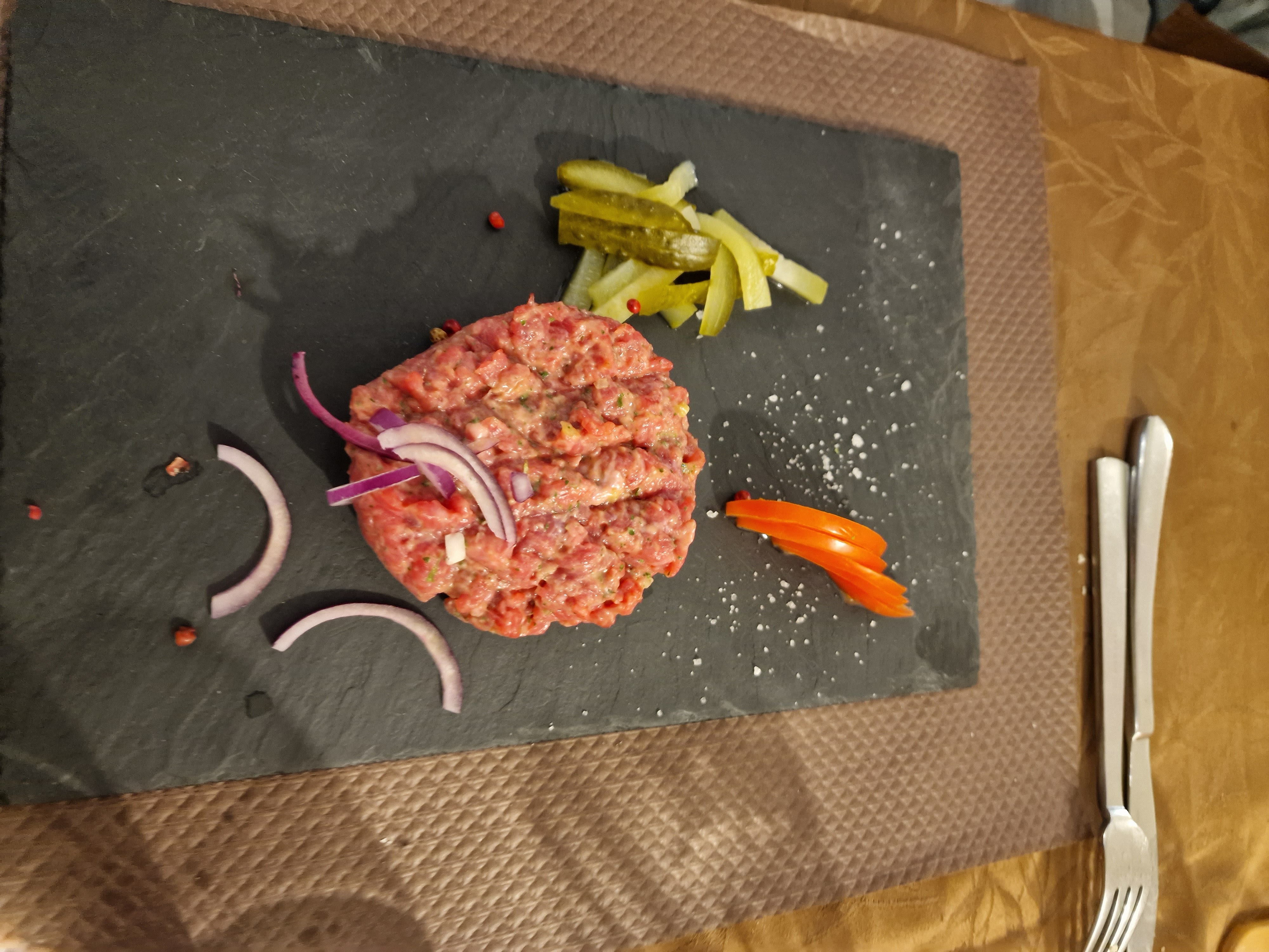 Accueil un peu froid,par contre les cordons bleus au munster, impeccable 👍👍👍👍, petit - pour la viande de mon fils qui était un filet de bœuf,donc sans gras et en un morceau,il a reçu 2 petits morceaux avec pas mal de gras. Pour 28 euros c'est quand même abusé.