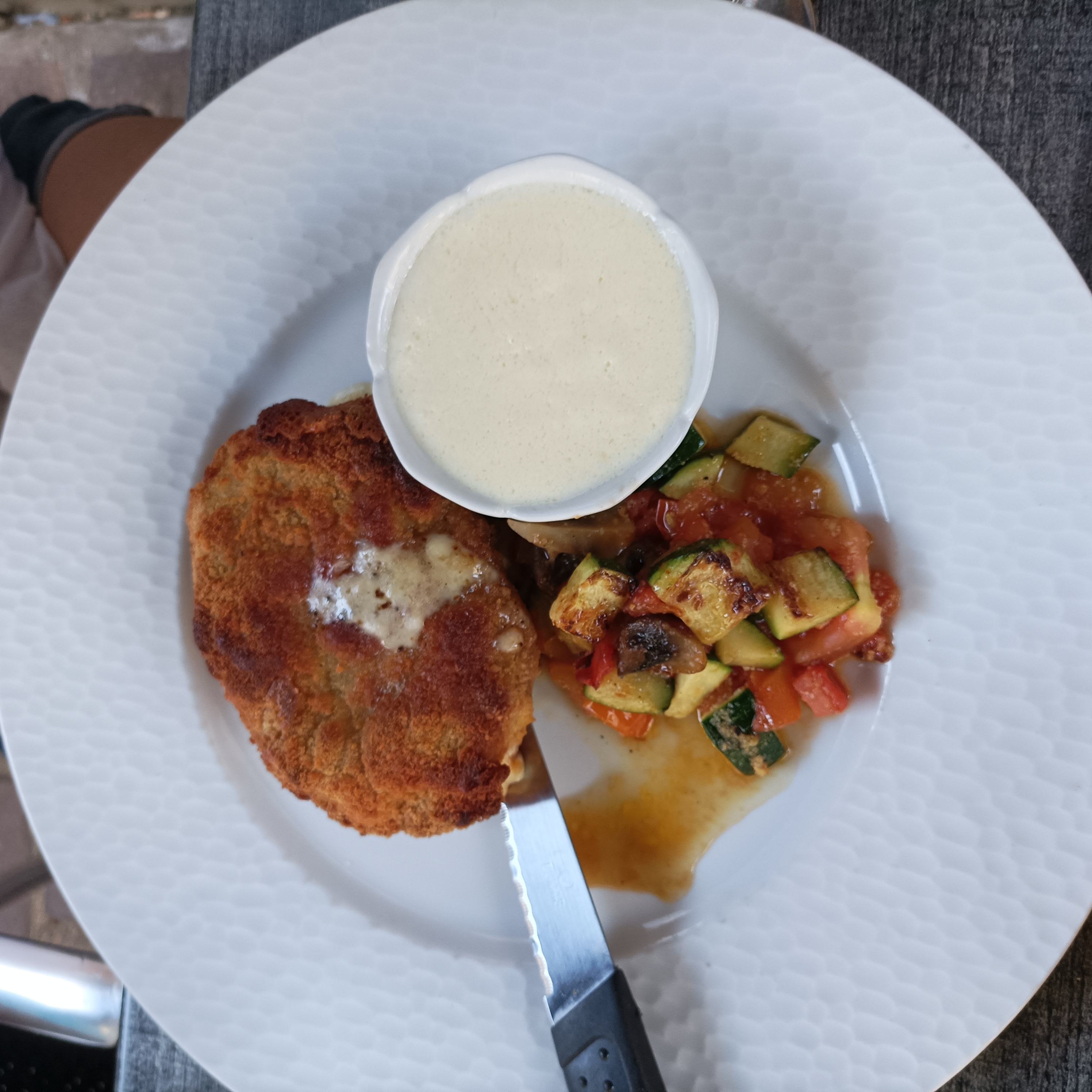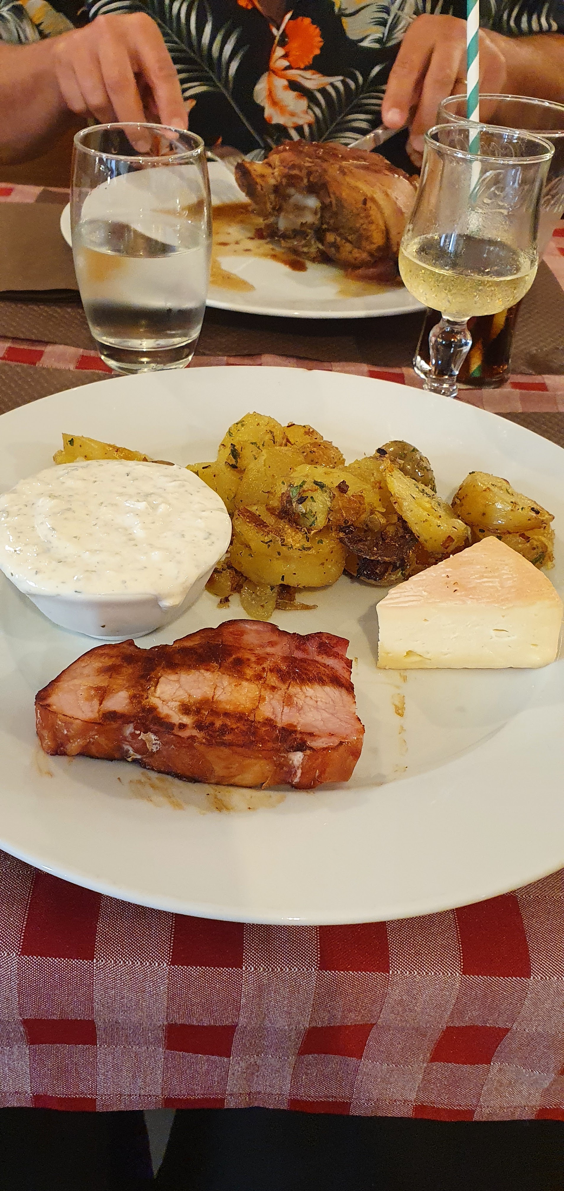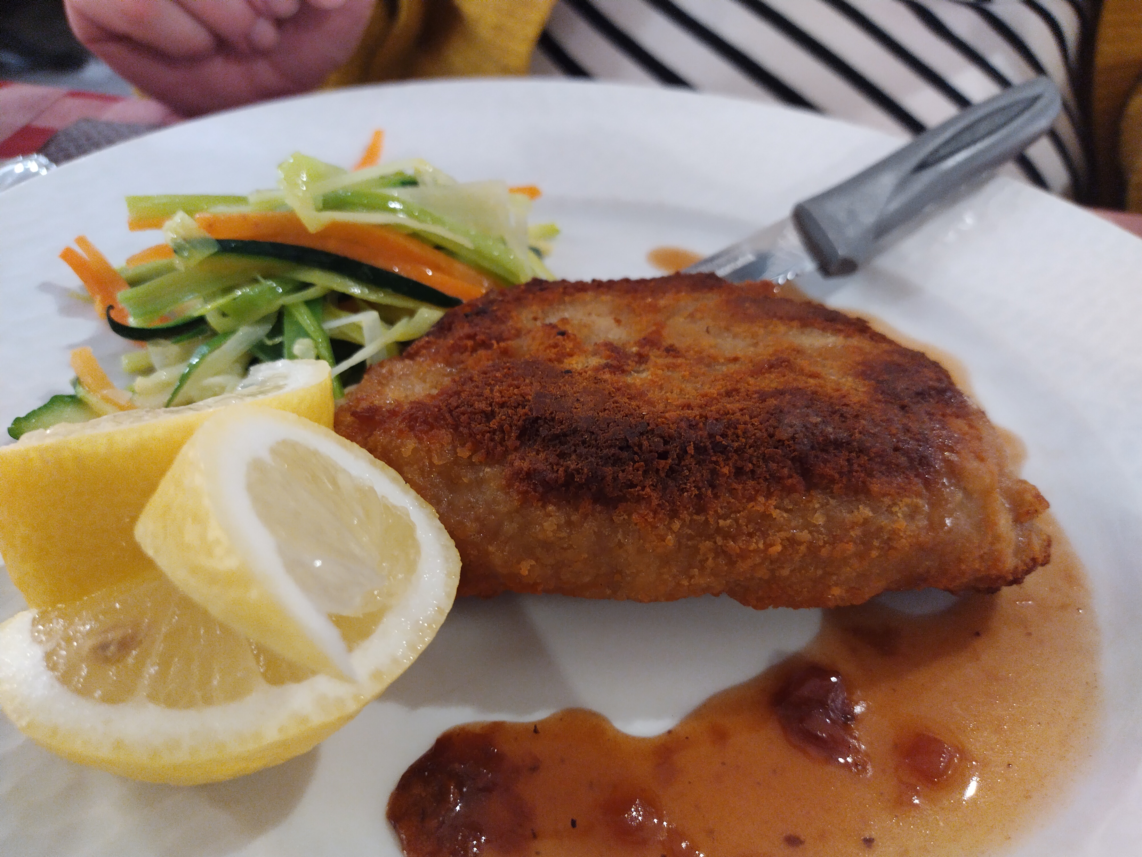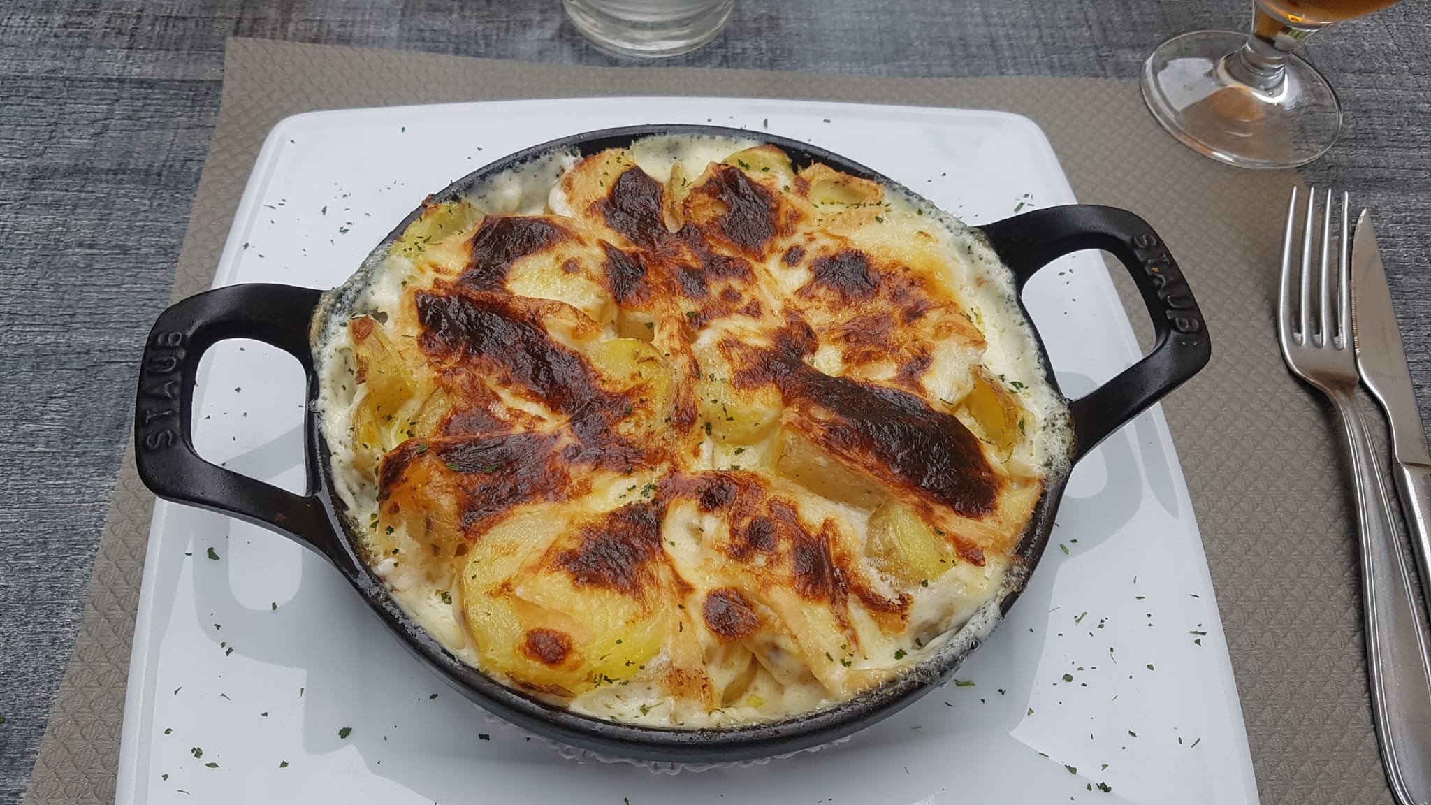 Accueil un peu froid,par contre les cordons bleus au munster, impeccable 👍👍👍👍, petit - pour la viande de mon fils qui était un filet de bœuf,donc sans gras et en un morceau,il a reçu 2 petits morceaux avec pas mal de gras. Pour 28 euros c'est quand même abusé.