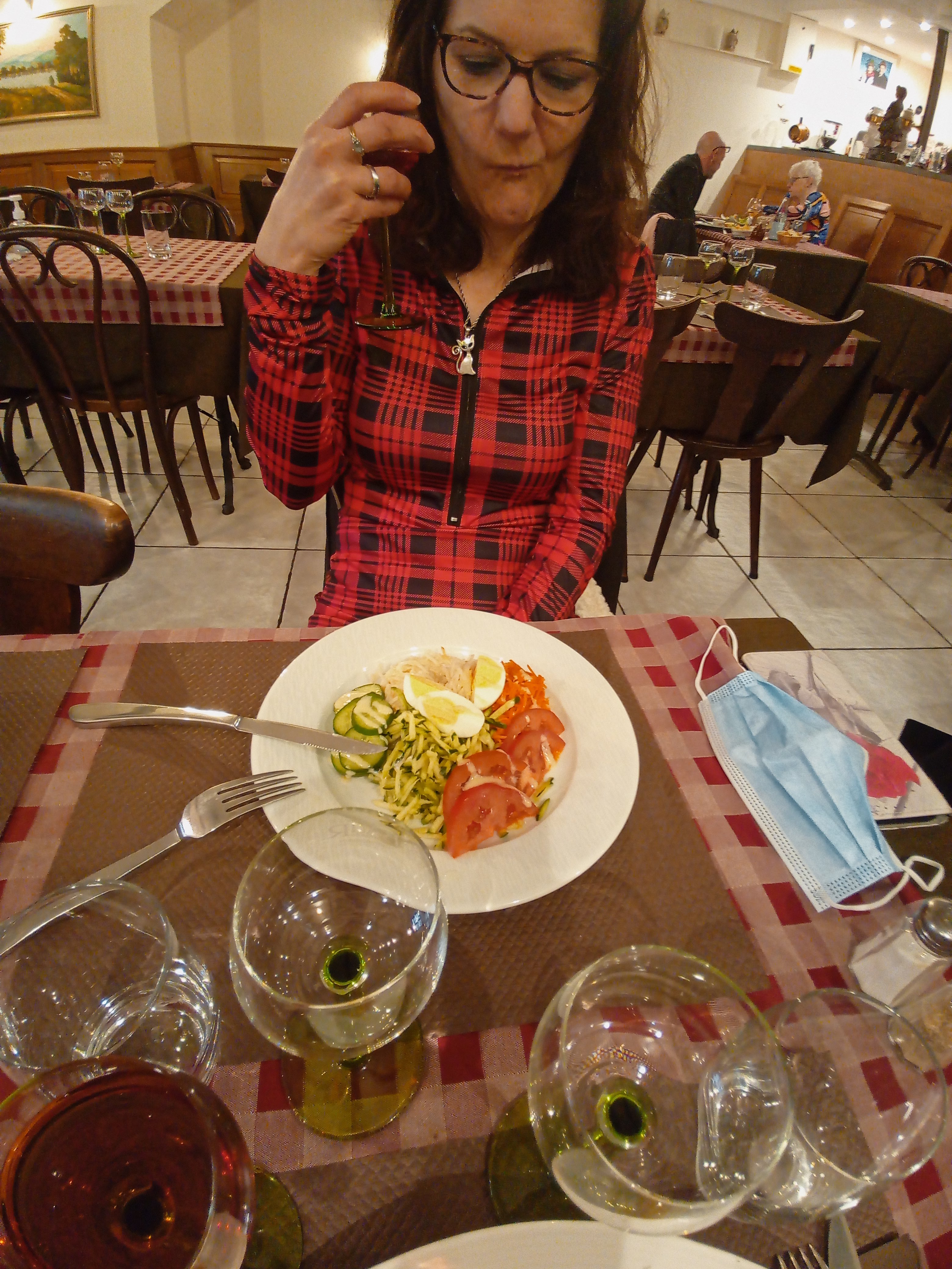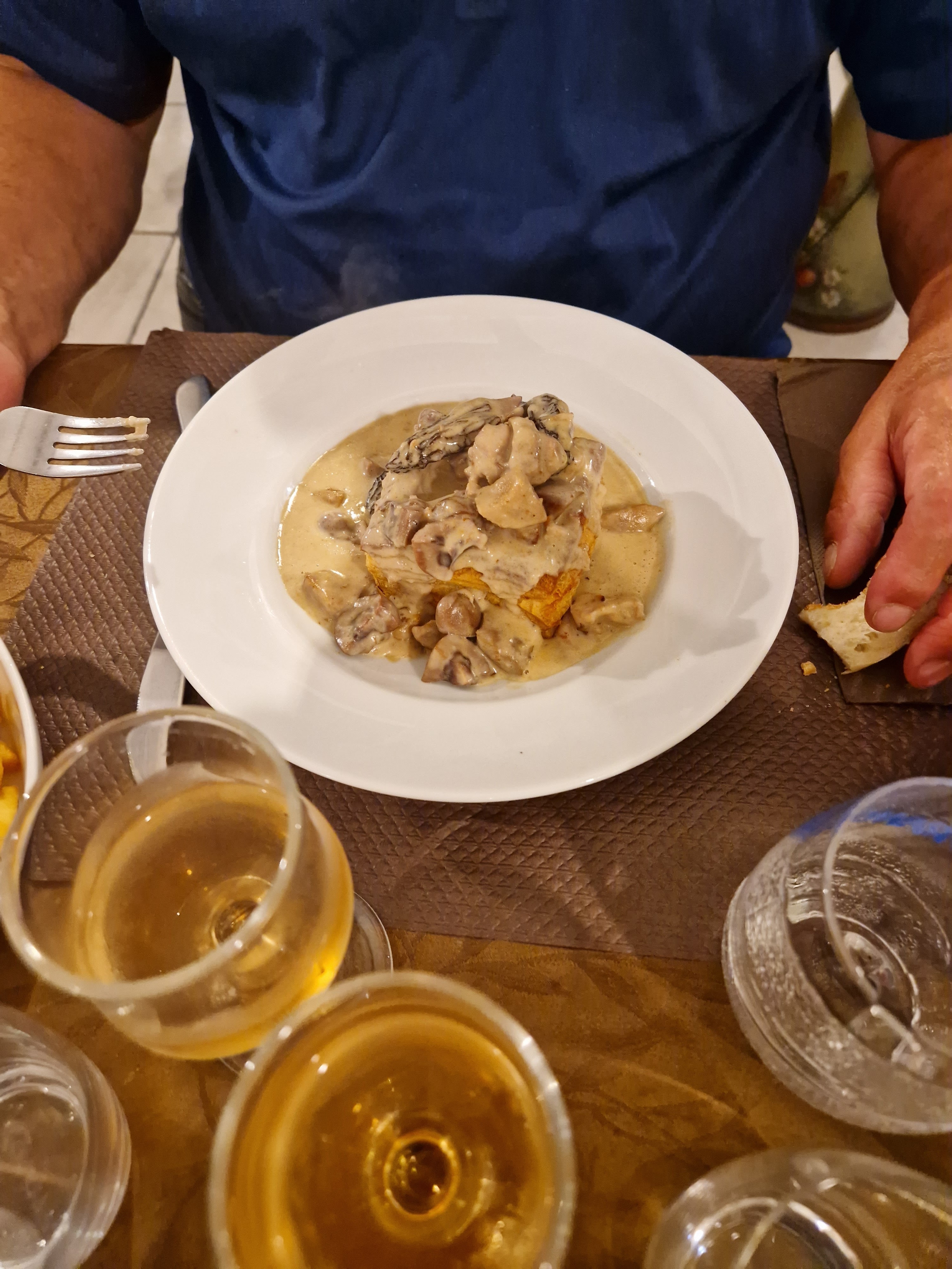 C est avec une playlist Nostagie que l'on sera accueilli..et c'est avec elle que l'on déjeunera ! 🤣 Je craque pour une choucroute..eh oui ..comme me le fait souligner mon camarade : c est chez maman les meilleures choucroute ! Il a raison. Mais la tentation était trop grande 😋 Je ne serais pas déçu...manque un peu de sel, mais ça, c est une histoire de goût !! Je vide le pot de moutarde...ainsi que délicieux pinot blanc..😎😊 Les franciscains peuvent retourner en pèlerinage !! 😉