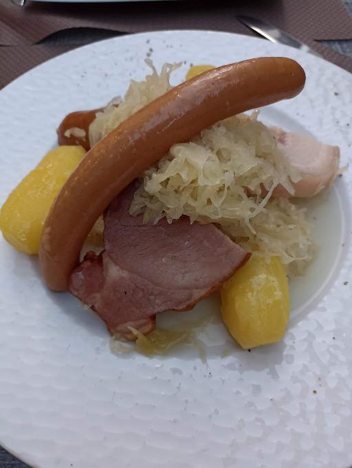Une très bonne choucroute alsacienne accompagné d'un bon vin blanc. Accueil très sympathique. Je recommande ++!!