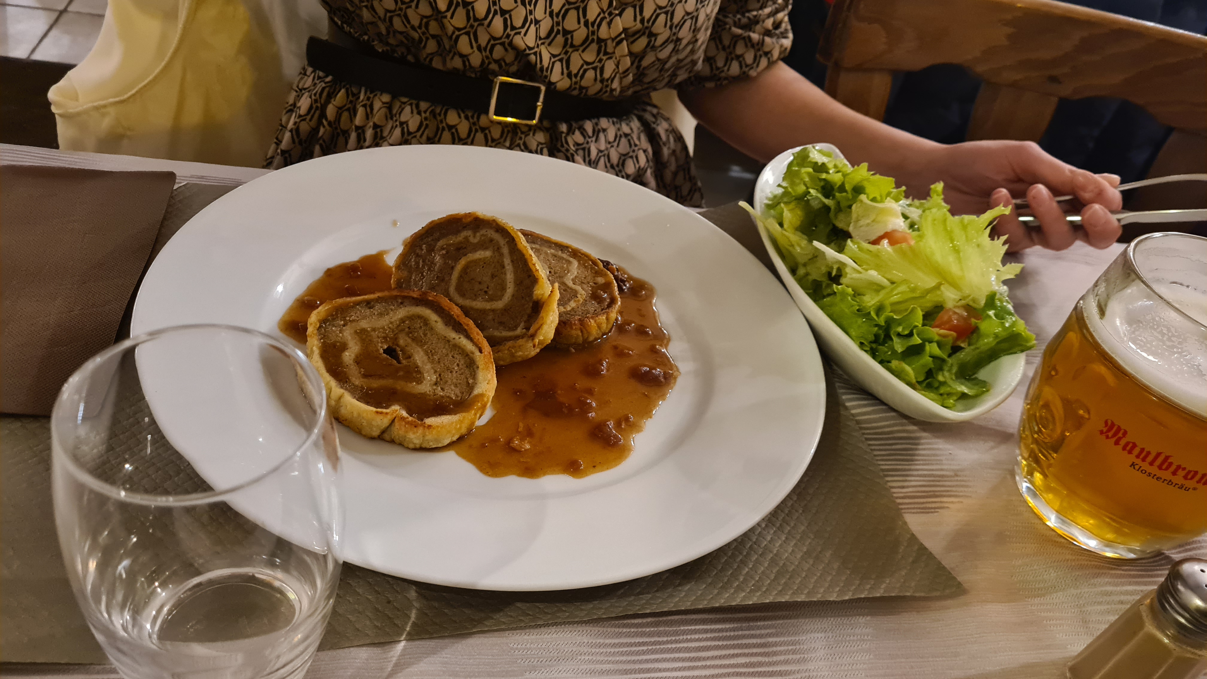 Service excellent, qualité des produits excellents. Nous nous sommes régalés !! Mon compagnon a mangé un cordon bleu de veau avec jambon forêt noire et sauce au munster, accompagné de pâtes alsaciennes (spaetzle). Très bon !! J’ai prit pour ma part un gratin de munster, c’était exquis !! Un vrai délice ! Nous recommandons, très bonne adresse ! Photos ci-joint. Qualité/prix parfait.