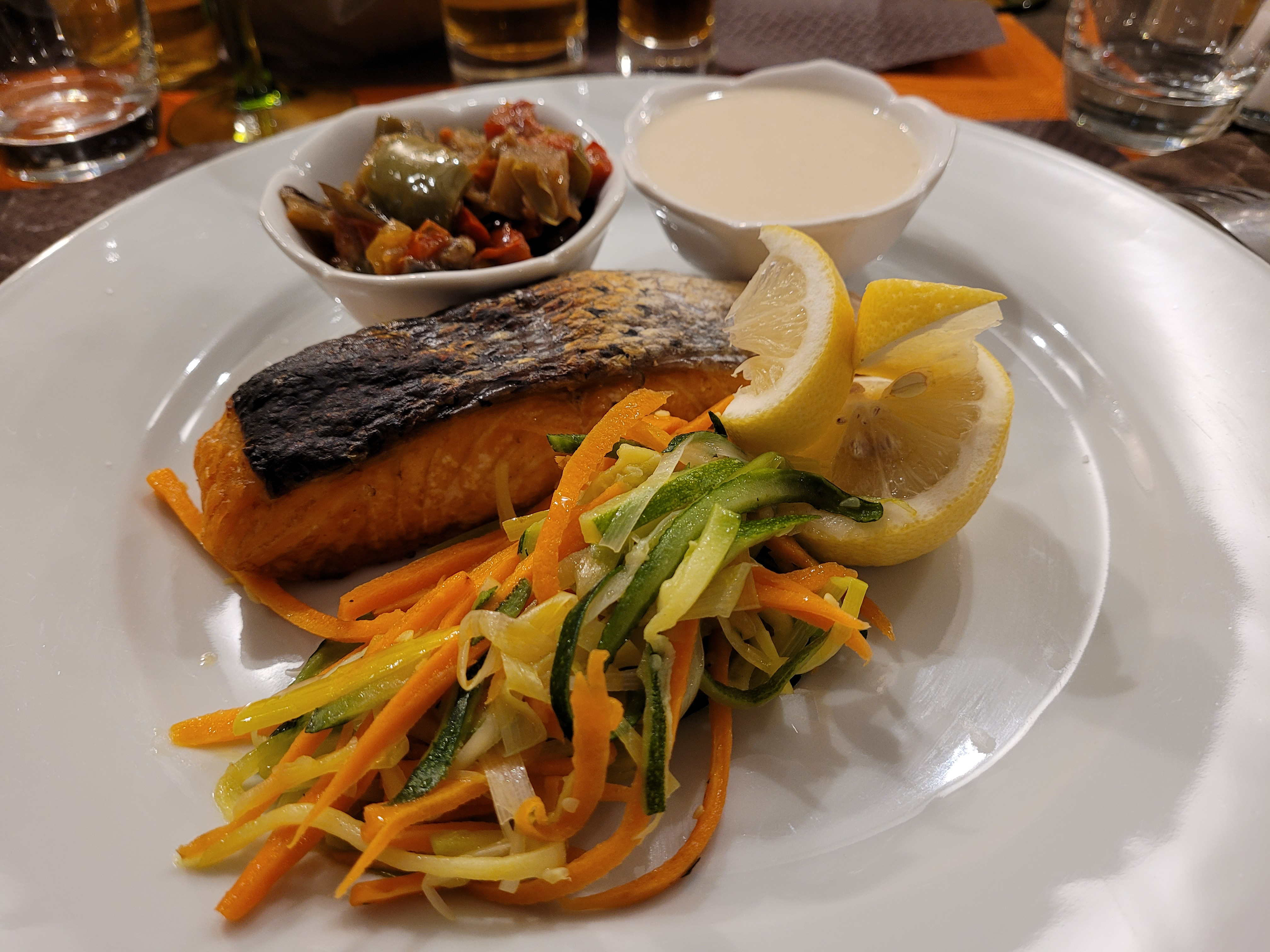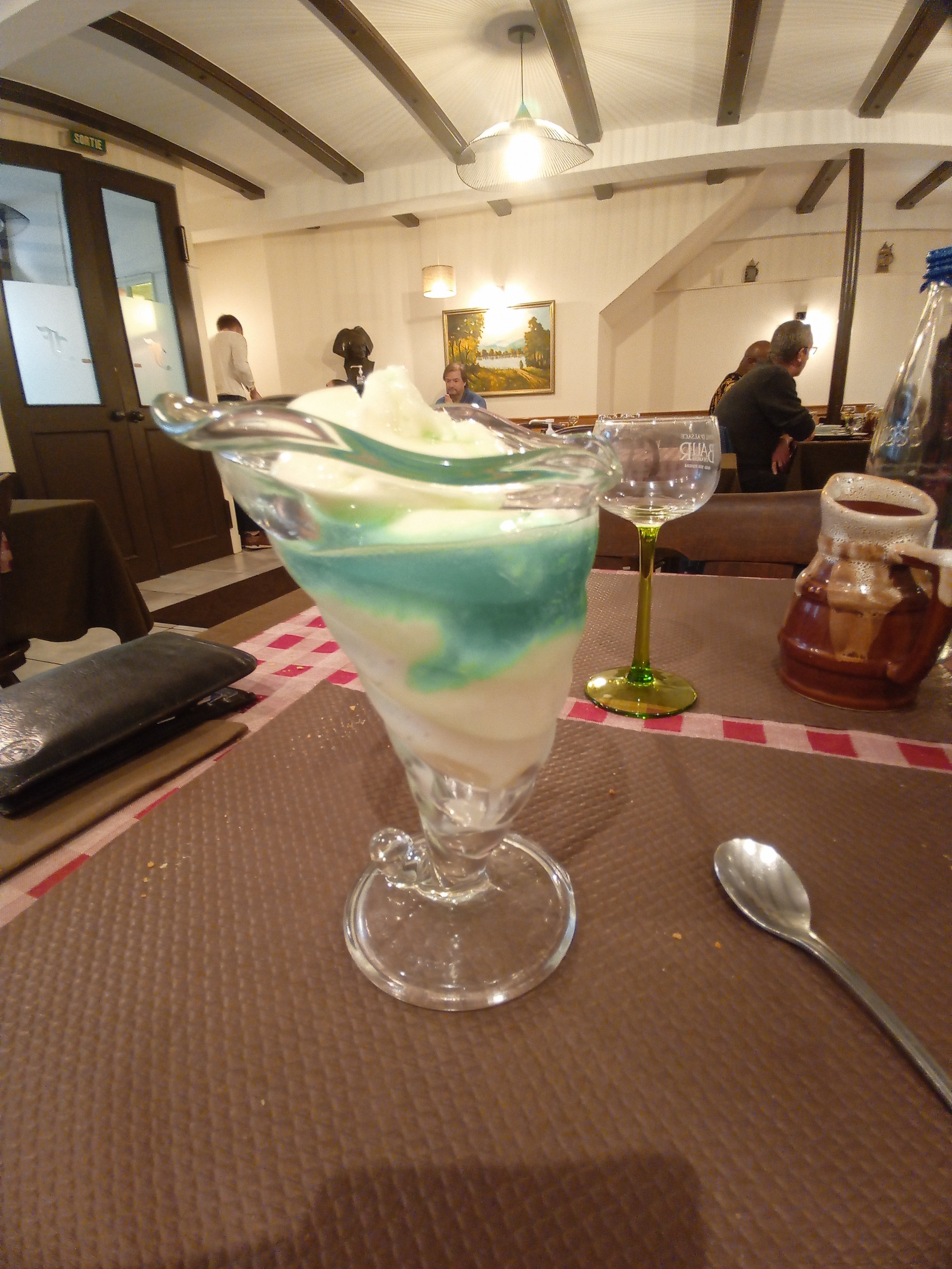 Nous avons mangé une choucroute, elle aurait pu être plus digeste, côté viande, rien de spécial à mentionner (plutôt bon et en suffisance). Service un peu lent mais il y avait énormément de monde, on peut donc comprendre 😉