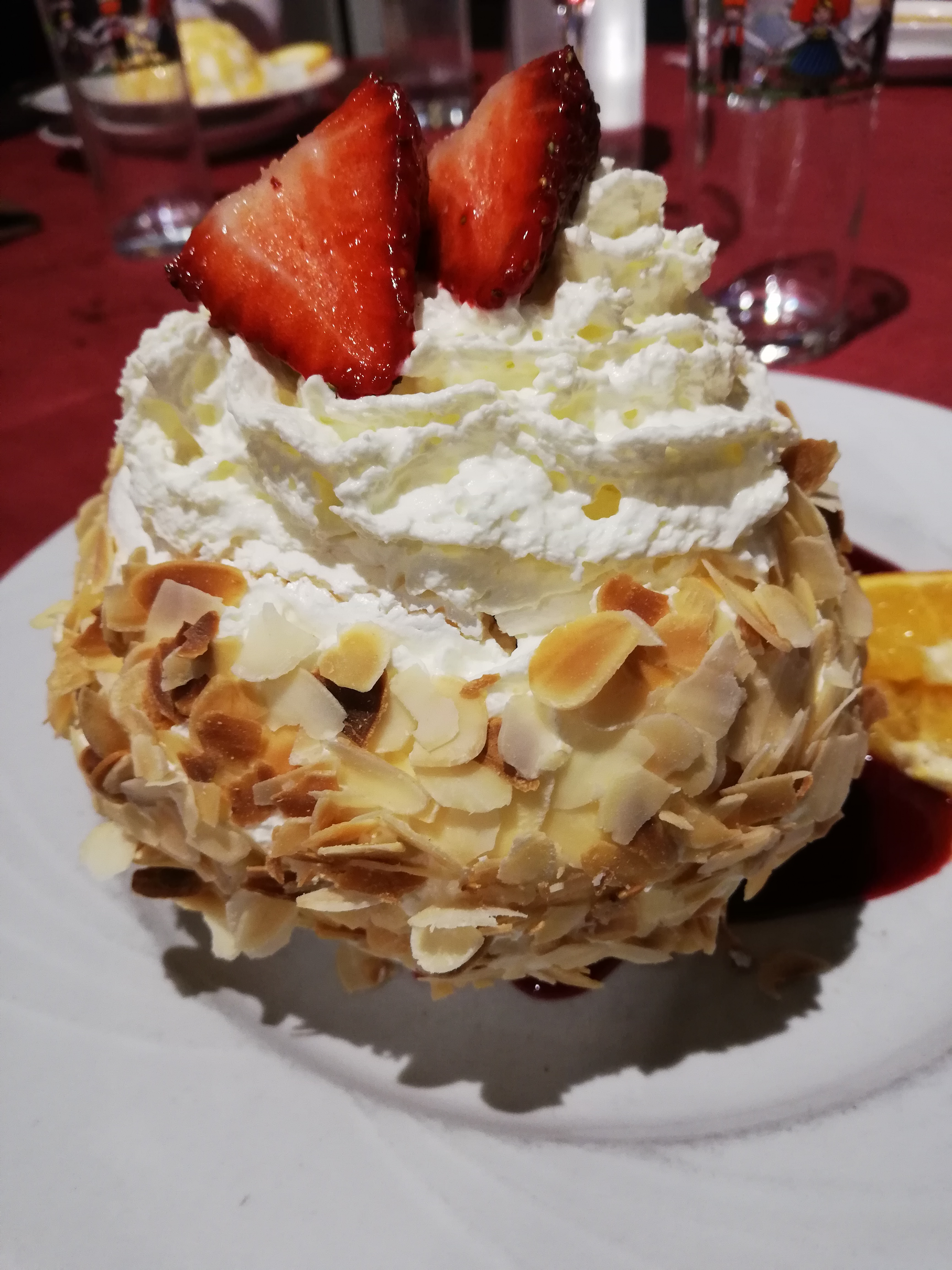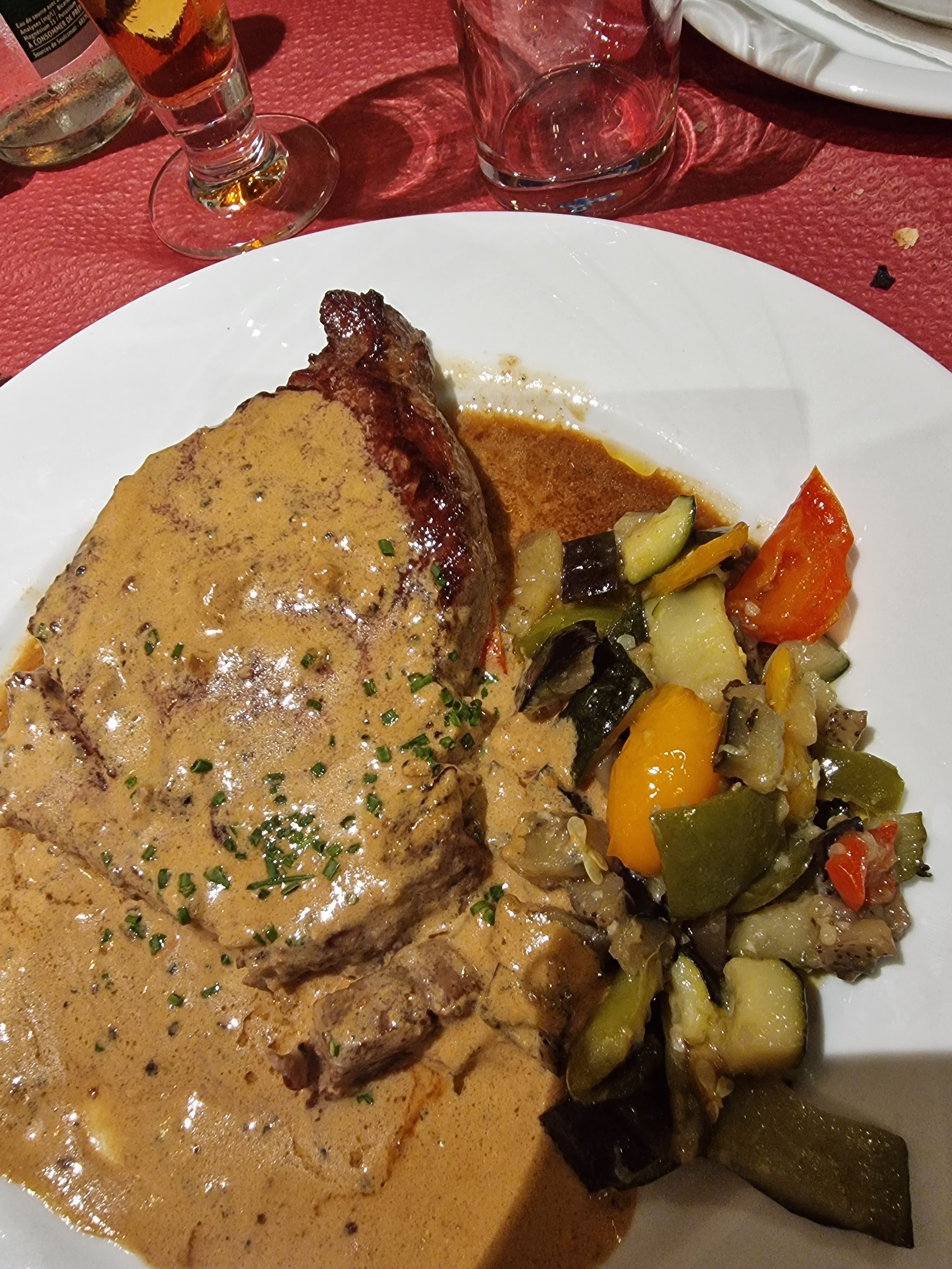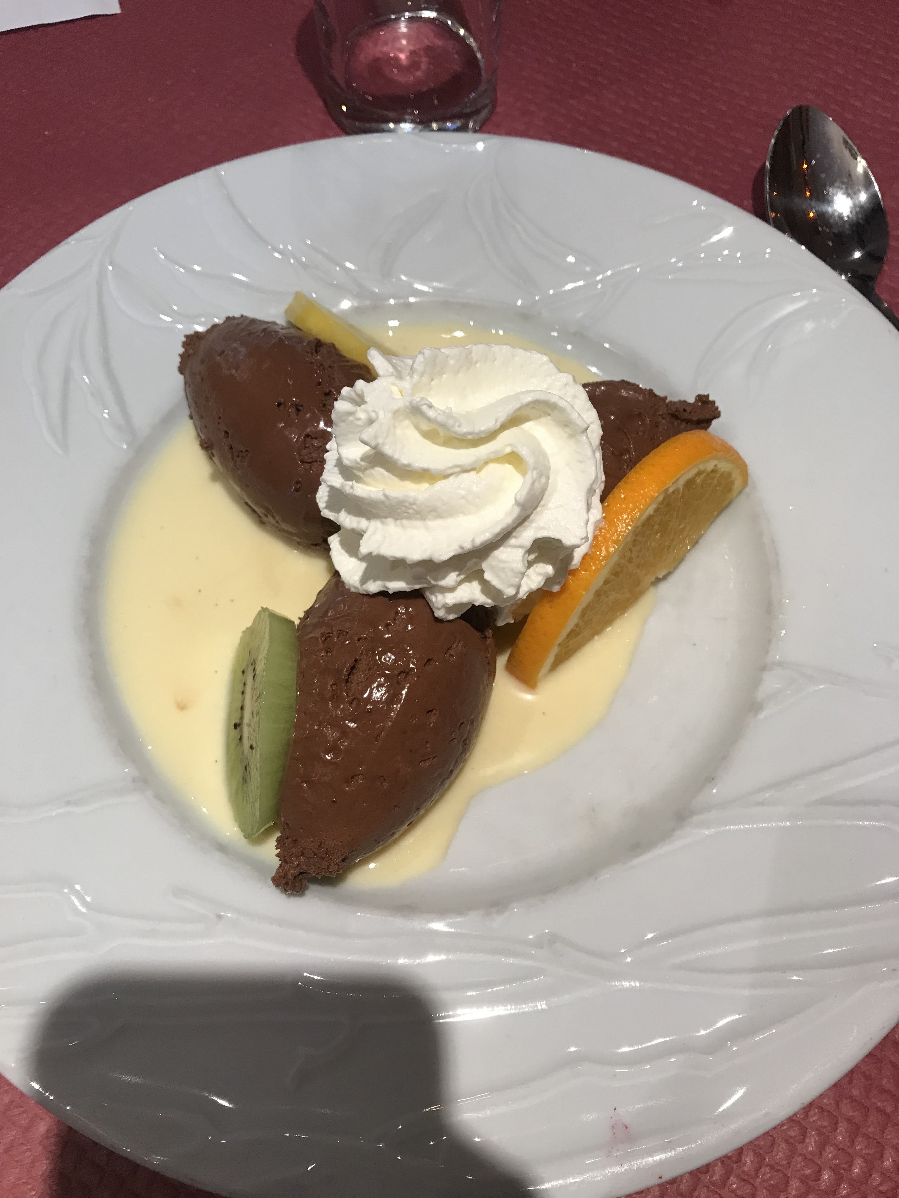 Nous étions un groupe, choix du voyagiste je pense mais la bouchée à la reine était bonne et bien servie. Vacherin glacé en dessert.