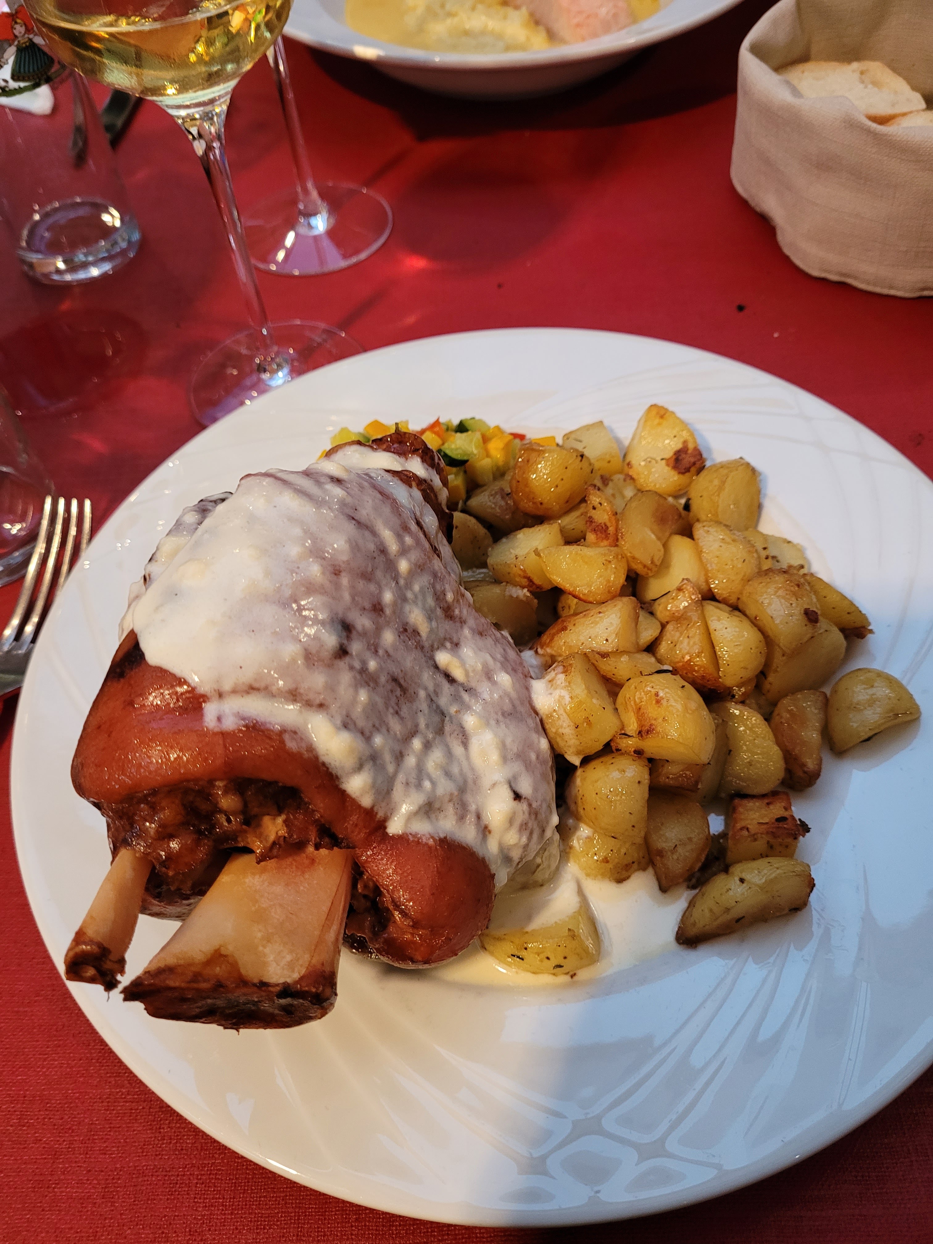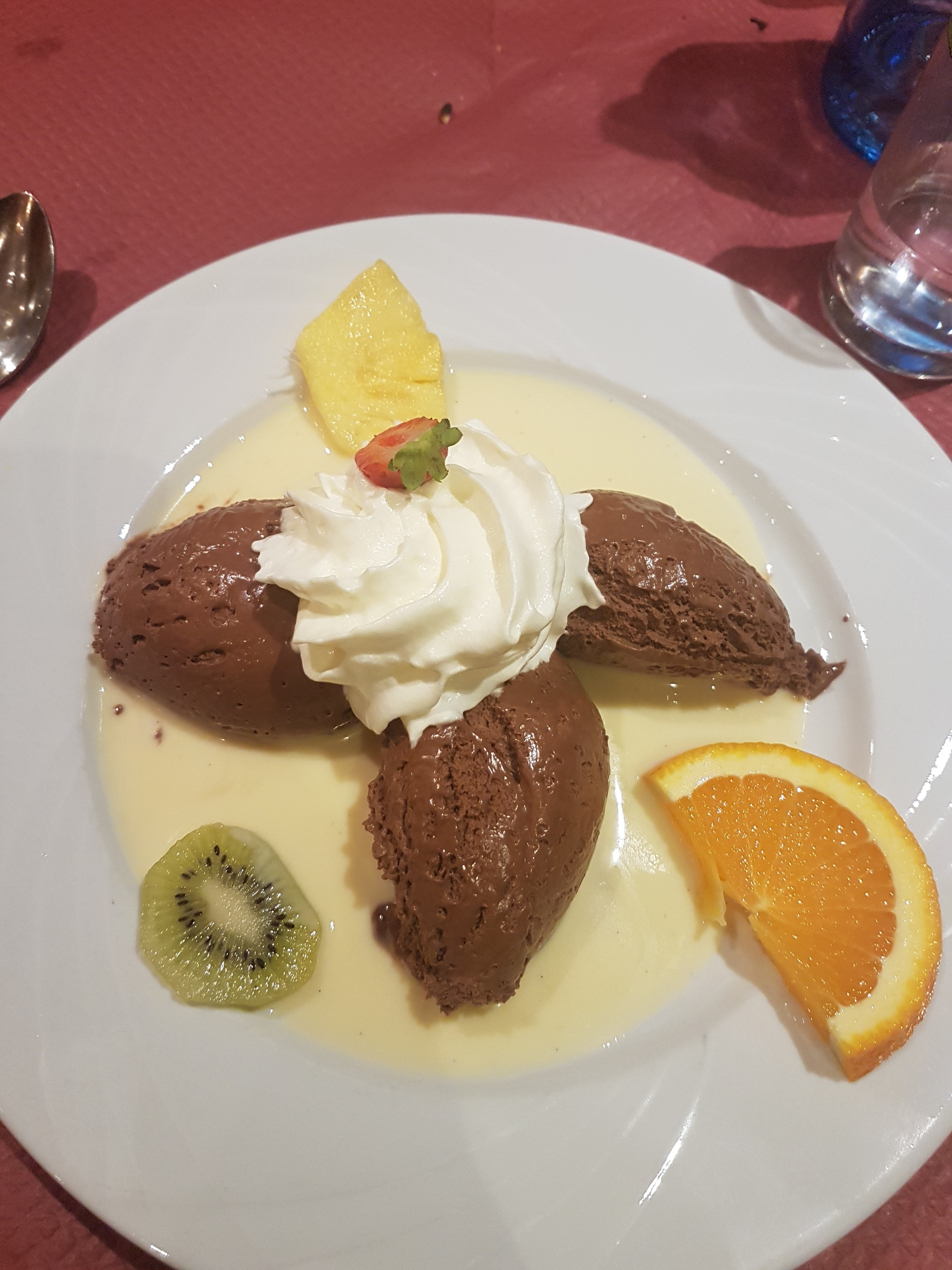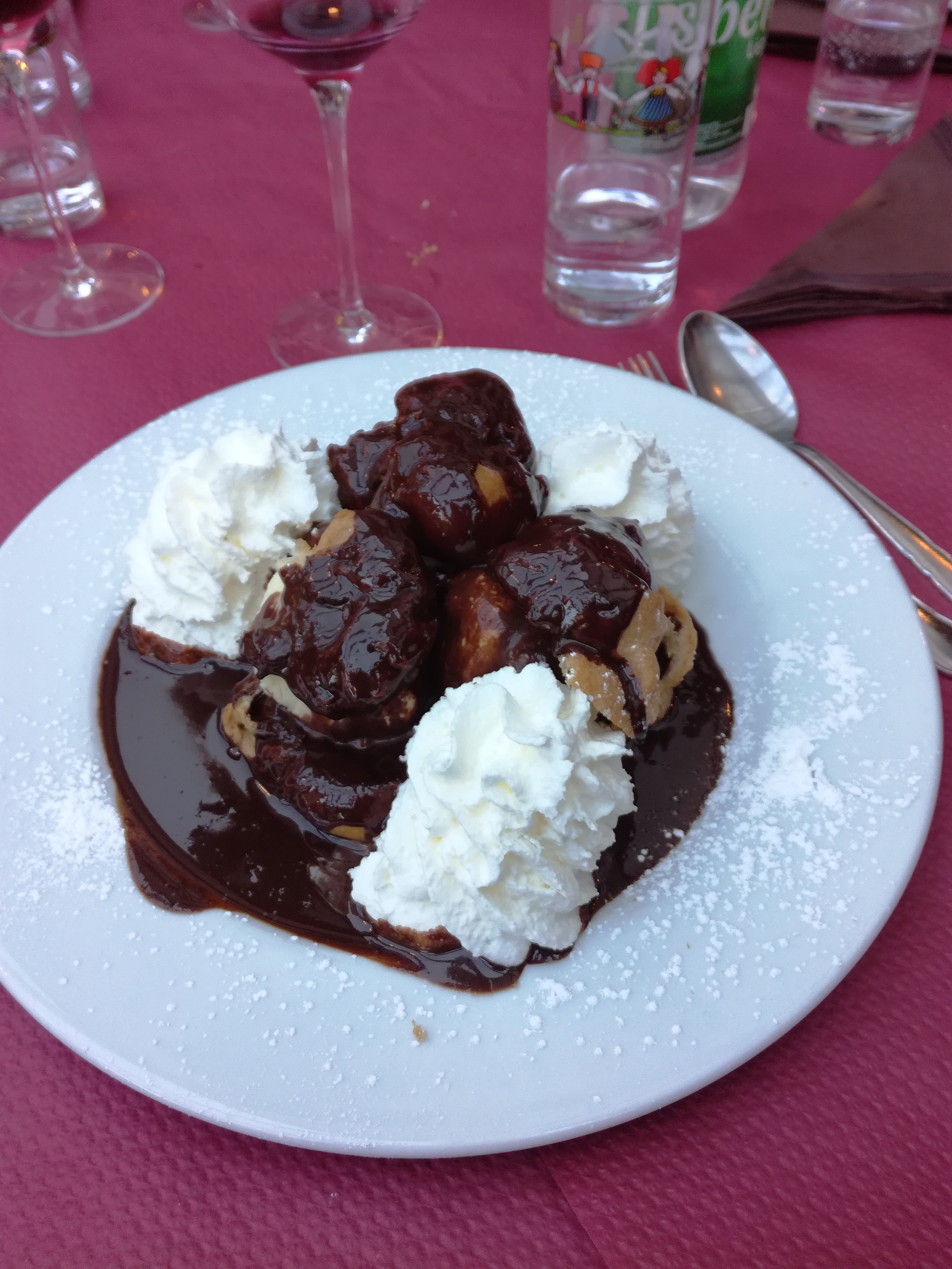 Nous étions un groupe, choix du voyagiste je pense mais la bouchée à la reine était bonne et bien servie. Vacherin glacé en dessert.