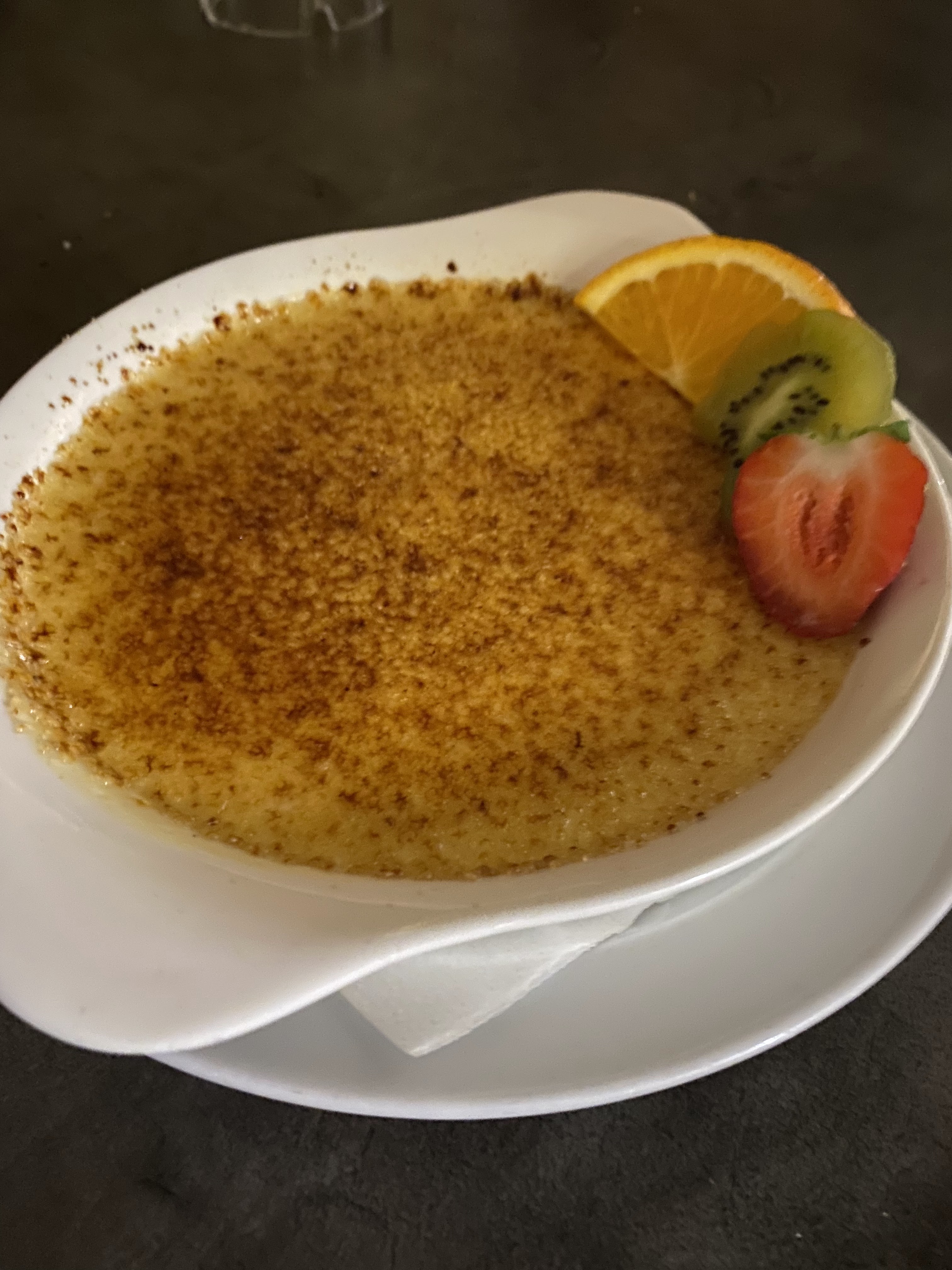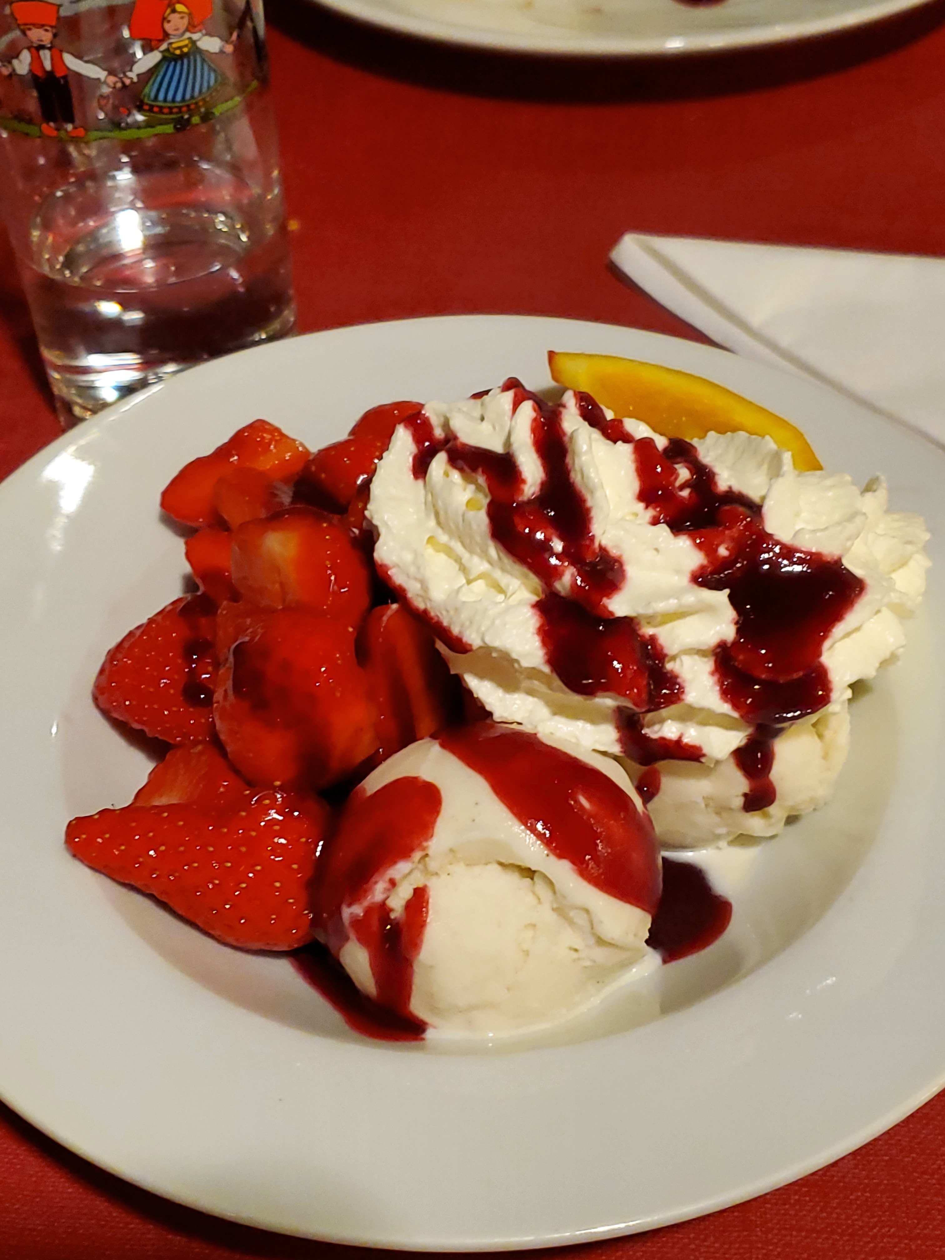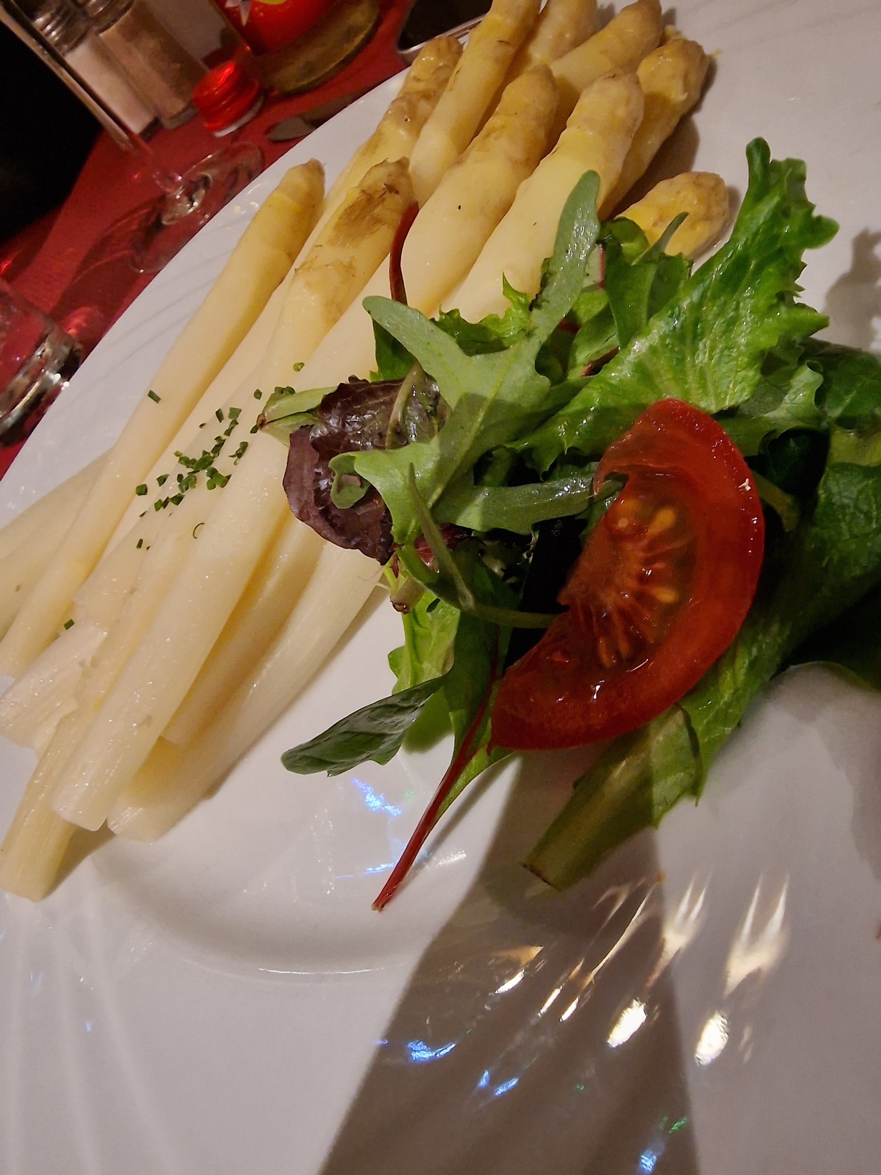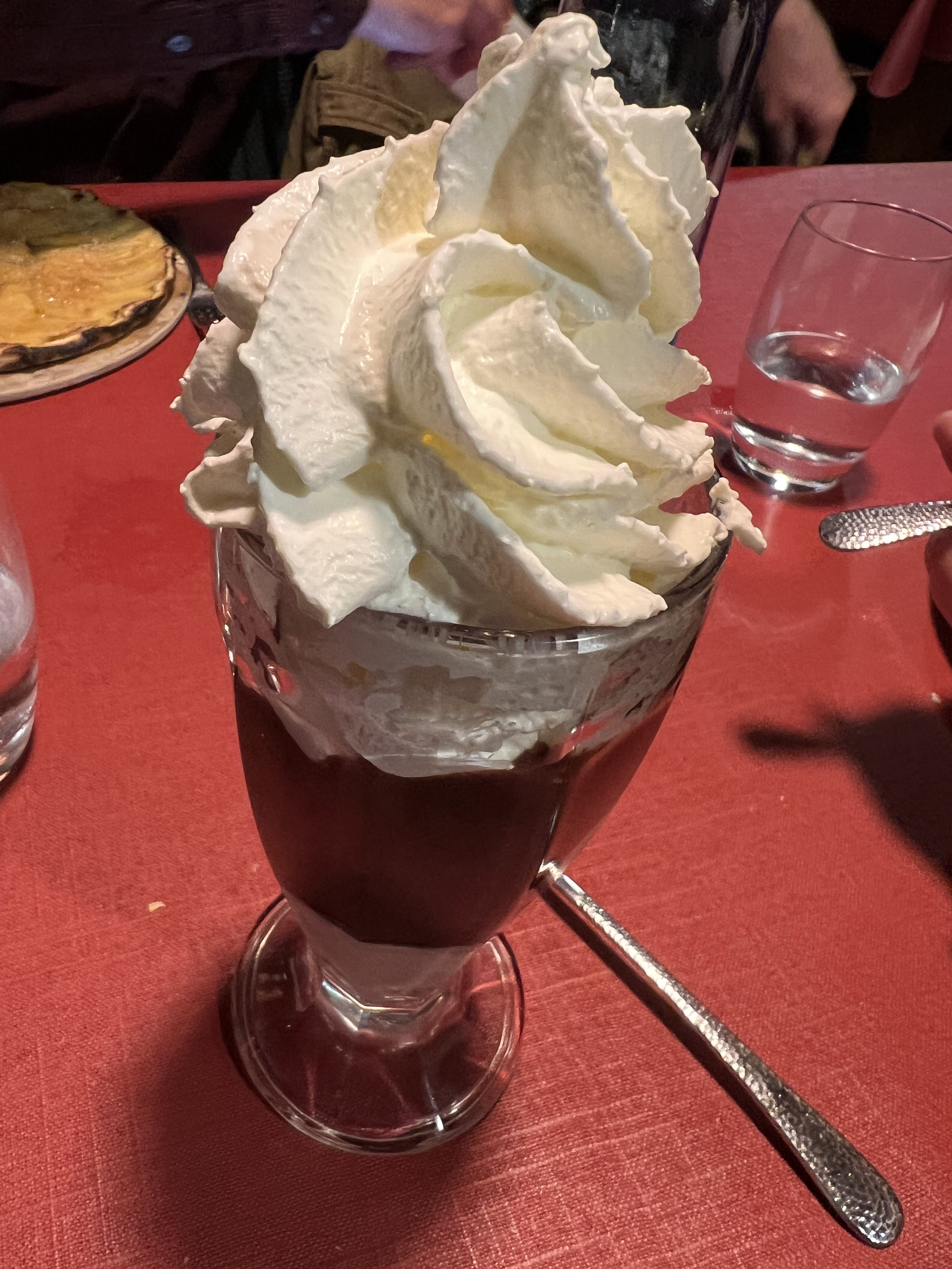 Bel accueil à l'arrivée alors que nous n'avions pas réservé de table. Les quenelles de foie étaient bonnes. Quantité limitée (l'astuce, elles étaient coupées en lamelles) La crème était un peu liquide et peu crémeuse. Belle tranche de jambon pour le menu enfant.