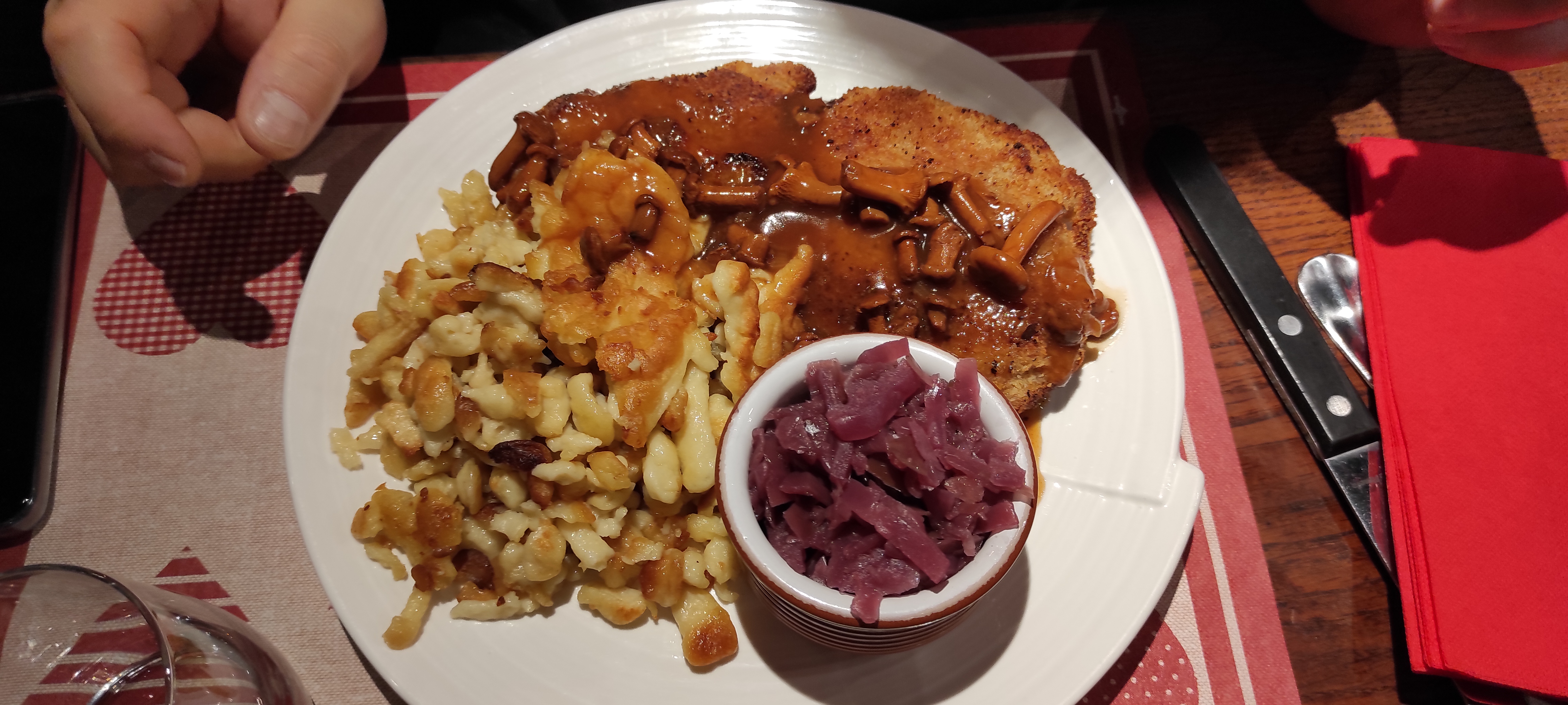 Première fois dans cet établissement. Nous étions une table de neuf et je dois dire que le restaurant était très fréquenté lors de notre passage. Un service avec du personnel très agréable, souriant et avec un temps d'attente assez court. Nos repas étaient variés et servis très copieusement sauf une spécialité (rognons avec Spätzle) qui étaient décevante au niveau gustatif et quantitatif. Tous les autres plats (tarte flambée, poisson risotto, joue de porc, et...) était irréprochables. Je recommande ce restaurant.