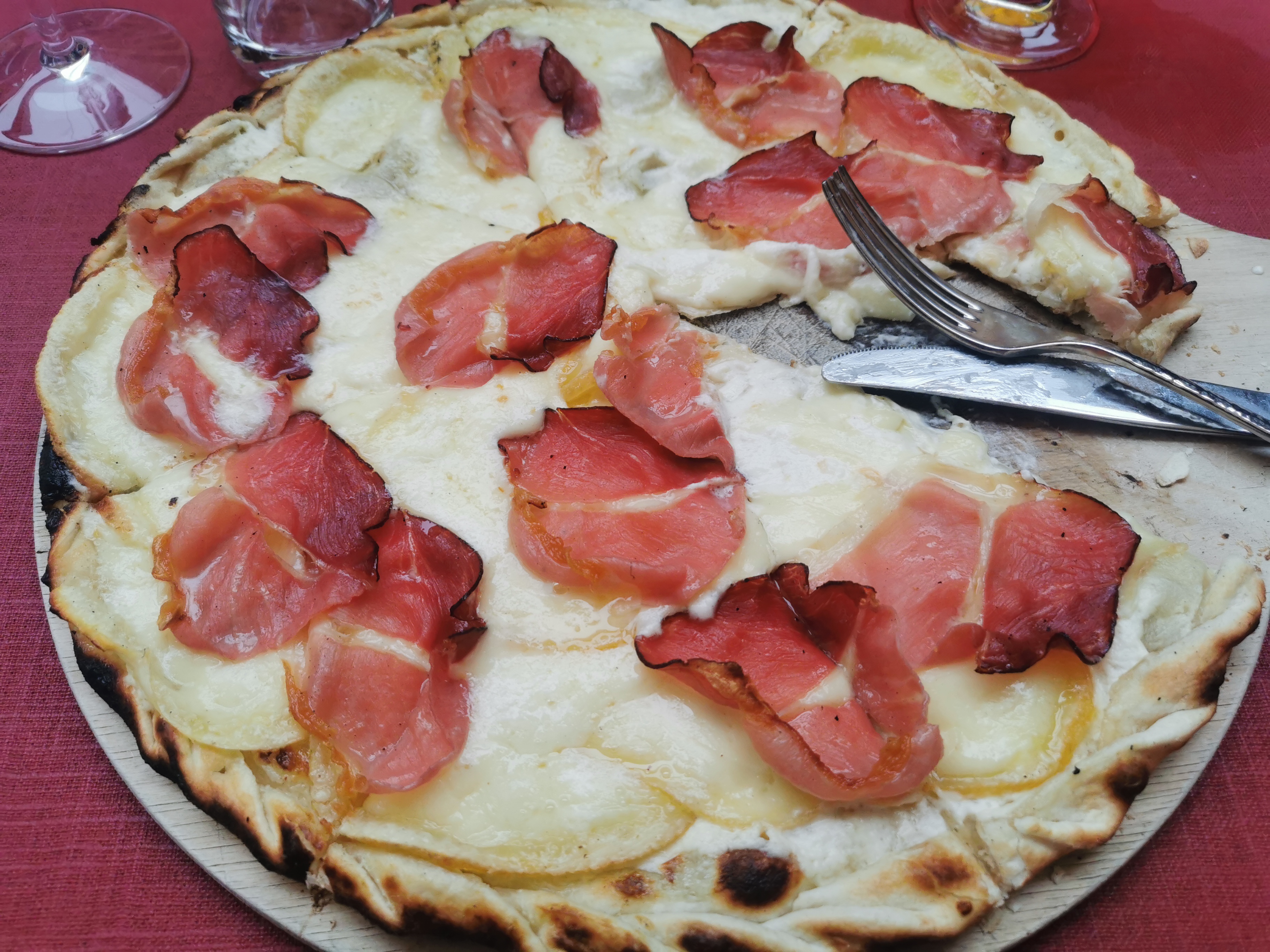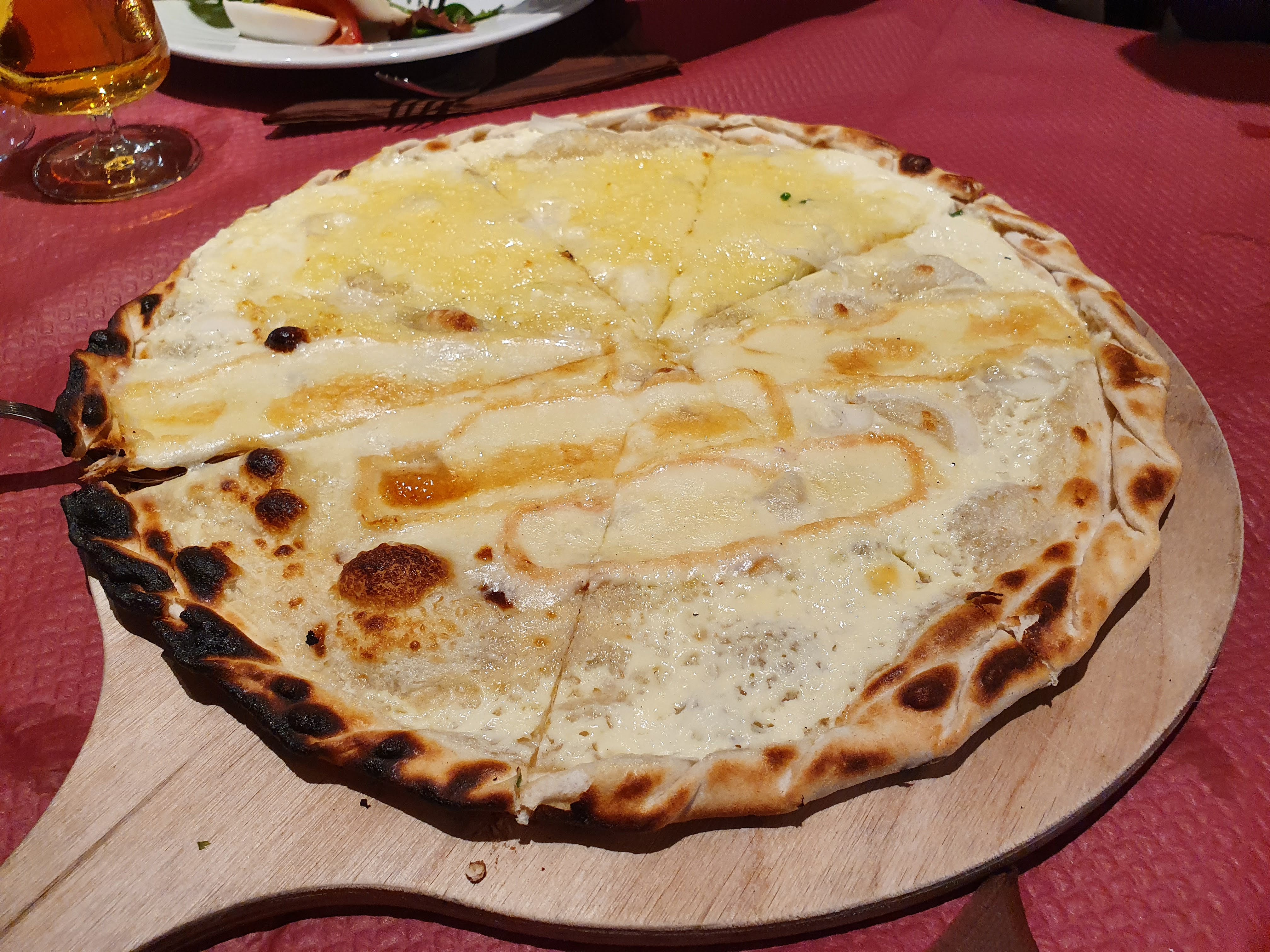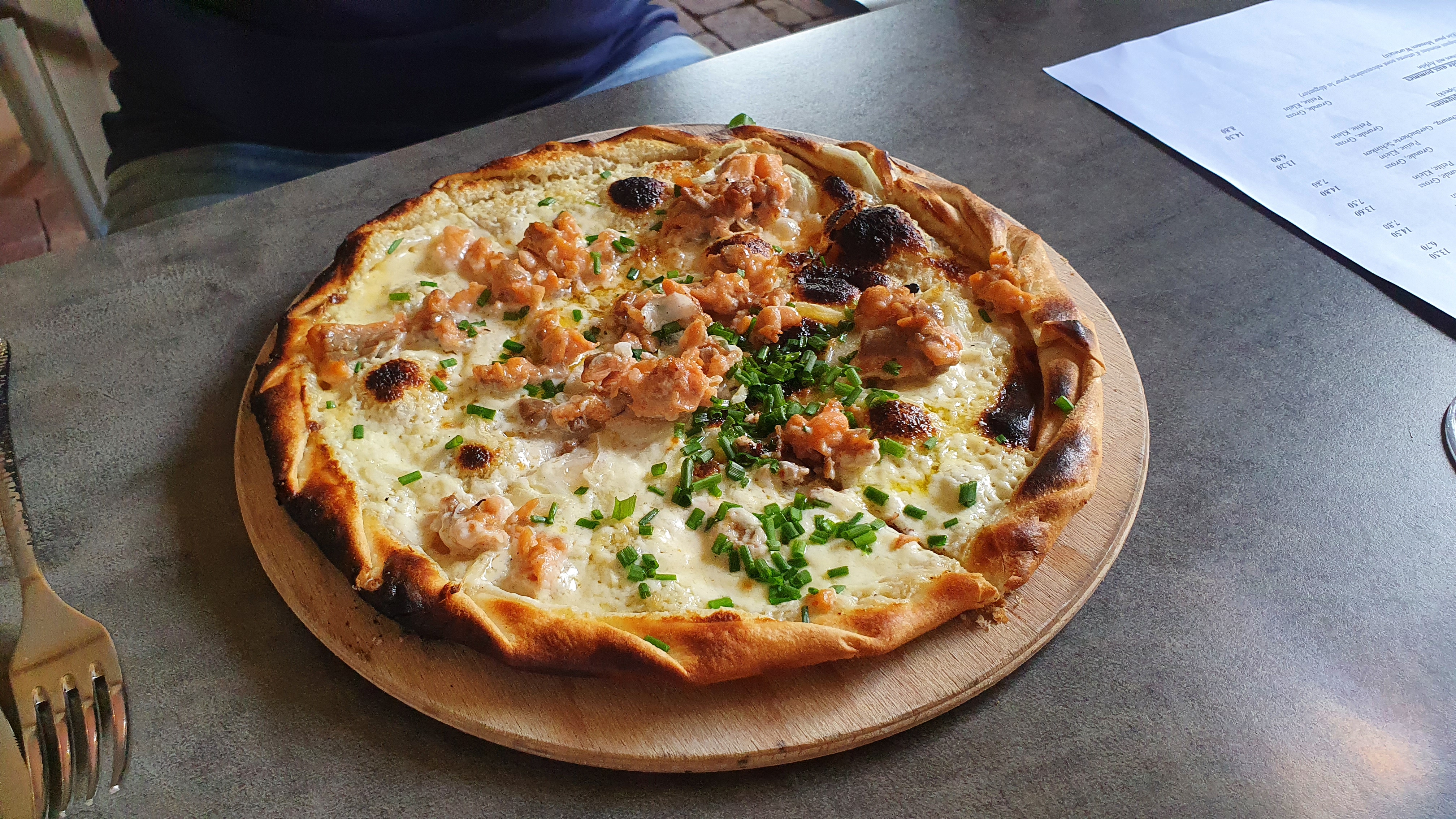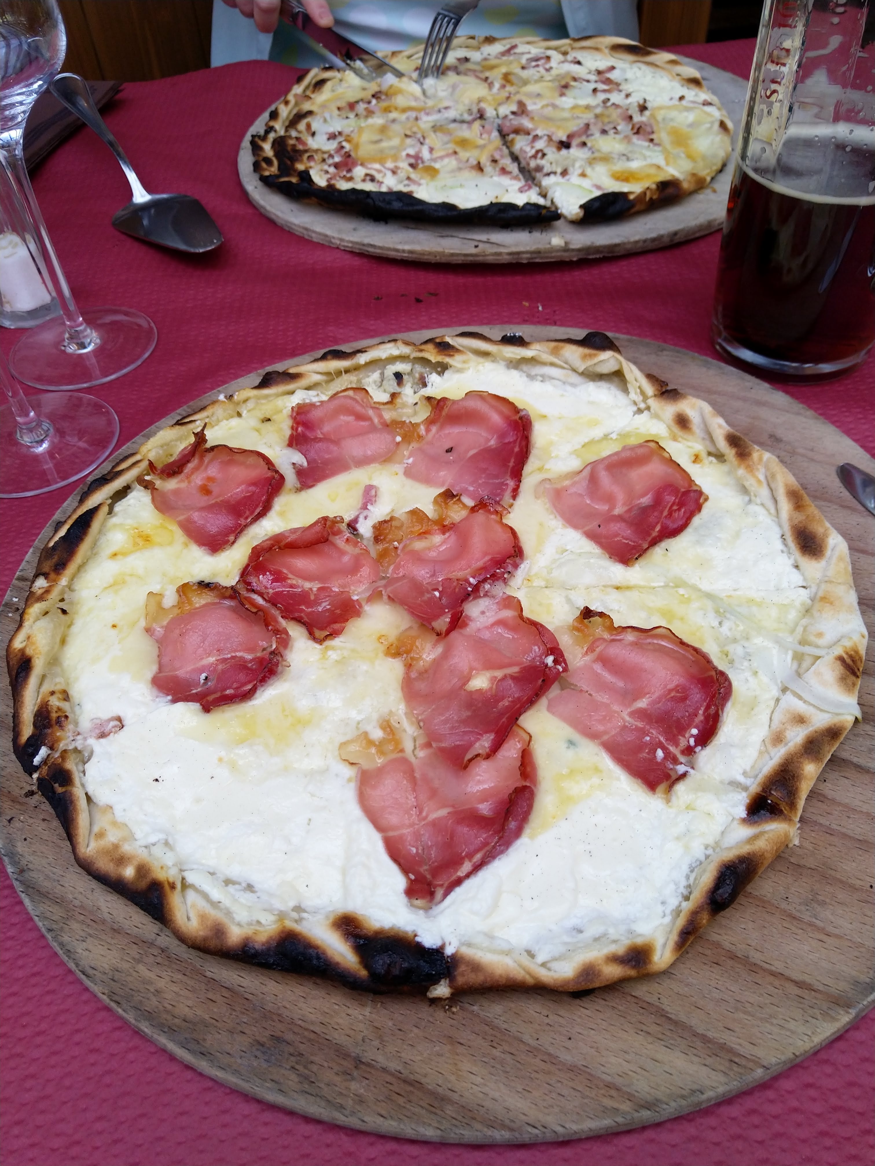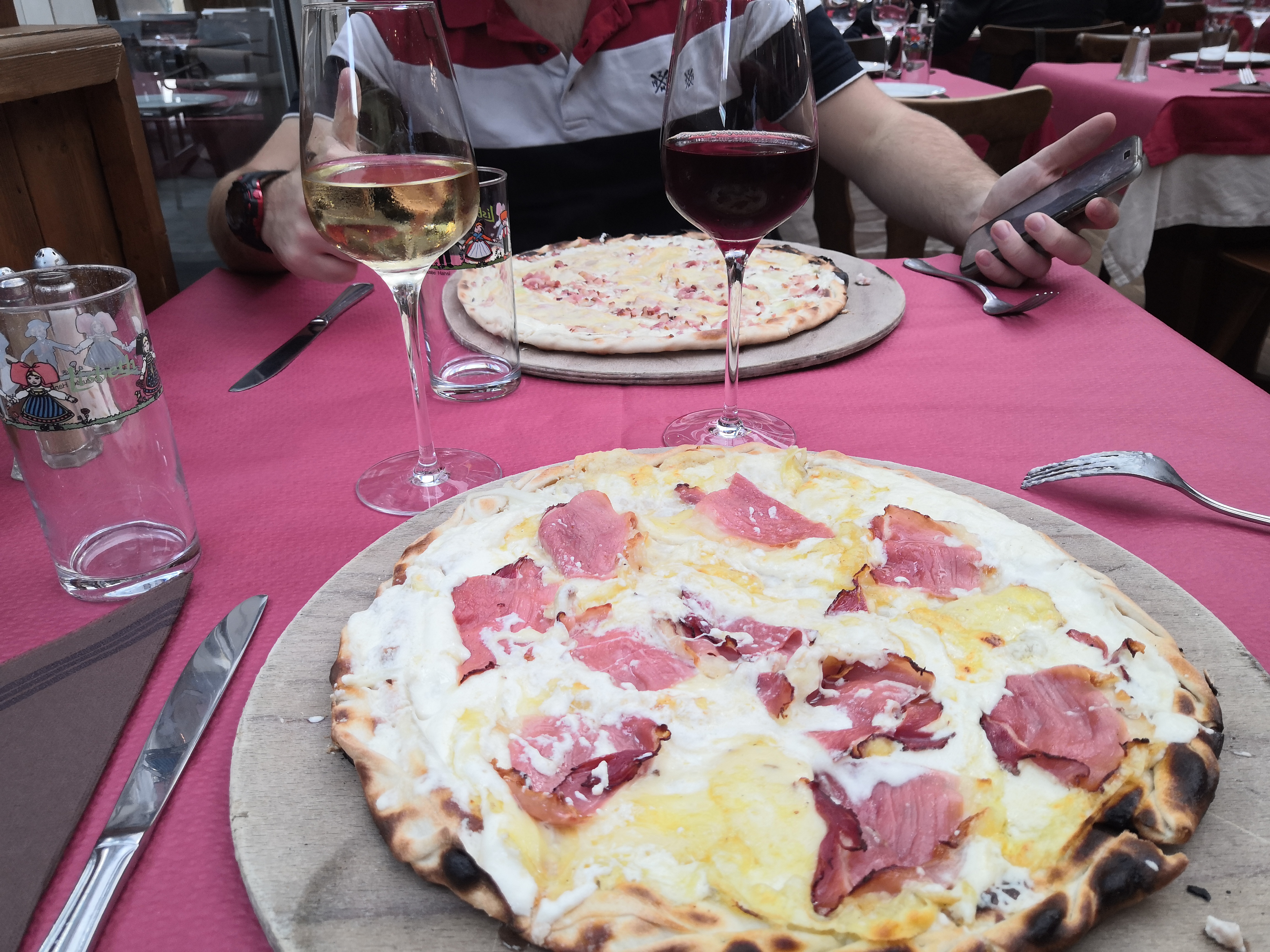 Je me suis régalée avec la tarte flambée à la tomme et au jambon cru. Je recommande!