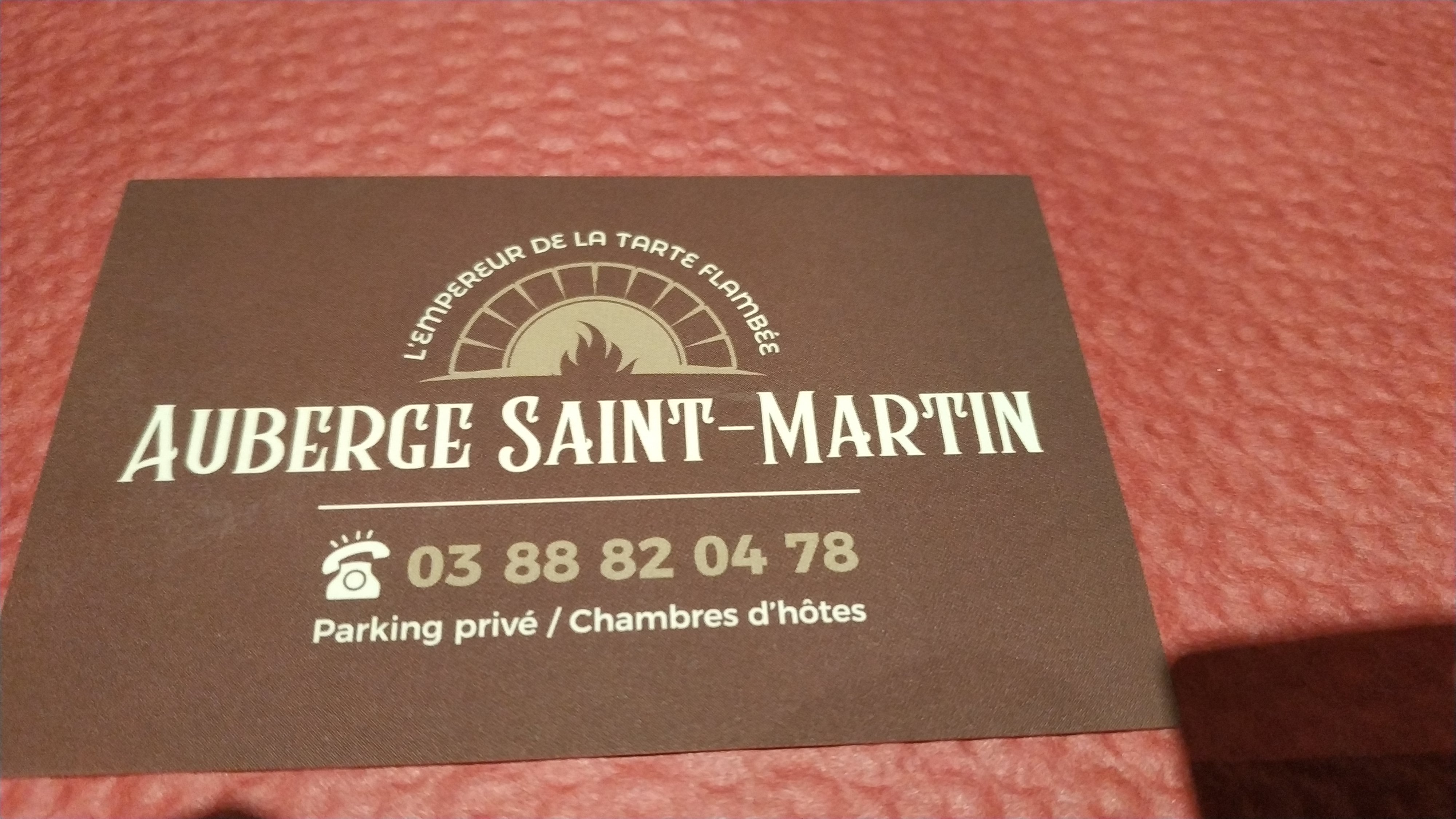Chacun a son restaurant de proximité qu'il adore, nous c est l'auberge saint martin et ses excellentes tartes flambées sur place ou à emporter.