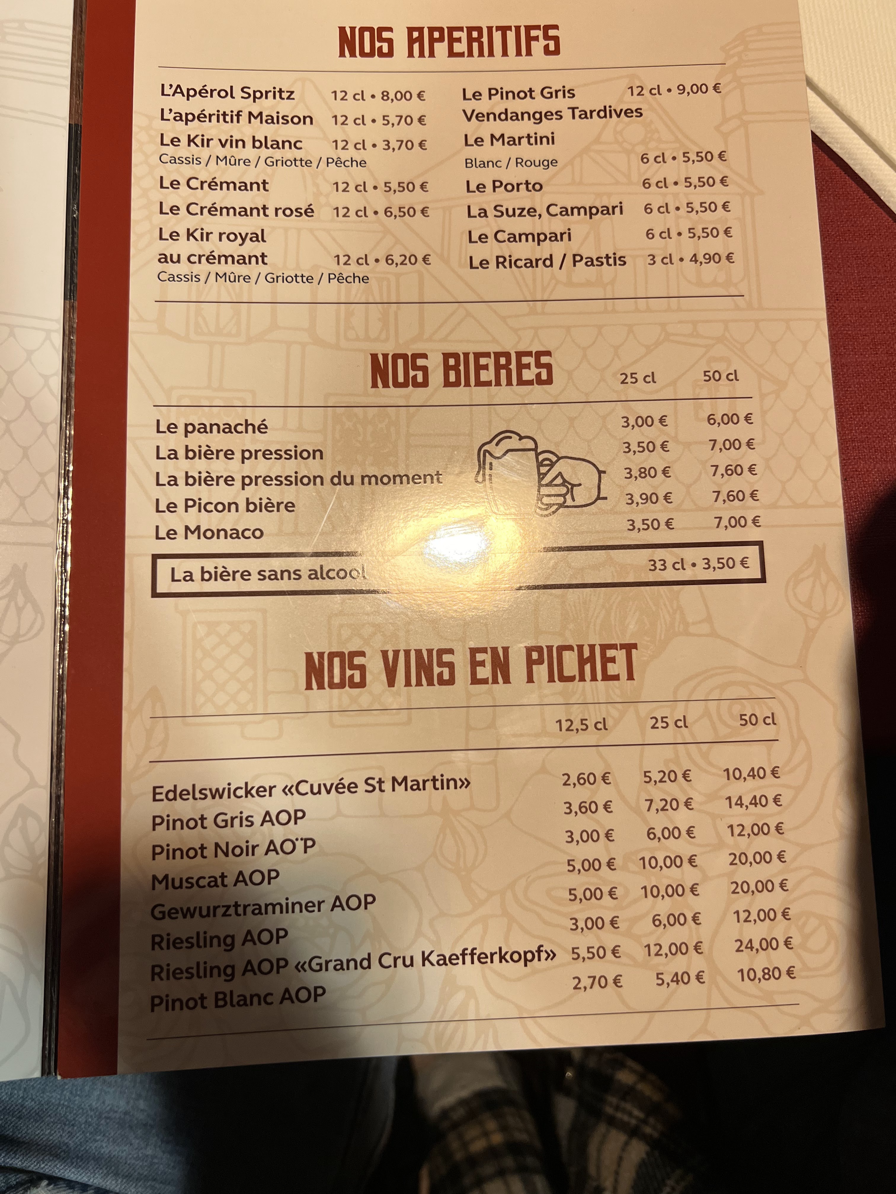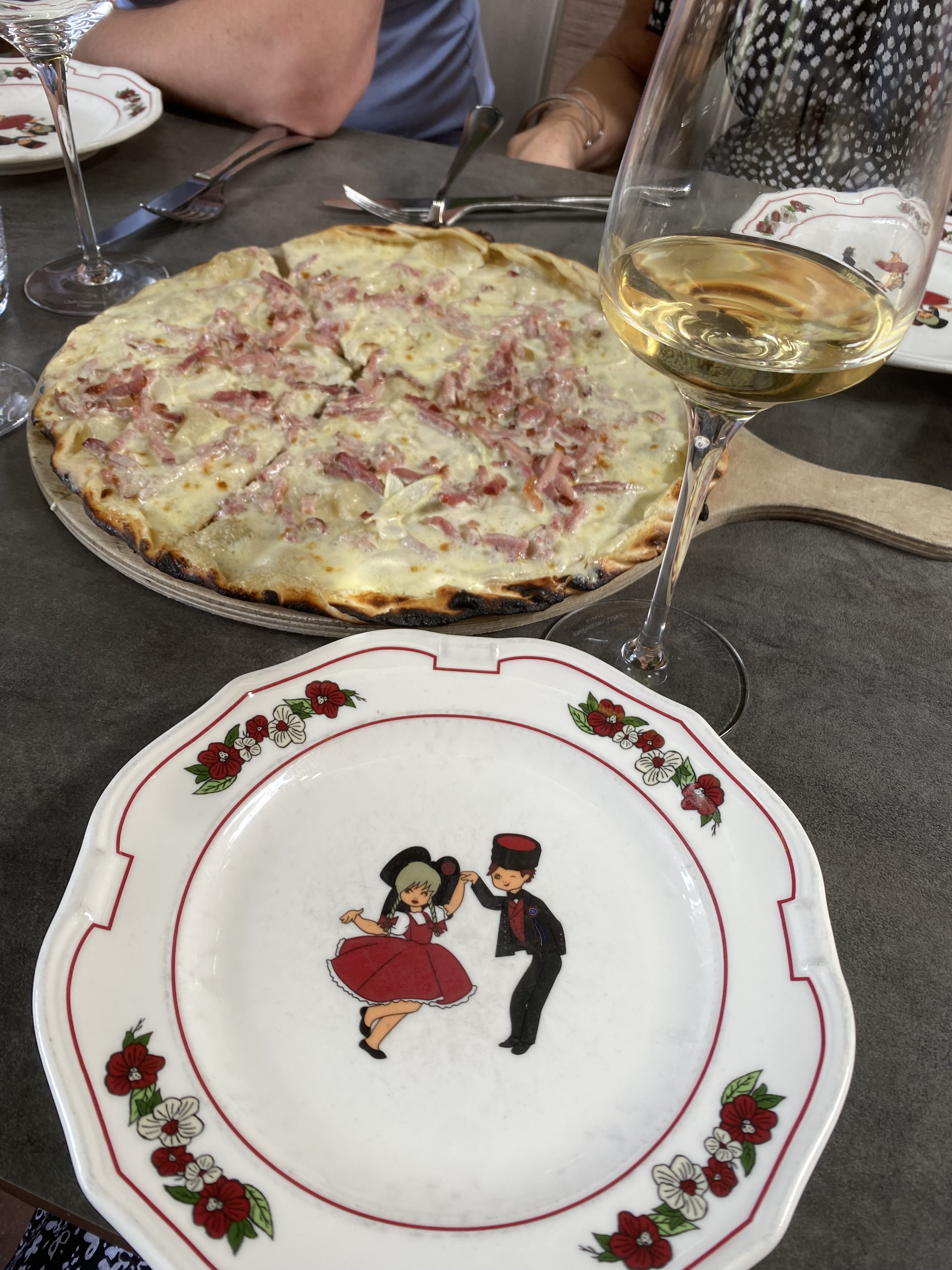Une excellente soirée. Le patron est aux petits soins et les employés très sympas et bien à l'écoute. Les flamenkuches sont vraiment très bonnes et très copieuses, une aubaine pour nous qui voyageons à vélo et dépendons beaucoup d'énergie. Juste pour les desserts on refait 90km à vélo ...