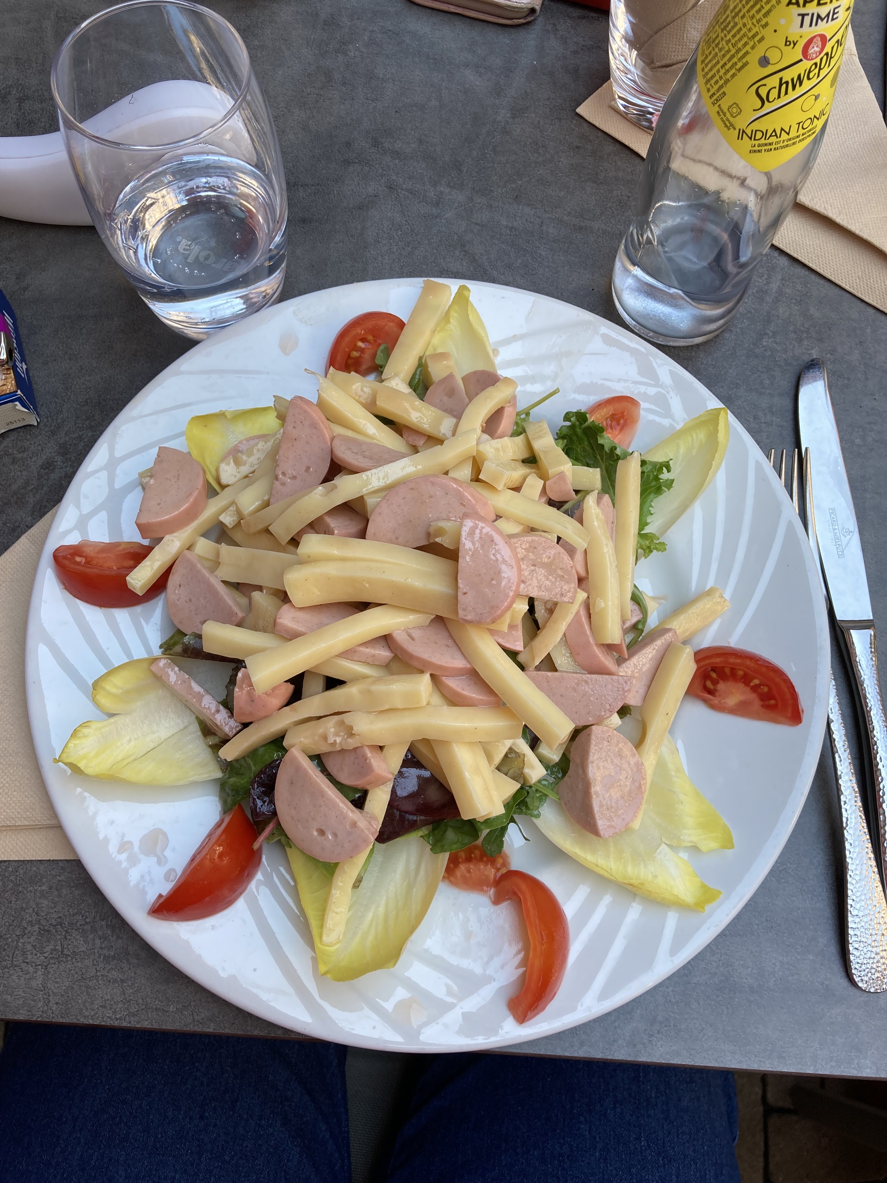 Très bonnes tartes flambées 👍 Mais une salade verte soit disant composée avec juste 3 bouts de tomates et 2 rondelles de concombre pour 7€... 😡 De qui se moque t-on ?