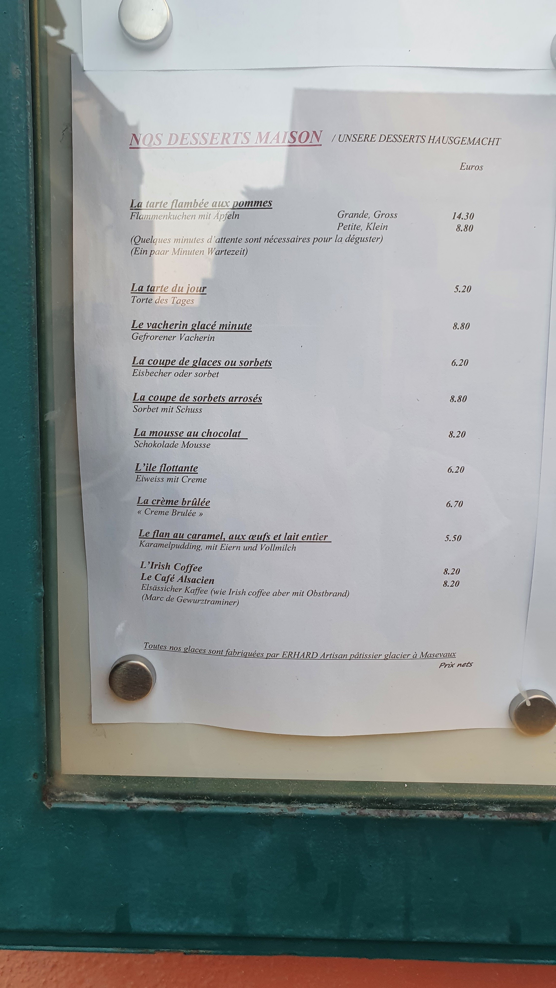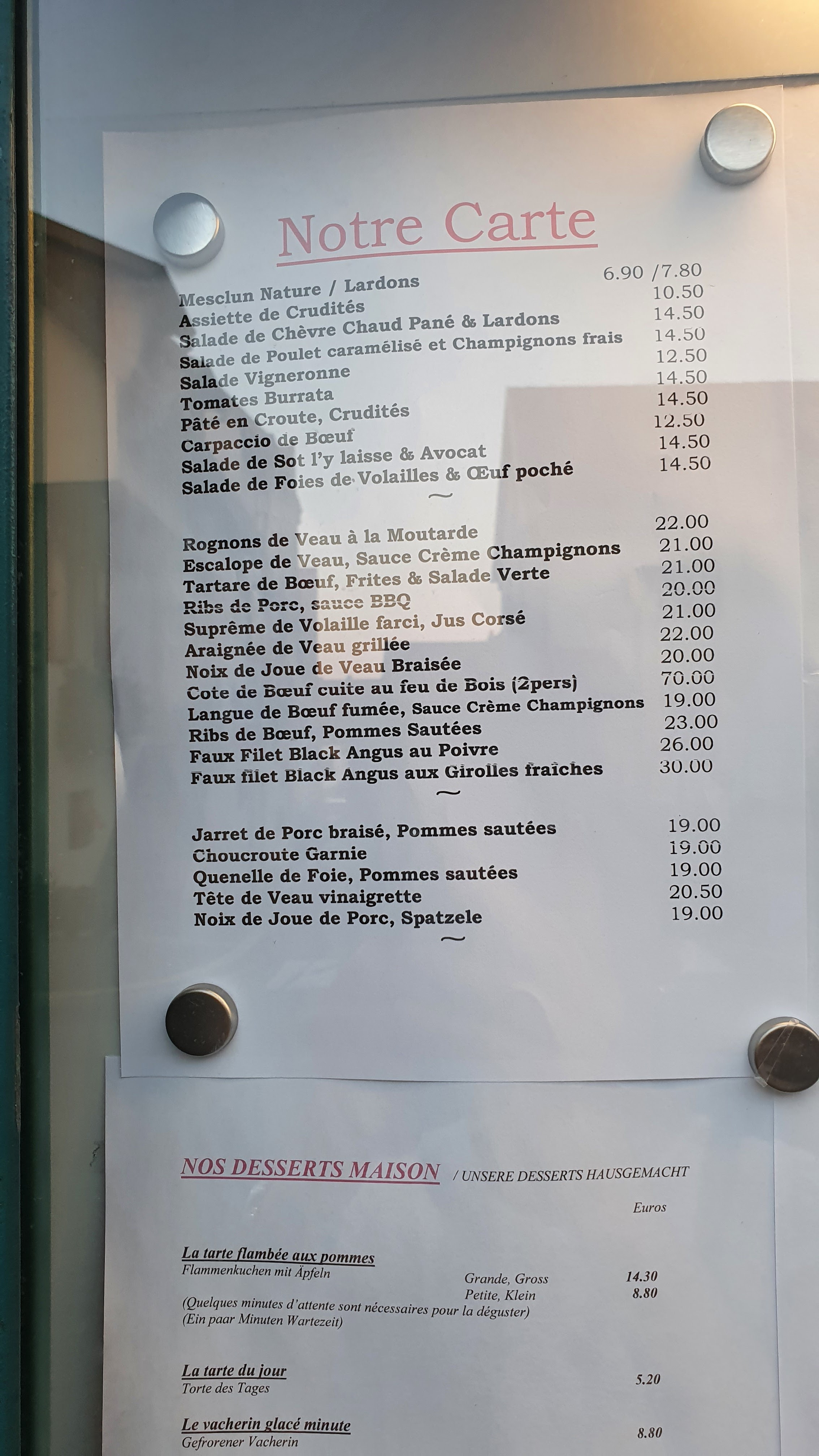 Accueil sympathique. La carte a perdue de sa superbe.Manque des produits de saison. Les tartes flambées restent toujours aussi bonnes et les prix flambes tout autant. Dessert commandés et reçu 20' plus tard pour un morceau de tarte. Dommage pour une telle adresse.....
