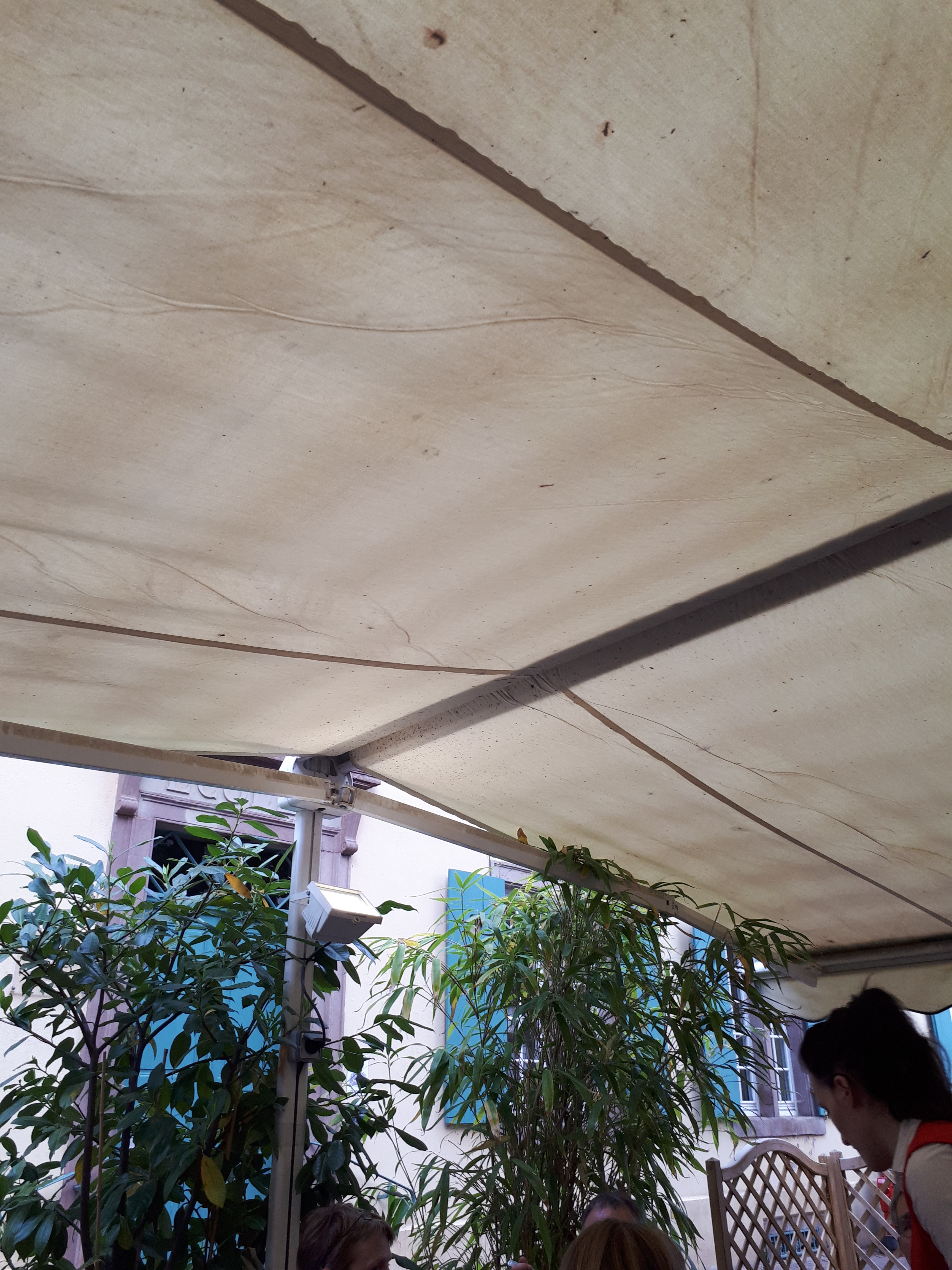 Je mets la note de 4 pour la convivialité et le personnel sympa et je ne parlerais que de la terrasse exterieur, mais franchement mr ou mme le propriétaire changez svp ces toiles dégueulasses au dessus de nos têtes!! Ça fait des années que je vais manger ou boire un verre à cet endroit mais la je ne penses plus y aller tellement c'est crado, il y a une couche de poussière sur les bras de suspension ne me dites pas que vous ne pouvez pas au moins nettoyer cela?? Au vu de ça je ne peux avoir que des doutes sur la propreté et l'hygiène de la nourriture...