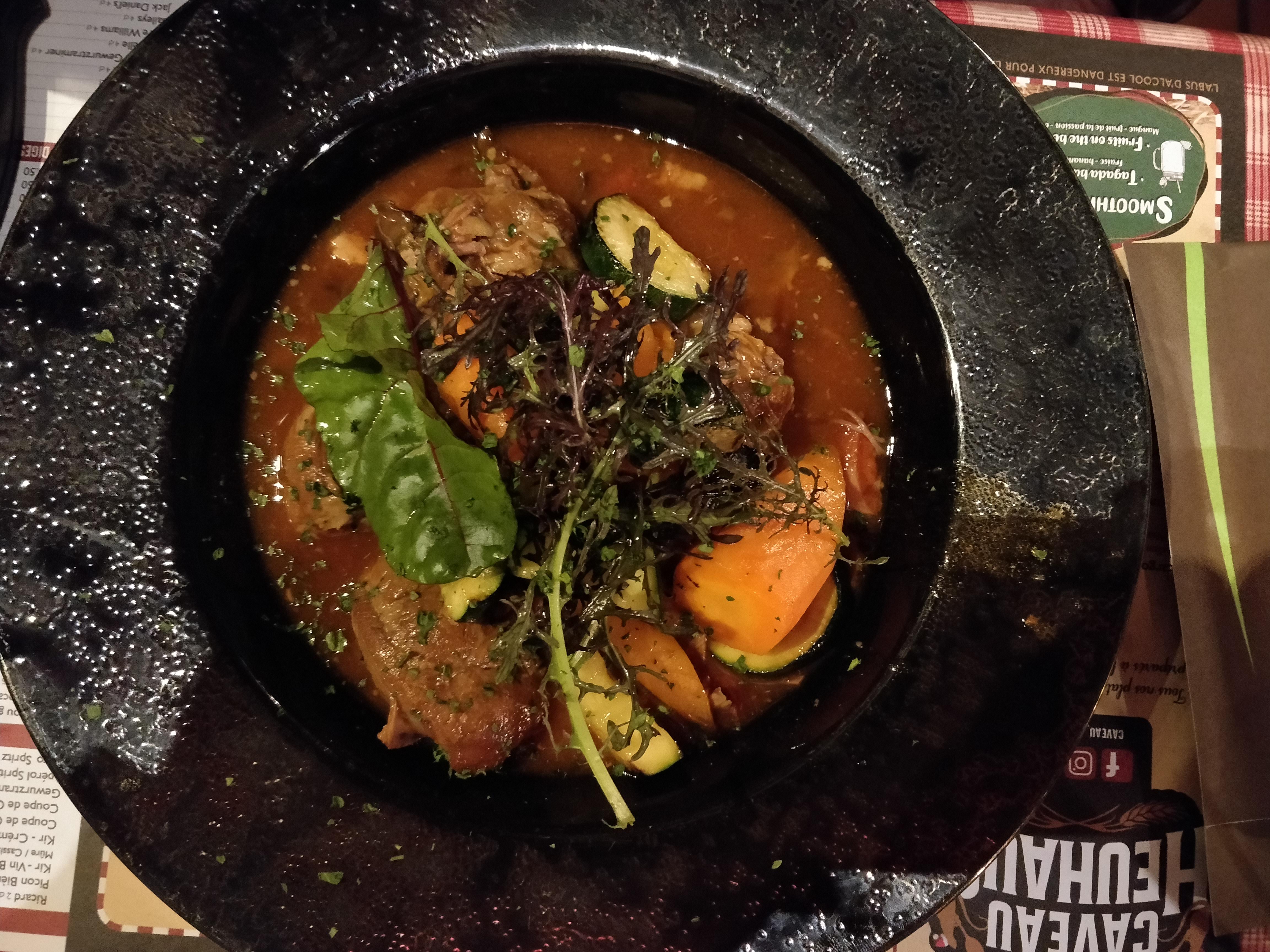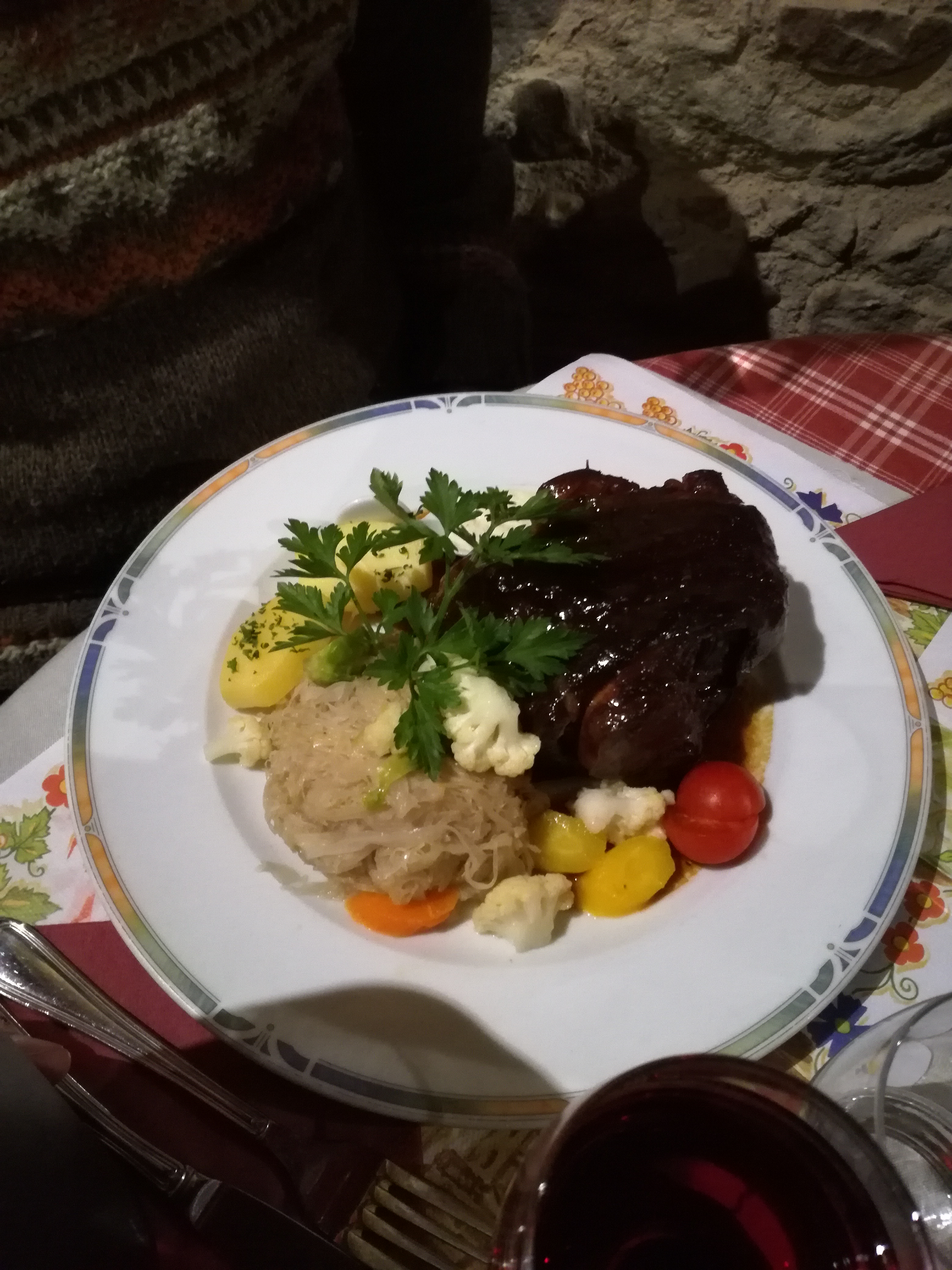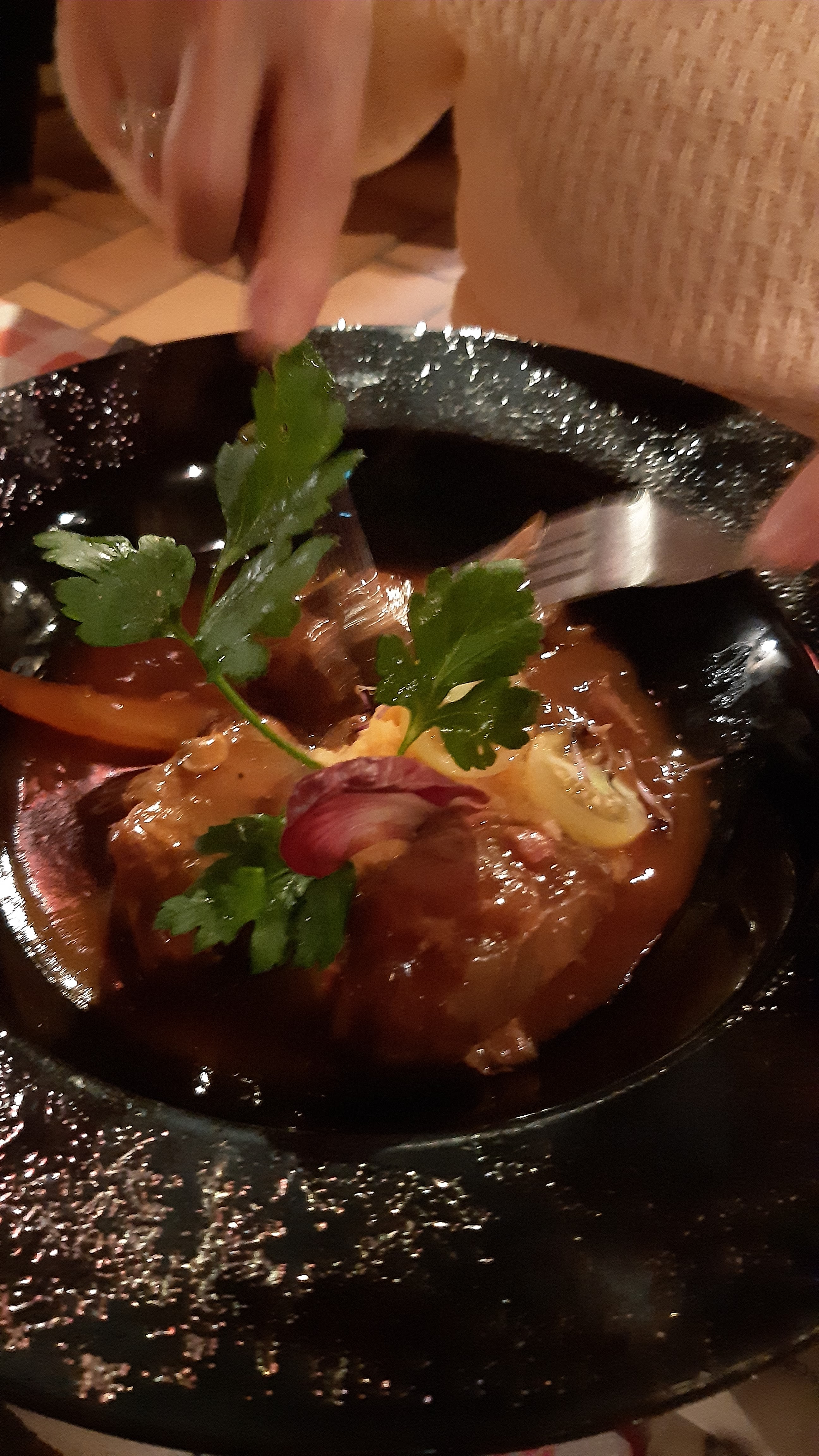 J’ai pris un choucroute plat du jour avec une sauce vinaigre, je pourrai en manger tous les jours. Bravo le cuisinier. Le cadre dans une cave voûtée et les tables en bois, j’ai adoré. Ça donne tout de suite envie de s’installer. Niveau service, un peu froid ou disons particulier quand on est habitué au service standard parisien.