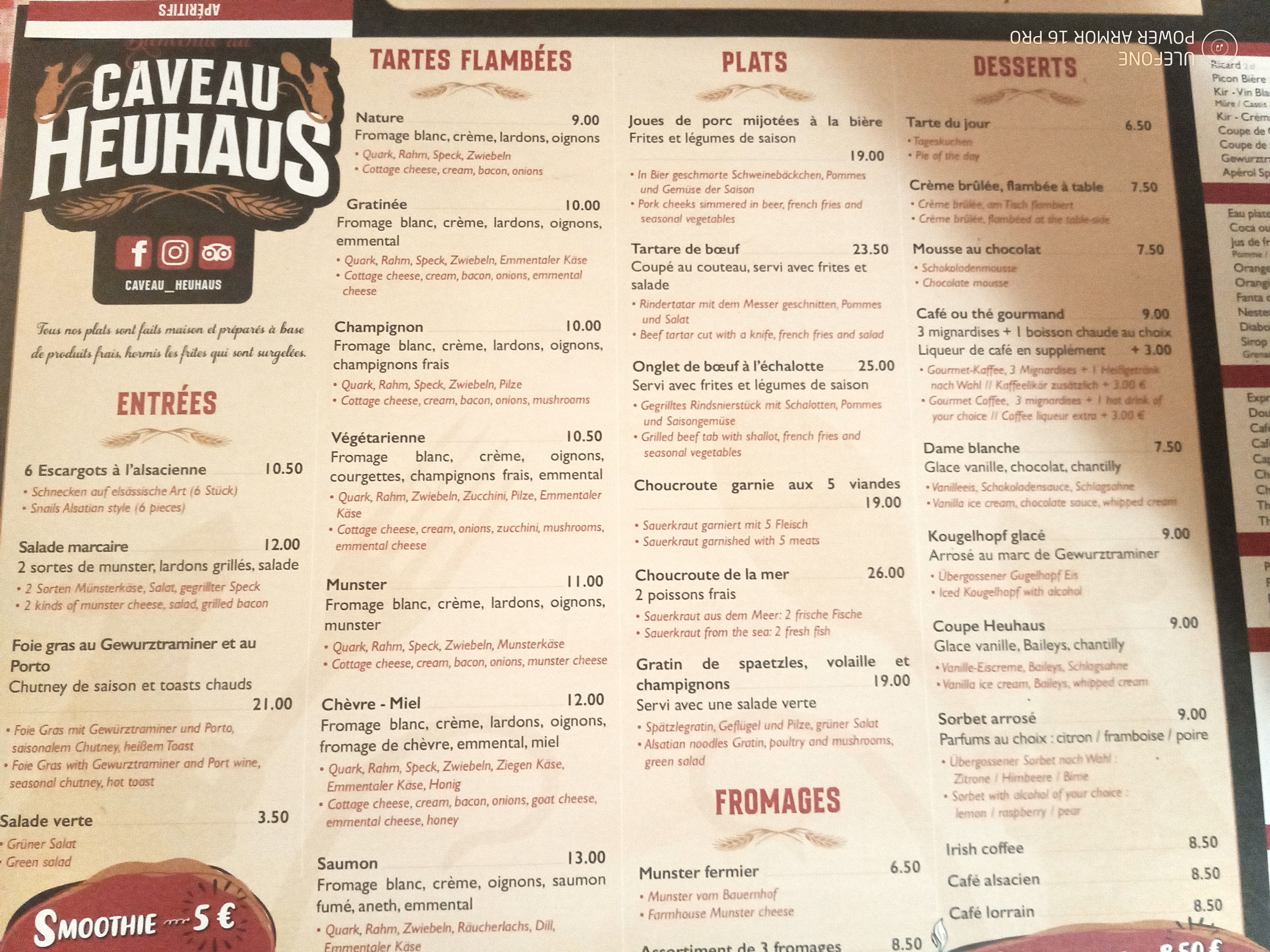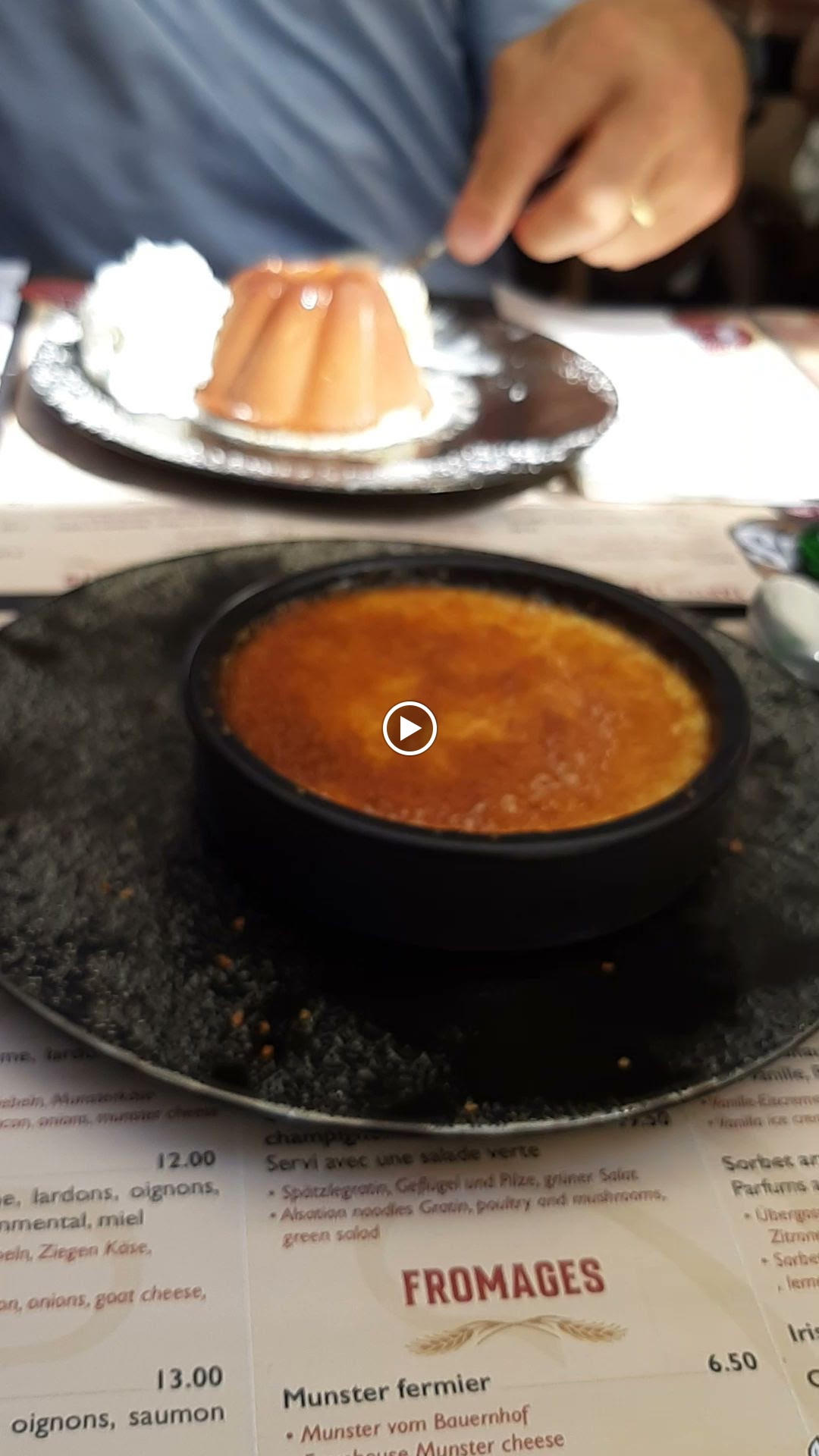 Magnifique petit resto ont c est tout simplement régaler tarte flambée au munster un régal et crème brûlée flambée a table. .nous etions sur la jolie petite terrasse. Serveurs agréable très jovial. Prix normal je recommande +++
