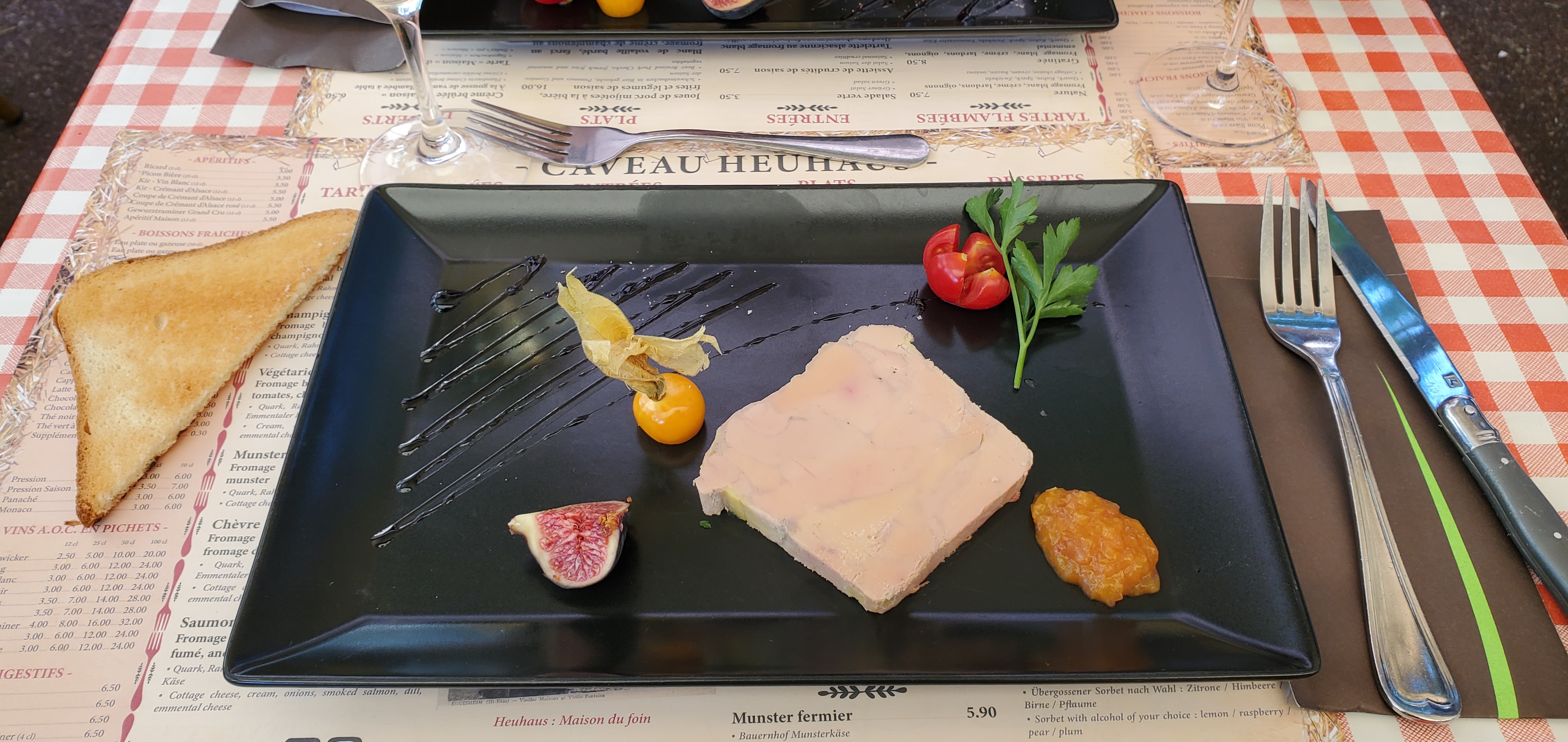 joli cadre, accueil agréable, nous commandons 2 foie gras mi cuit, je demande au serveur si cela est assez copieux pour servir de repas, et il me répond oui oui c'est bien assez pour un repas de midi.....on est souvent surpris de la quantité des entrées, de ce fait autant ne prendre que cela avec un dessert, et sortir de table à l'aise, que de commander un plat en plus et de sortir avec un mal de ventre d'avoir trop mangé. Eh bien nous avons été fortement déçu 😞 nœud avons l'habitude de venir en Alsace, et jamais déçus, mais la franchement c'est prendre les gens et touristes pour des pompes à fric