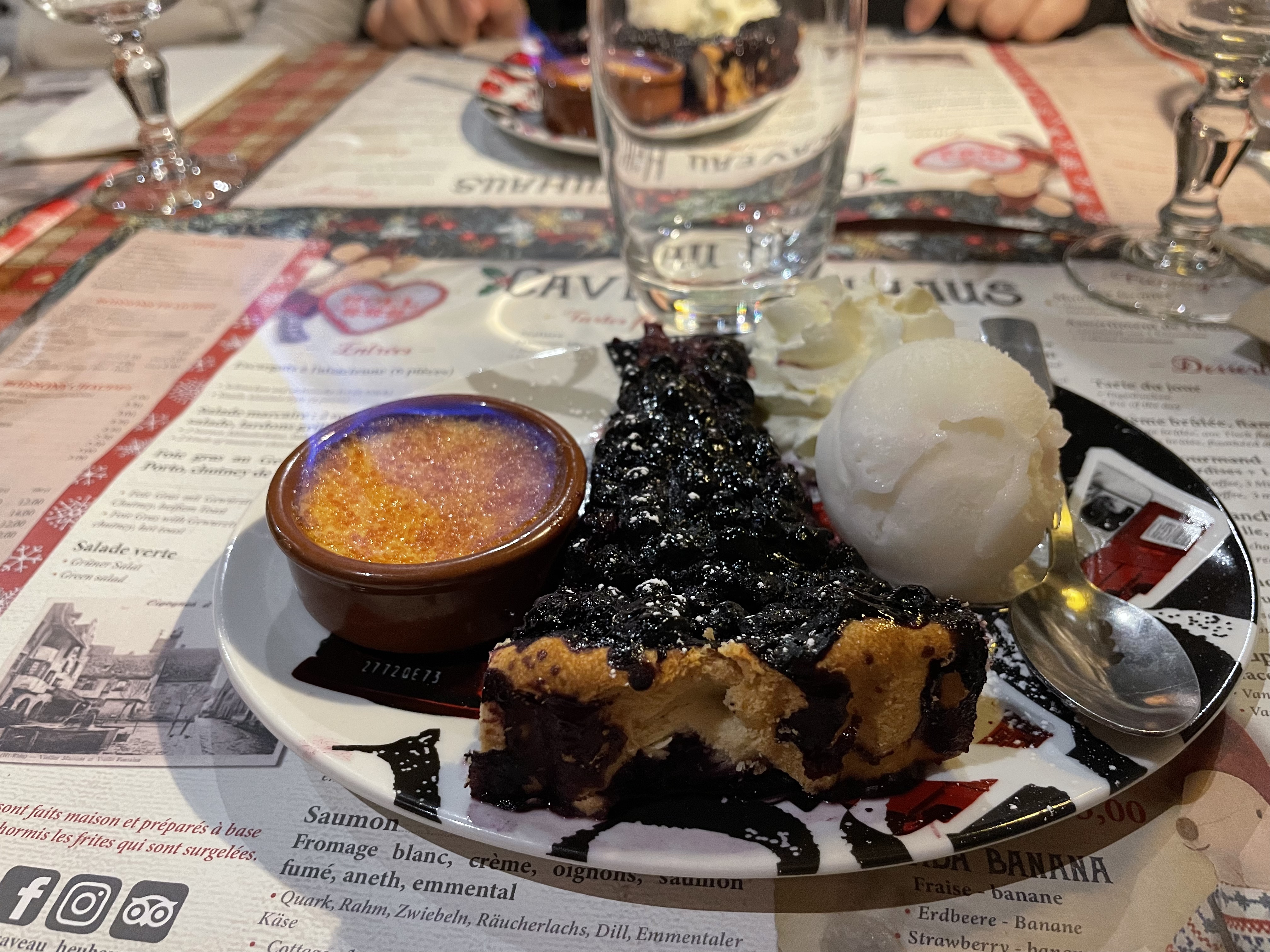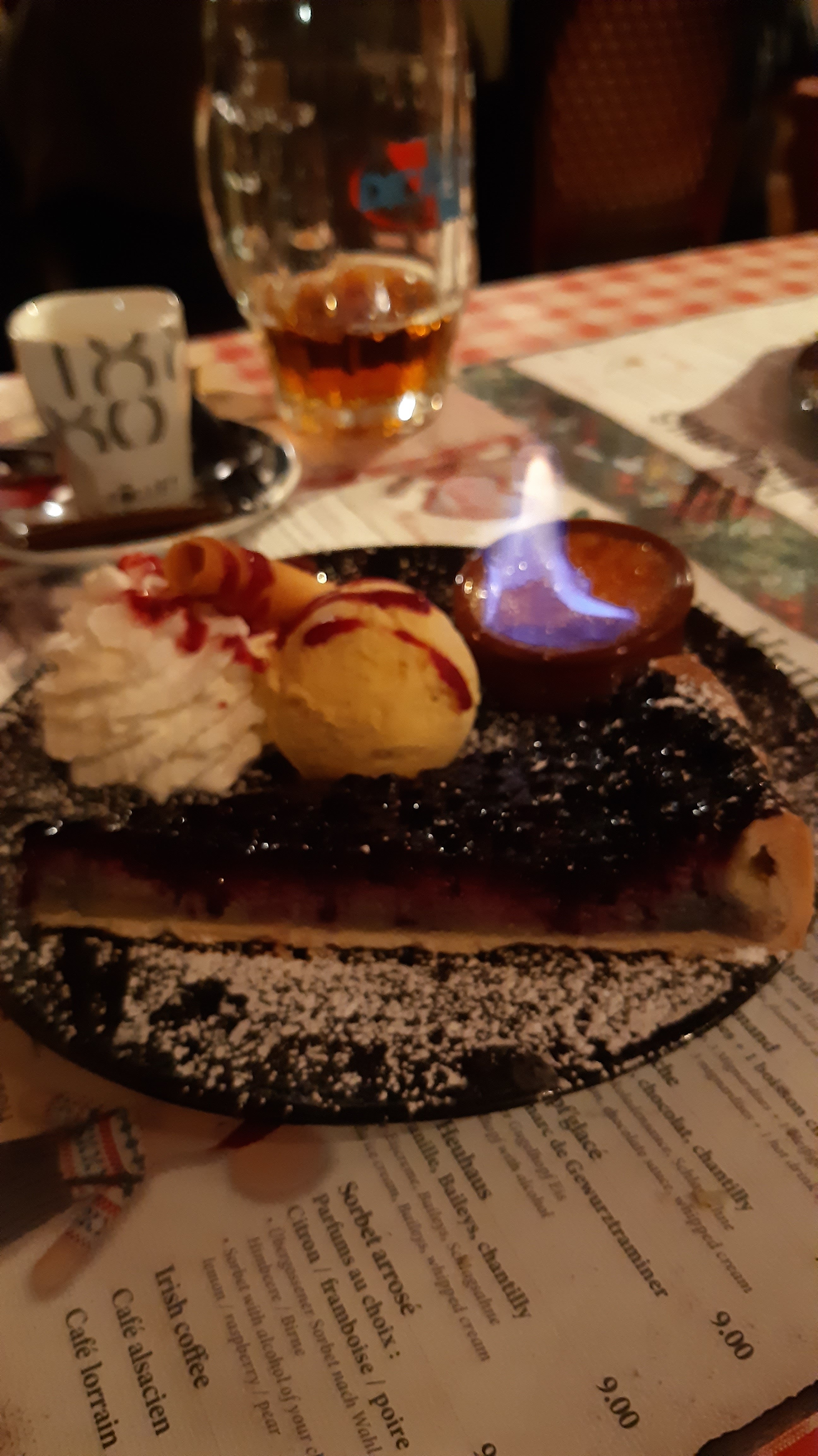Tartes flambées correctes mais le dessert était décevant. La tarte a la myrtilles semblait industrielle...