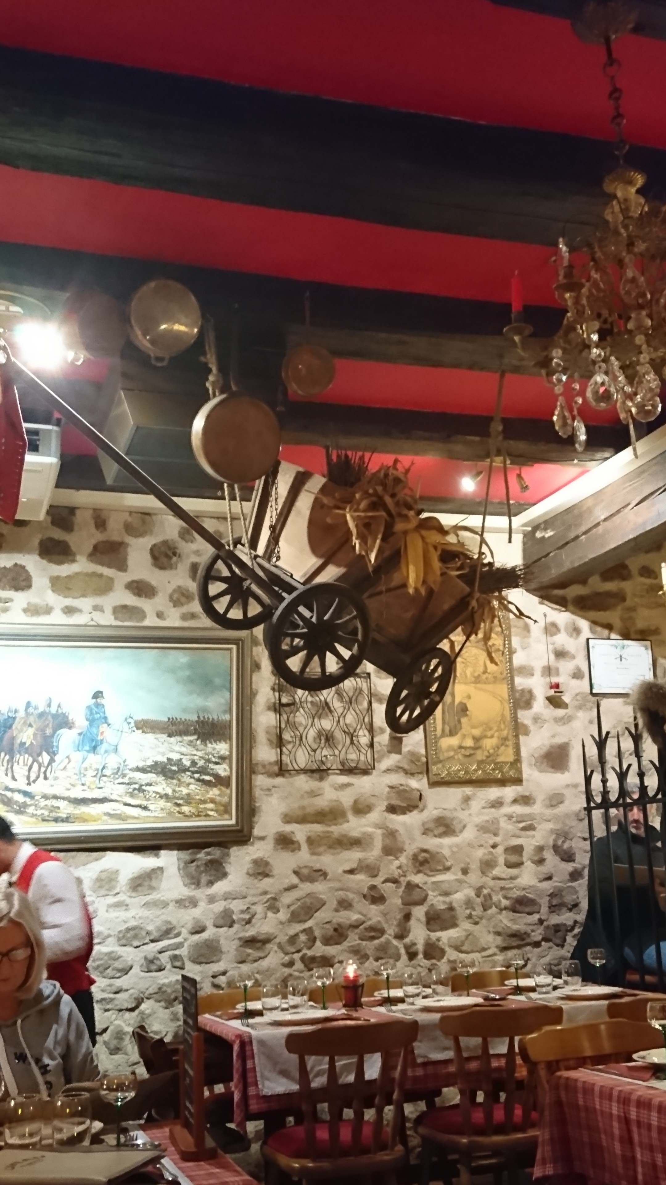 Restaurant avec décoration atypique sympa, bonne choucroute et joue de porc , très bon foie gras mais ambiance du service à un peu gâché le repas....