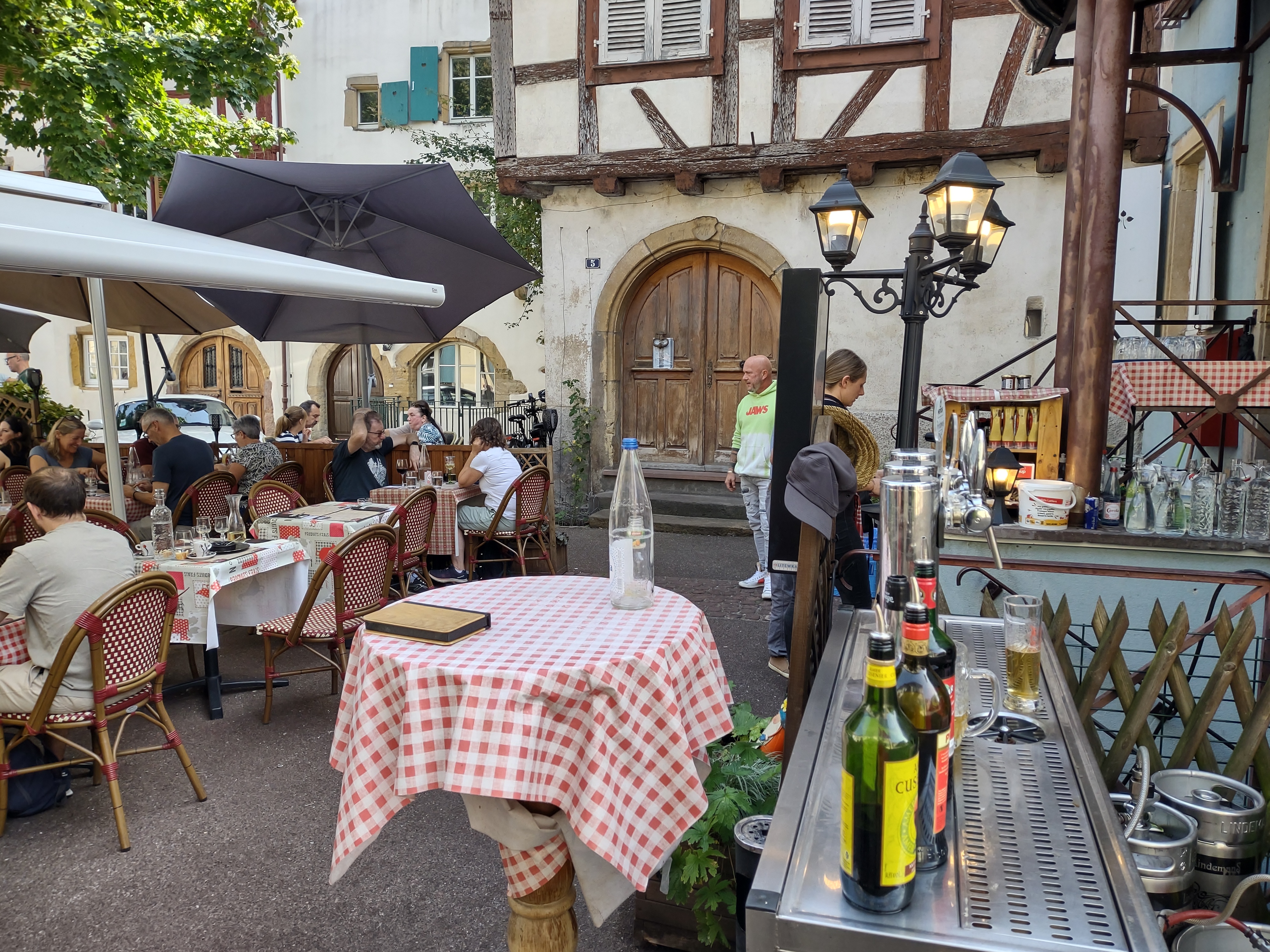 Une petite rue avec au fond un porche, 5 escaliers à descendre et vous vous retrouvez dans un petit resto charmant, agréable et typique de l'Alsace. Nous y avons mangé des spécialités du coin rapidement servies, chaudes et très bonnes, le tout avec amabilité et un prix correct, on vous le recommande.